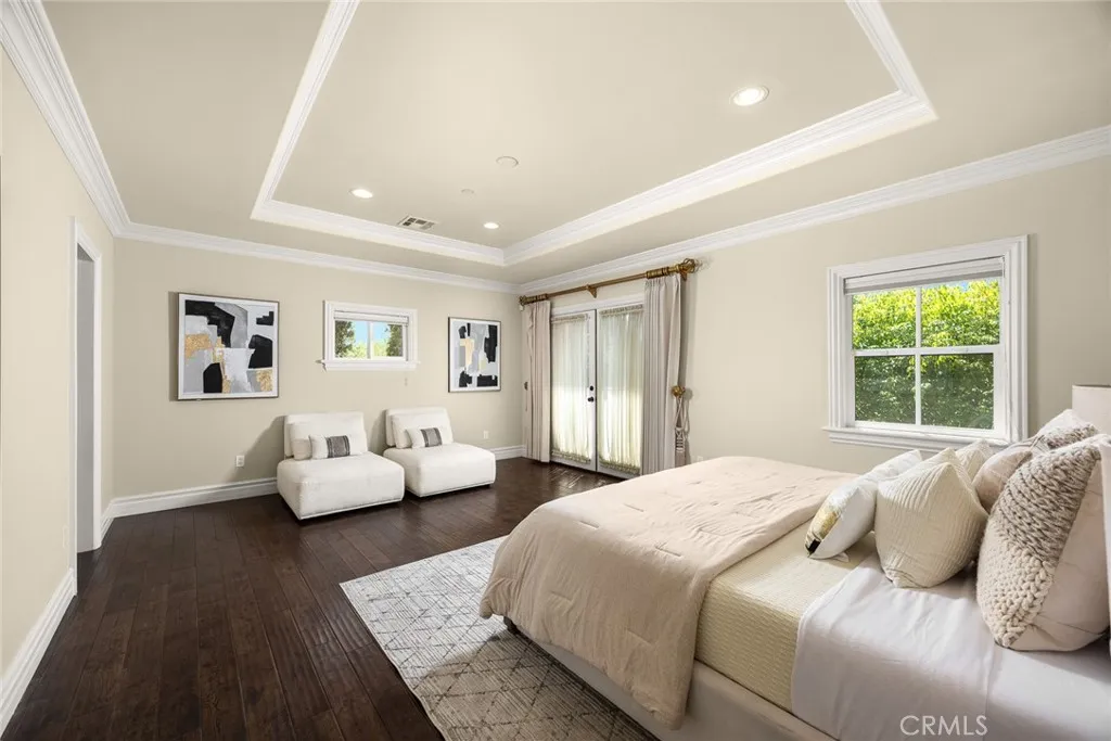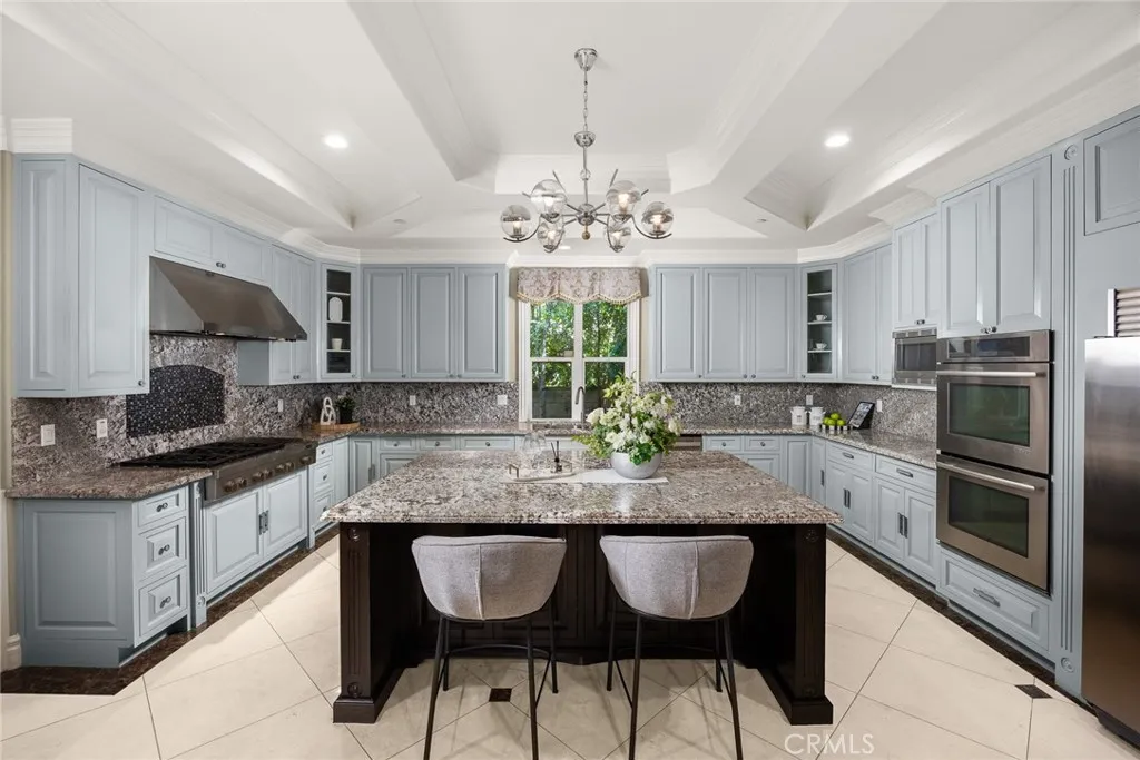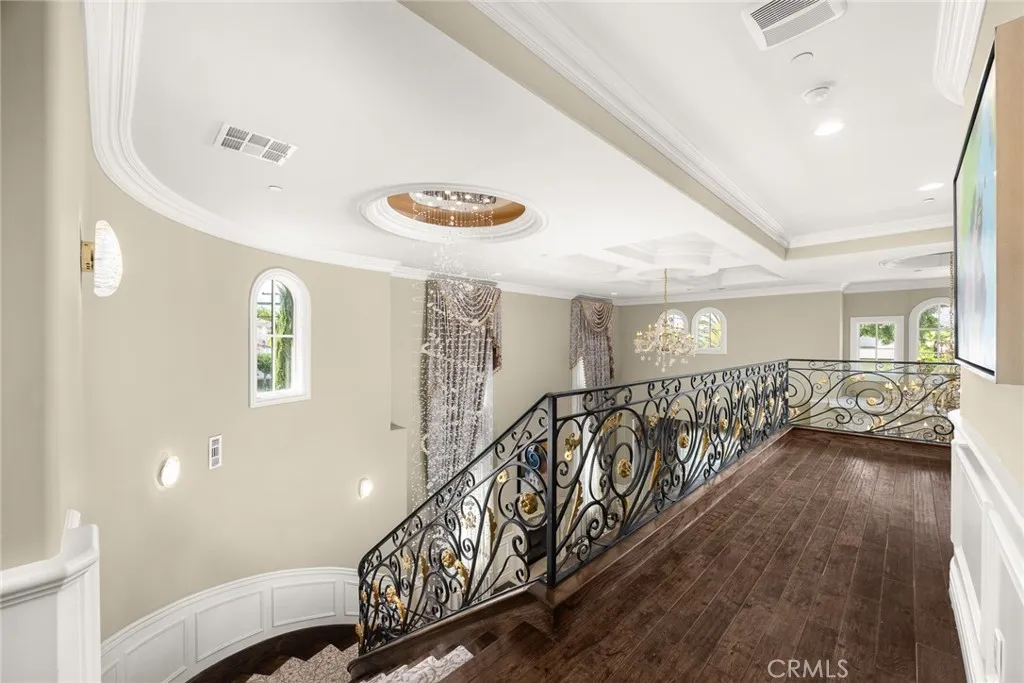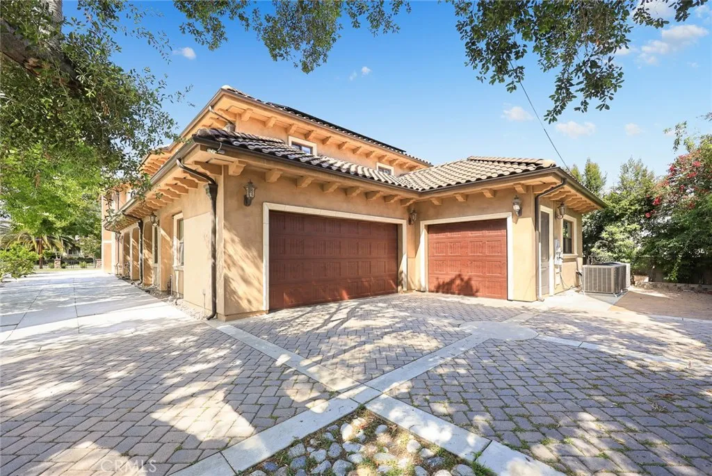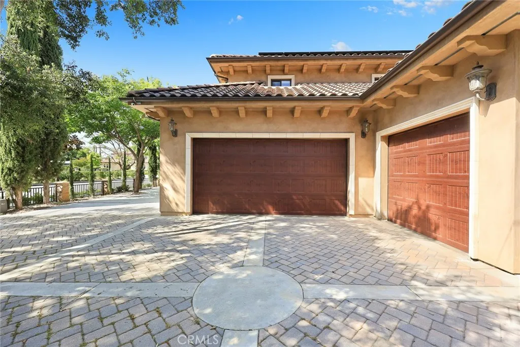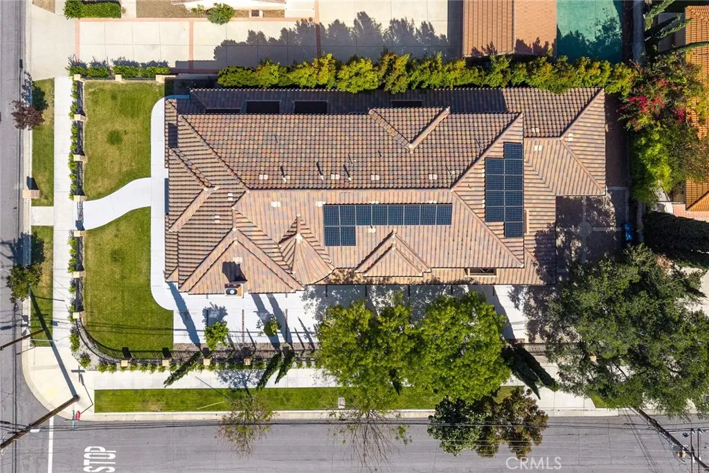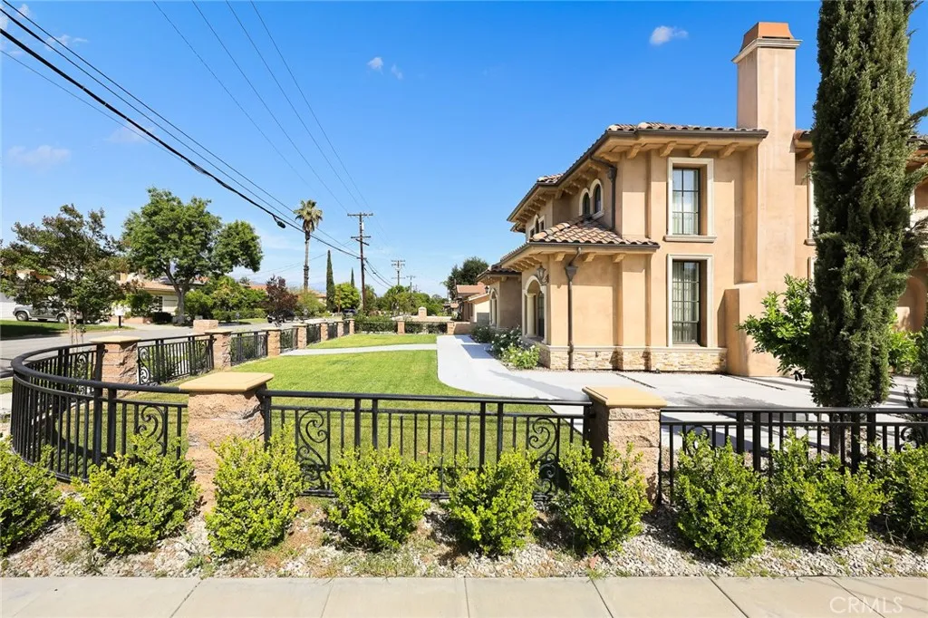 Elegant Mediterranean-style residence located in the highly desirable Baldwin Stocker district of Arcadia, offering 5 bedrooms, 5 bathrooms, and approximately 5,000 SF of living space. Built in 2016, this custom home features a dramatic 25-foot ceiling entry with a 10-foot arched iron and glass double door. The bright living room includes a stone fireplace and soaring windows, while the formal dining room is enhanced by onyx Roman columns and an expansive bar area. The gourmet kitchen offers a center island, abundant cabinetry, a dedicated wok kitchen, additional refrigerator space, and a breakfast nook. The spacious family room is ideal for entertaining or everyday living. The main-level primary suite features a walk-in closet, dual vanities, soaking tub, and oversized shower. Upstairs includes a second primary en-suite with private balcony, an open office area, and additional bedrooms with a Jack-and-Jill bathroom.Additional highlights include solar panels, attached 2-car garage with direct access, an additional 1-car garage, and gated driveway. Low-maintenance backyard and side yard provide comfortable outdoor space. Conveniently located near award-winning Arcadia schools, supermarkets, dining, and shopping. A rare opportunity to own a newer custom home in one of Arcadias most sought-after neighborhoods.