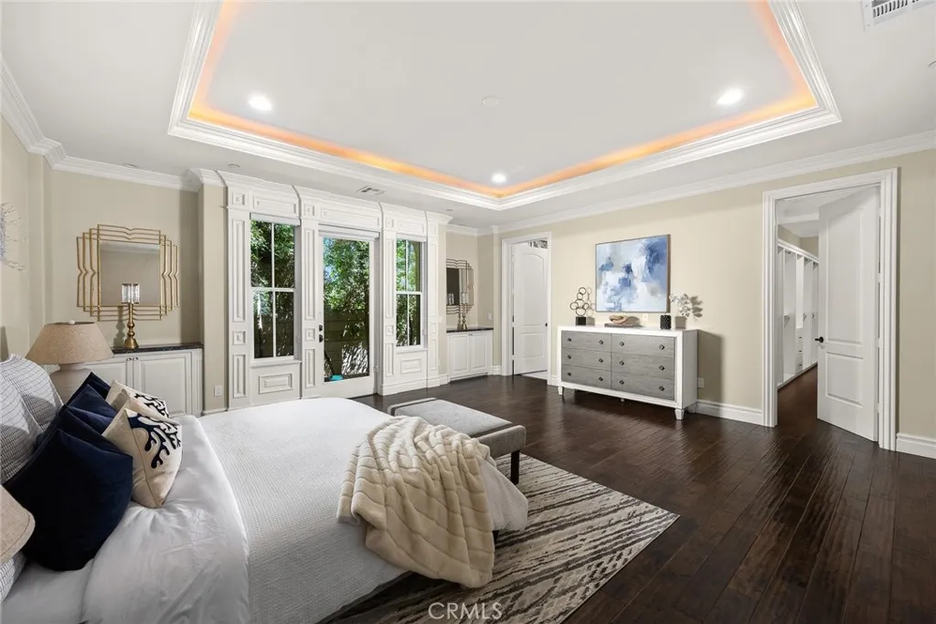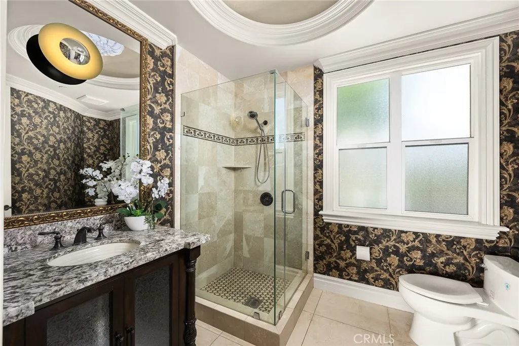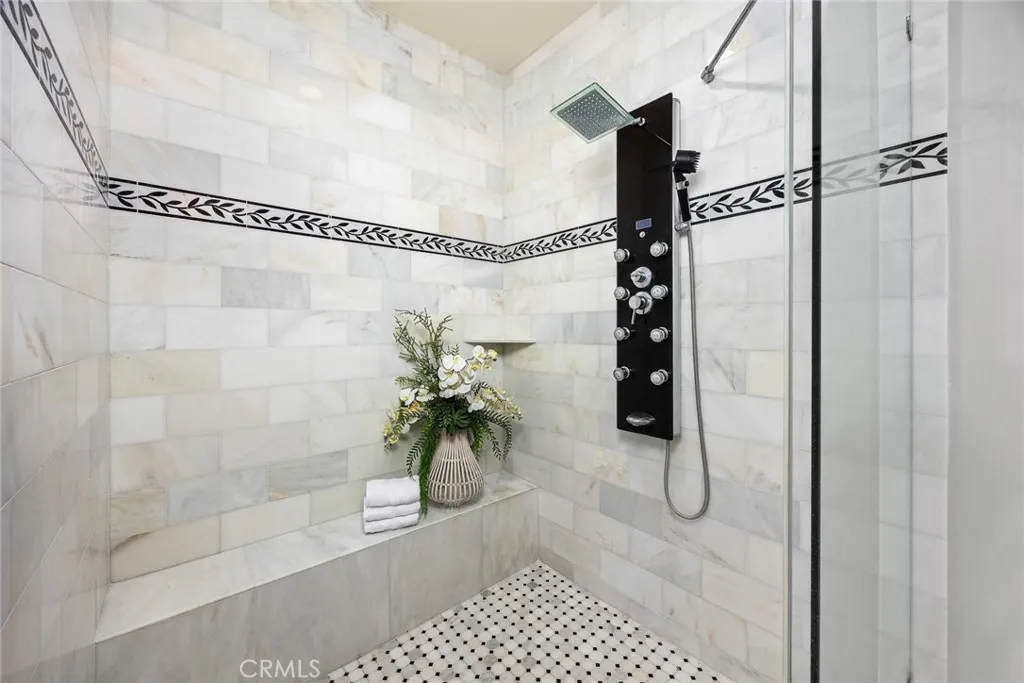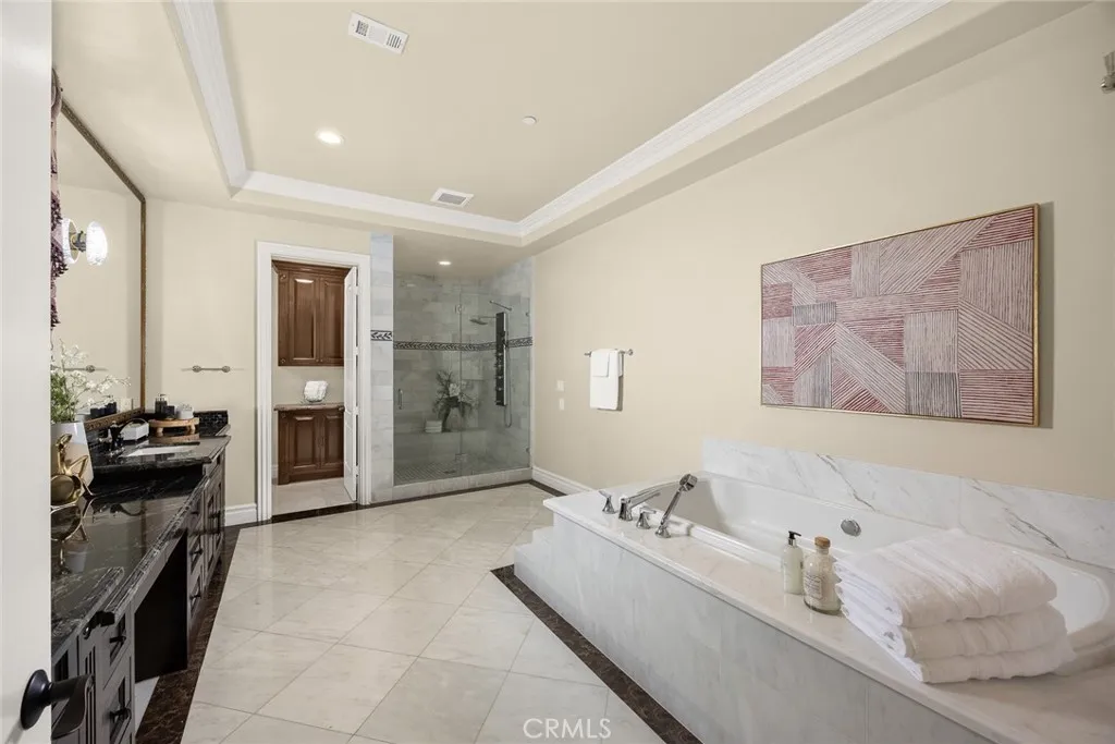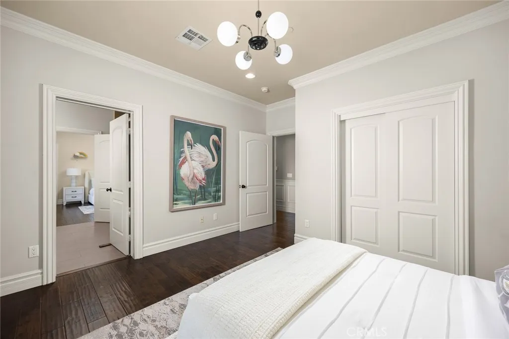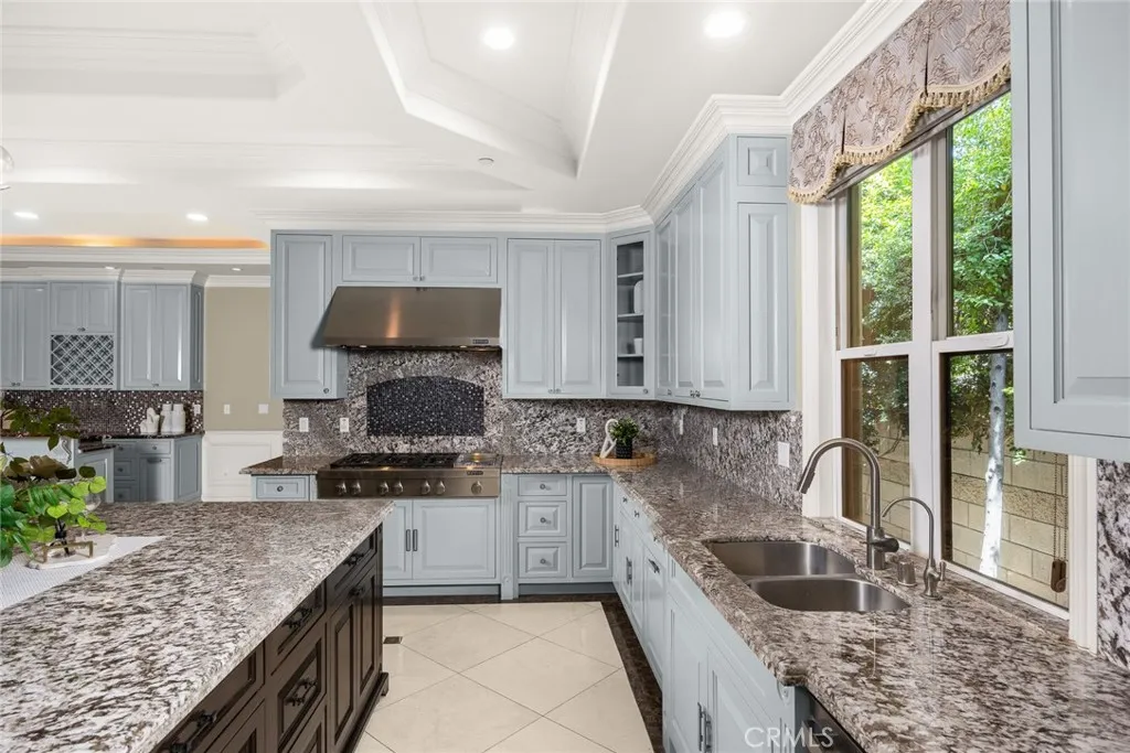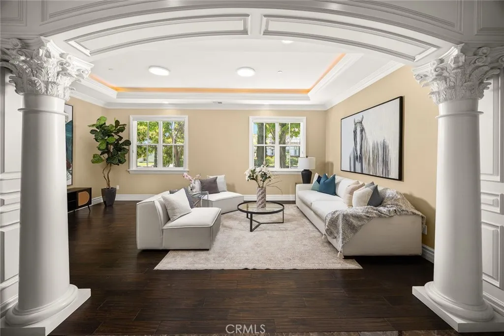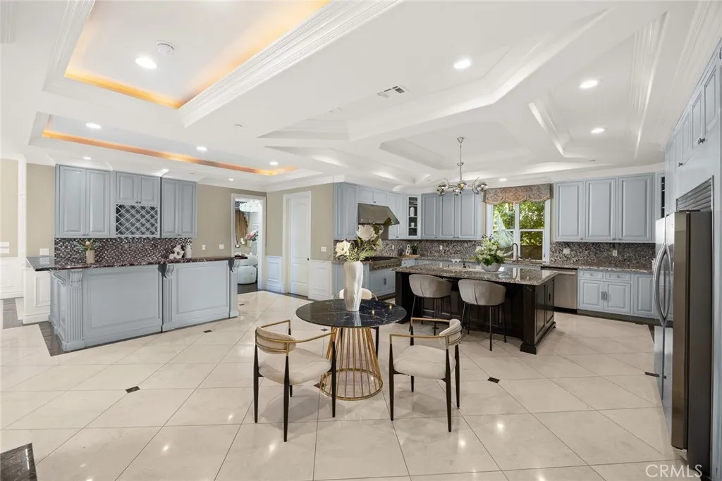 Elegant Mediterranean-style residence located in the highly desirable Baldwin Stocker district of Arcadia, offering 5 bedrooms, 5 bathrooms, and approximately 5,000 SF of living space. Built in 2016, this custom home features a dramatic 25-foot ceiling entry with a 10-foot arched iron and glass double door. The bright living room includes a stone fireplace and soaring windows, while the formal dining room is enhanced by onyx Roman columns and an expansive bar area. The gourmet kitchen offers a center island, abundant cabinetry, a dedicated wok kitchen, additional refrigerator space, and a breakfast nook. The spacious family room is ideal for entertaining or everyday living. The main-level primary suite features a walk-in closet, dual vanities, soaking tub, and oversized shower. Upstairs includes a second primary en-suite with private balcony, an open office area, and additional bedrooms with a Jack-and-Jill bathroom.Additional highlights include solar panels, attached 2-car garage with direct access, an additional 1-car garage, and gated driveway. Low-maintenance backyard and side yard provide comfortable outdoor space. Conveniently located near award-winning Arcadia schools, supermarkets, dining, and shopping. A rare opportunity to own a newer custom home in one of Arcadias most sought-after neighborhoods.