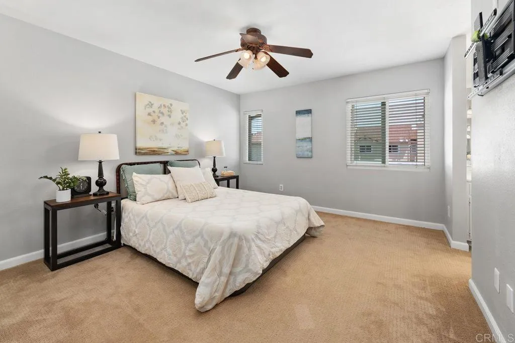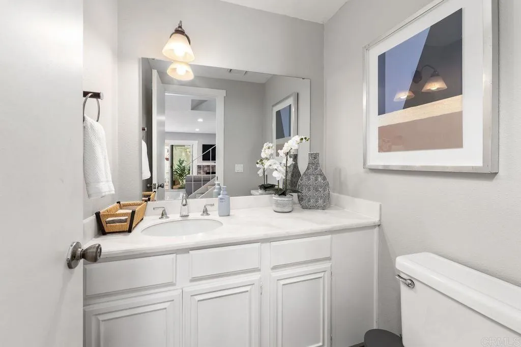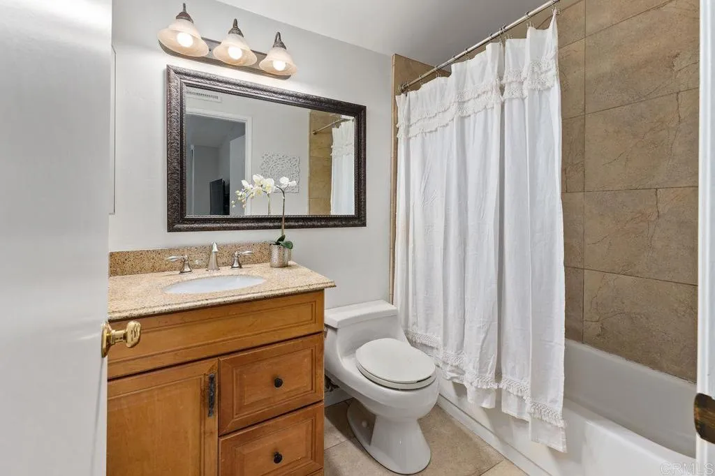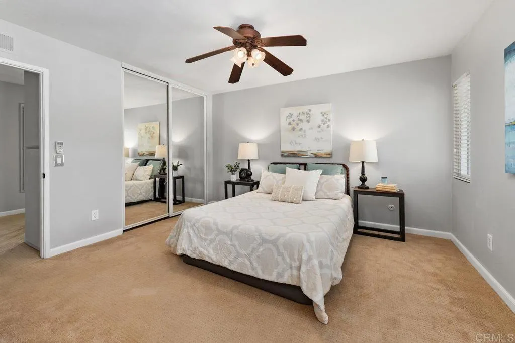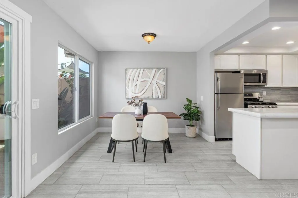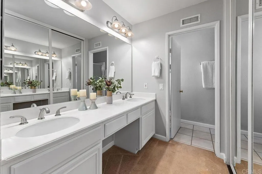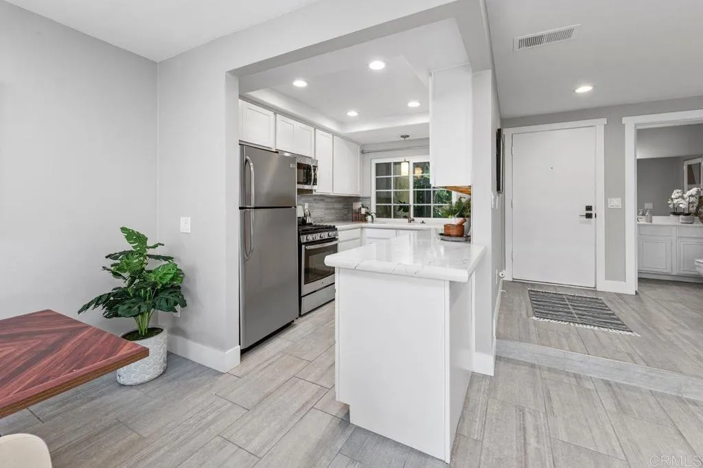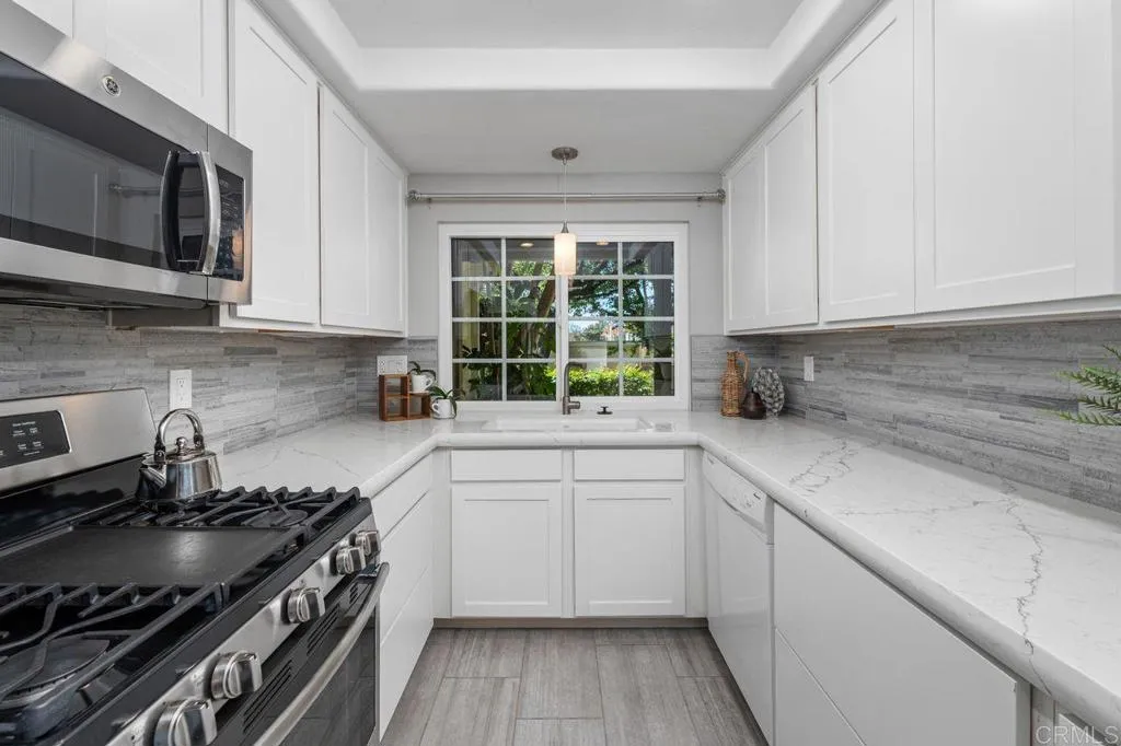 This Seagate Village condo features a beautifully updated kitchen with quartz countertops, modern tile backsplash, and stainless appliances. Enjoy neutral tile flooring and upgraded windows and sliding door that opens to the enclosed private patio. Both the primary bedroom and second bedroom have ensuite bathrooms, ideal to accommodate guests, kids or a roommate situation. Laundry is conveniently located in the two car garage just off the patio area. The well-maintained property offers open living space, a great cross breeze and neutral finishes throughout. Located between Flora Vista Elementary and Digueno Middle Schools, in the heart of the Seagate Village Community. Amenities include a pool, spa, playground, greenbelt park, tennis/pickleball courts, sand volleyball court, and trash service for an HOA of $533/monthly. Encinitas is quintessential California living with world class beaches, a Coaster Station for commuting, great restaurants, and a vibrant community scene on the Coast Highway!