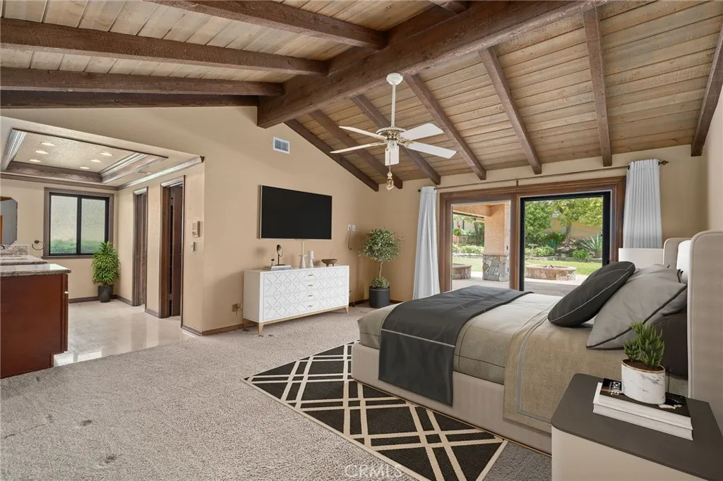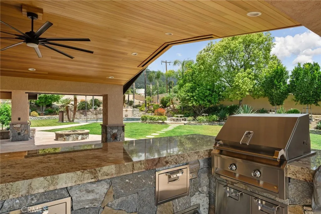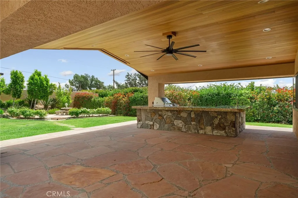 Experience elevated living in this spectacular private single-story estate nestled in the highly desirable Alta Loma community. This well-maintained home offers four spacious bedrooms and three full bathrooms, thoughtfully designed for both comfort and functionality. Step inside to find a built-in library, a large family and dining room area anchored by a cozy fireplace, and an inviting open-beam, pitched ceiling that enhances the expansive family room and kitchen. The kitchen features a dedicated dining nook, perfect for casual meals and gatherings. The luxurious primary suite boasts pitched ceilings and an enormous walk-in closet, creating a true retreat within the home. A versatile bonus game room or potential ADU sits at the front of the property, complete with a full bathroom and barideal for guests, extended family, or easy conversion to a separate living space. Outdoor living is just as impressive, with a brand-new back patio featuring a custom barbecue island, a basketball court, and a beautifully fenced pool and spa with heater. Enjoy breathtaking mountain views with no homes to the north, offering exceptional privacy. Recent upgrades include a new roof and generator, ensuring peace of mind for years to come. The fully landscaped grounds are equipped with automatic sprinklers and secured by gated entry. Car enthusiasts will appreciate the three-car garage with ample cabinetry, a separate EV meter, and convenient attic storage with pull-down access. This exceptional property combines privacy, space, and modern amenitiesan incredible opportunity to own a standout hom