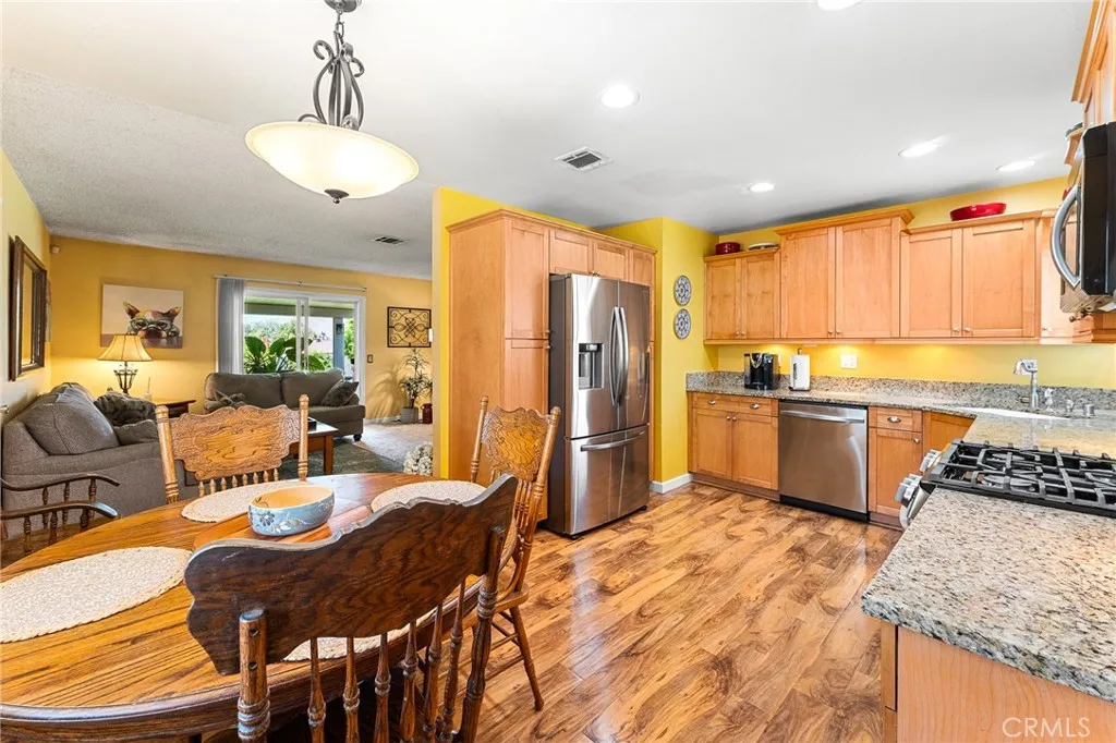 Welcome to your new home in the charming community of Grand Terrace! This delightful residence features three spacious bedrooms and two bathrooms, perfect for first time buyers, families or those seeking extra space. The heart of the home is the beautifully updated kitchen, equipped with new appliances, pullout cabinets for easy access, and modern recessed lighting that creates a warm and inviting atmosphere. Best of all, the refrigerator is included, making your move-in process a breeze. The cozy living room offers a comfortable space to relax and entertain, while the landscaped backyard becomes your personal oasis. With a large covered patio, its ideal for outdoor gatherings or simply enjoying a quiet morning coffee. The home also boasts a roof thats only about seven years old and newer windows, ensuring both functionality and energy efficiency. This property is a perfect blend of comfort and style, and waiting for you to make it your own. Close to schools, shopping, about 10 minutes to Loma Linda University and centrally located to the freeways.