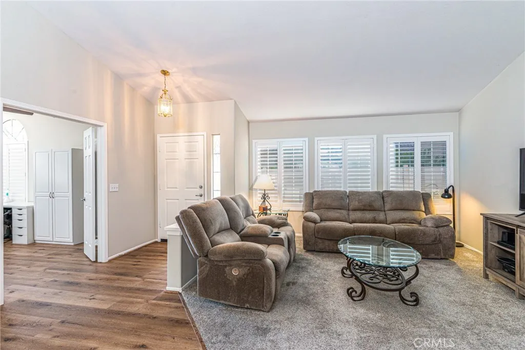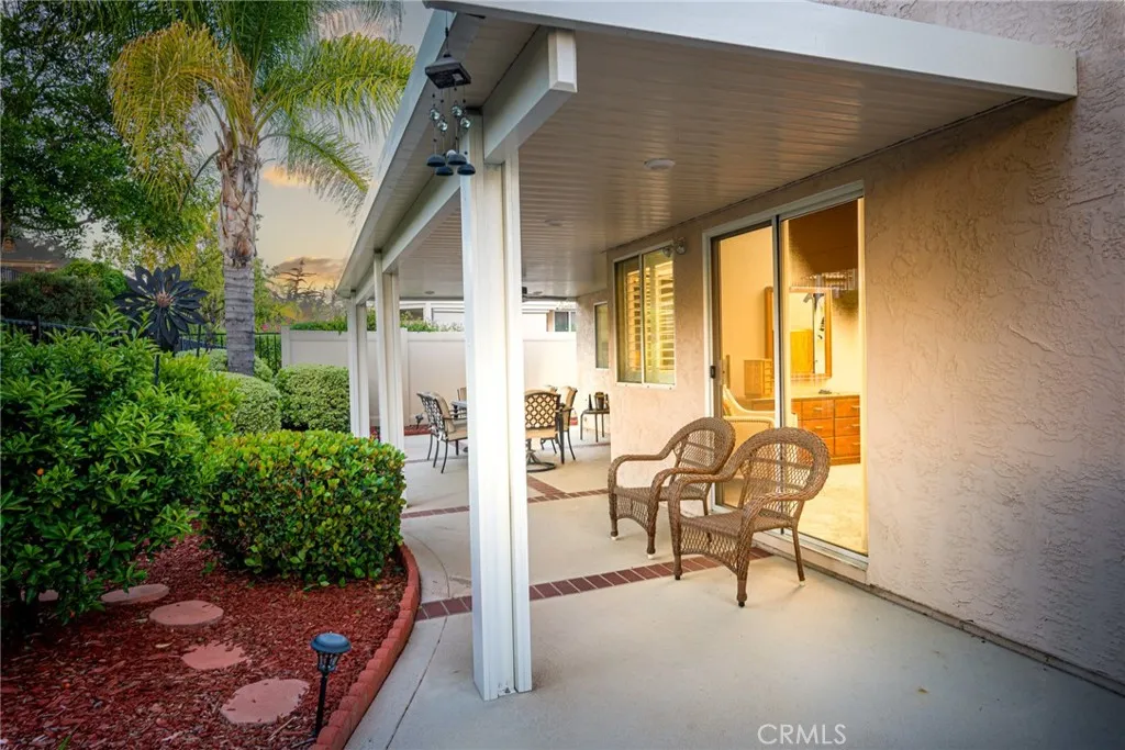 Welcome to this beautifully maintained and exceptionally private single-story home located in the highly sought-after 55+ community of The Colony in Murrieta. This move-in ready residence offers two spacious bedrooms, a convenient den/office, two bathrooms, and an open, light-filled floor plan with roomy cathedral ceilings. As you arrive, enjoy the convenience of a two-car attached garage with direct access to the home. Enter through the gated front courtyard featuring low-maintenance landscapingperfect for relaxing in your own private outdoor space. Inside, you'll enter a welcoming layout with an inviting living room featuring a cozy fireplace that is enhanced by abundant natural light and stylish shutters along with a separate dining area. Across from the living room is a very functional space that would make a great office, den or craft room. The kitchen offers generous counter space, ample storage and a handy island making it both functional and ideal for entertaining. The primary suite boasts high ceilings, shutters and direct backyard access. The en-suite bathroom includes dual vanities and a walk-in shower. The secondary bedroom also features high ceilings and functional window shutters with a full guest bathroom conveniently located nearby. Surrounded by mature greenery, the backyard is designed for both comfort and ease with concrete patio and a newer Alumawood patio cover and plenty of room for you and your guests. Within the last 5 years, the current owner has repainted the interior and exterior, installed new plank flooring throughout much of the home, installed