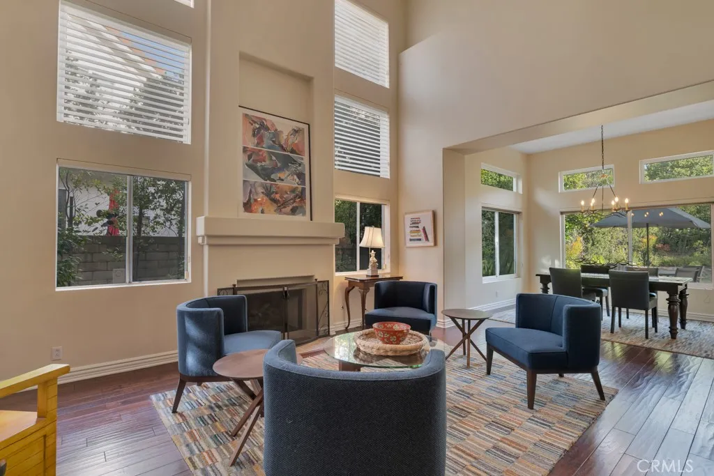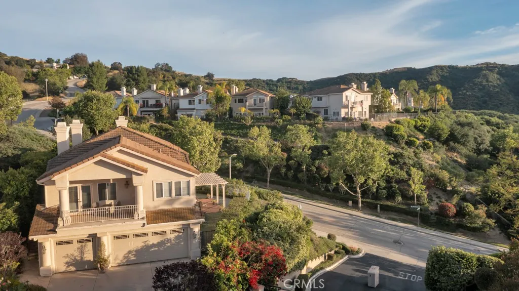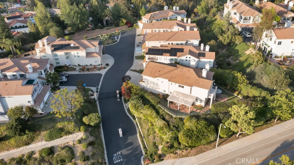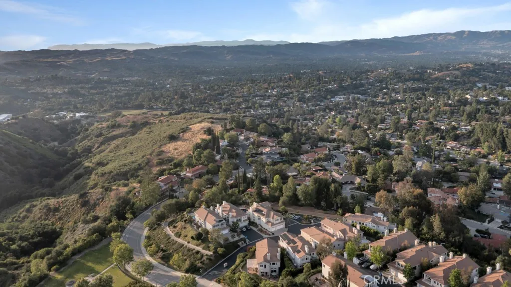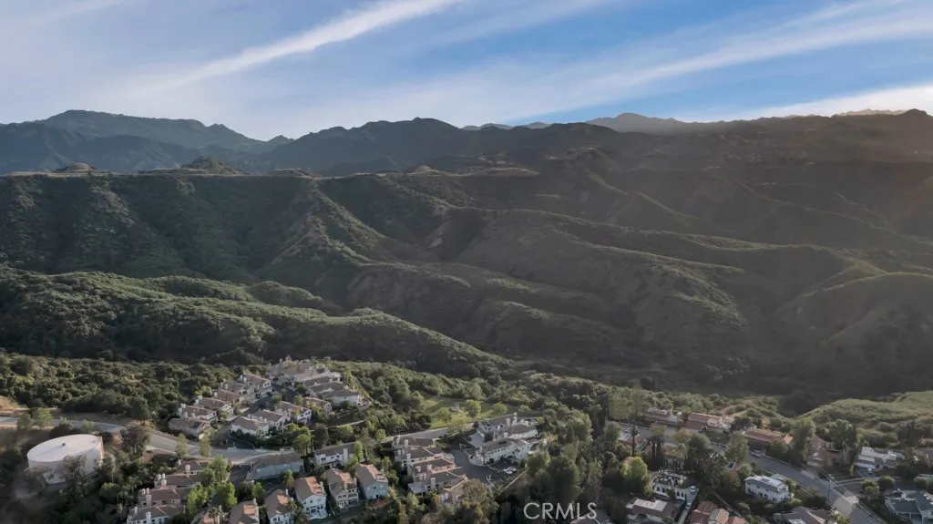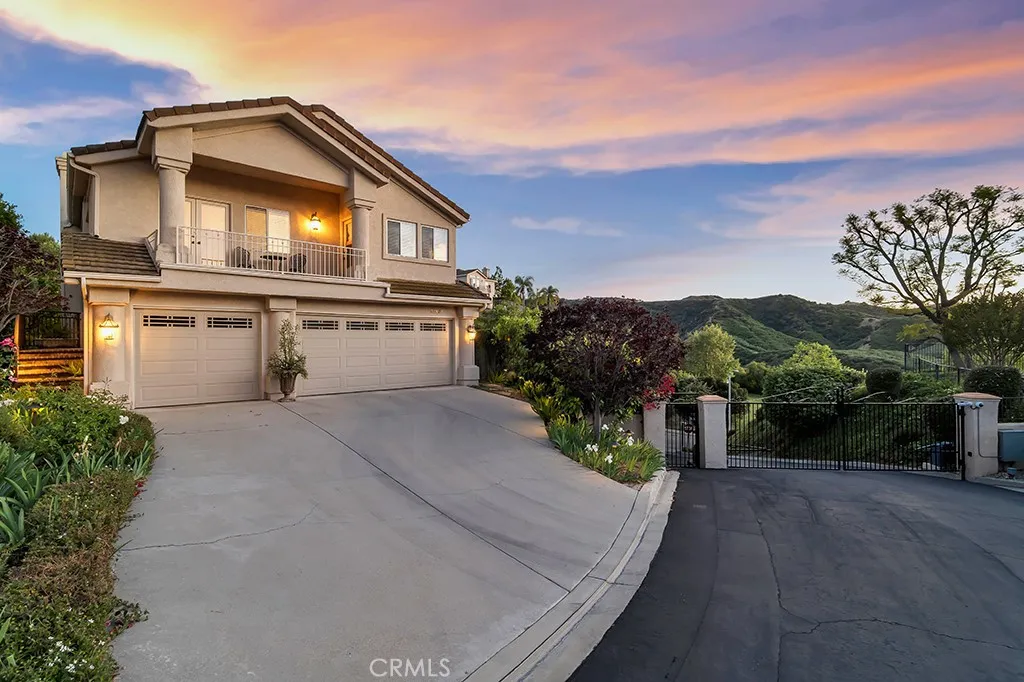 Imagine yourself sitting on your patio and watching the sun set over the majestic mountains in this beautiful gated community located on a cul de sac in the desirable Las Virgenes School District . When you enter this 3 bedroom, 2.5 bath home through double doors, you will be greeted with soaring ceilings as you walk into the living room with an adjacent dining room. The kitchen with granite countertops and Hunter Douglass window treatments, has an eating area/family room. Upstairs is an incredible en-suite primary bedroom with a fireplace in the sitting area, and lots of custom shelves, cabinets and large closets. From the primary bedroom balcony you can see a view of the mountains. The en-suite bathroom has 2 sinks across from each other and a separate tub and shower. There are 2 secondary bedrooms upstairs with a Jack and Jill bathroom and lots of storage and custom built in closets. The flexible floodplain allows the owner to adjust the space to their needs. There is a private community park. This house has lots of natural light, great storage, hardwood floors throughout and Hunter Douglas window coverings in the bedrooms. Custom landscaping with a low water lawn, custom outside lights, and 2 patio area ( one of which has a barbecue) This is paradise. Currently, the 3rd garage is being used for storage but can be converted back to a garage.