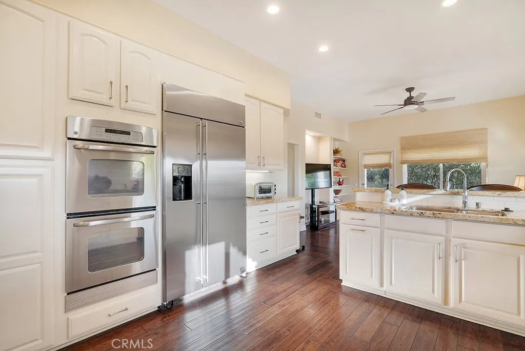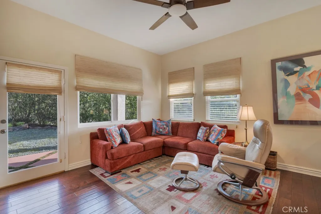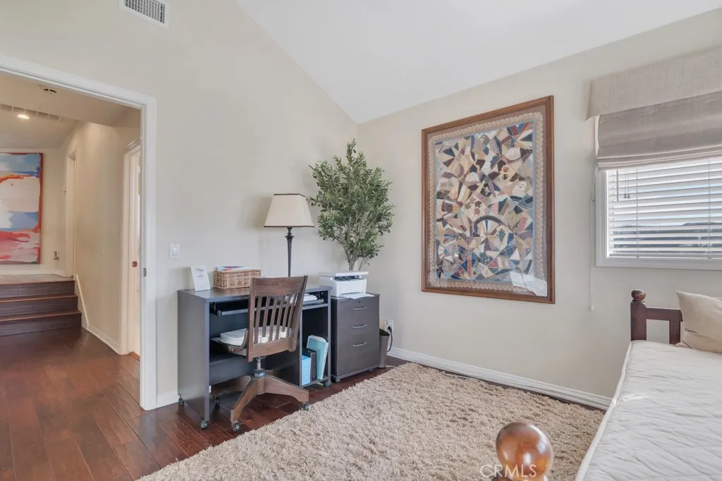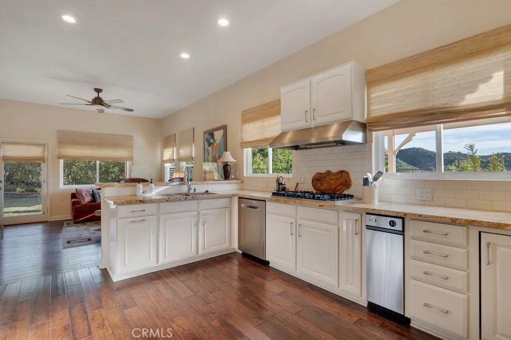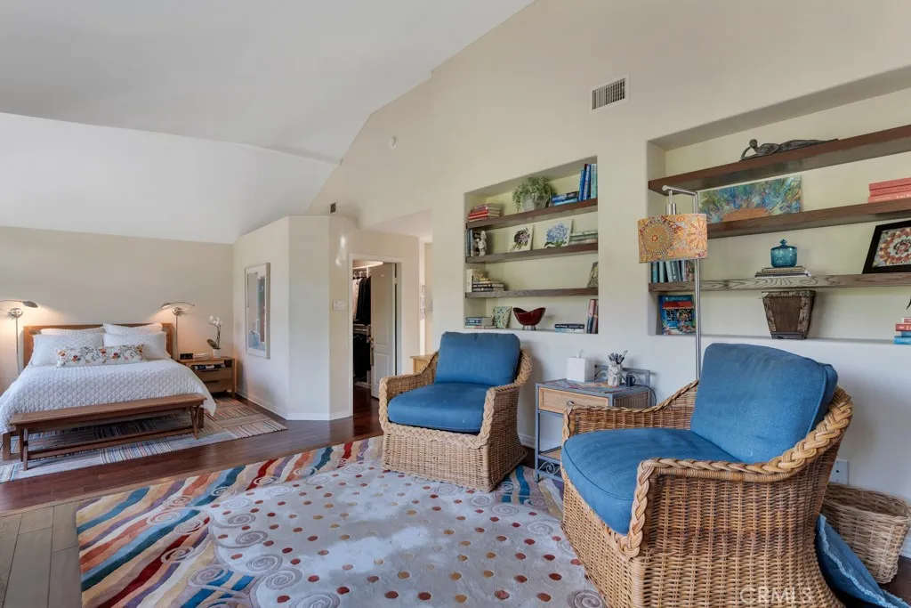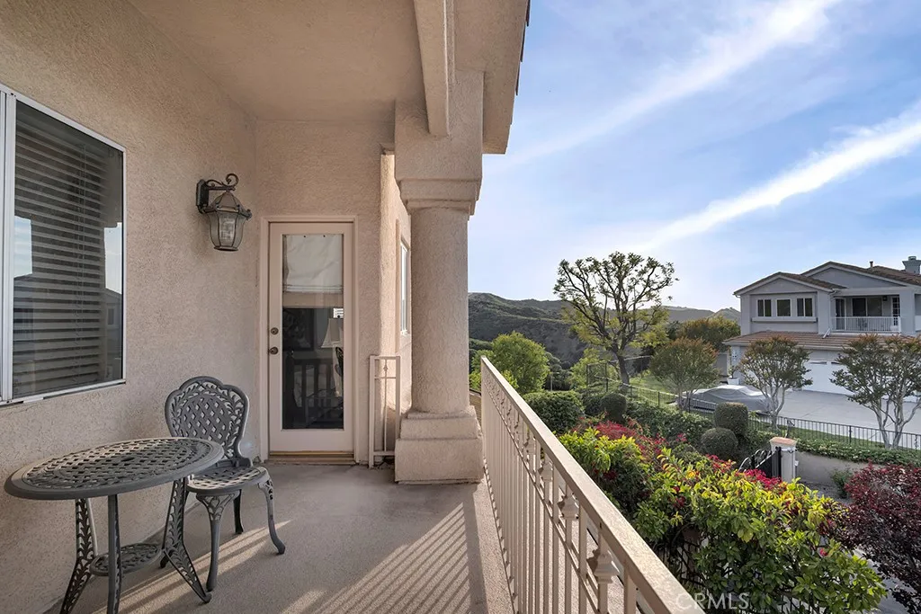 Imagine yourself sitting on your patio and watching the sun set over the majestic mountains in this beautiful gated community located on a cul de sac in the desirable Las Virgenes School District . When you enter this 3 bedroom, 2.5 bath home through double doors, you will be greeted with soaring ceilings as you walk into the living room with an adjacent dining room. The kitchen with granite countertops and Hunter Douglass window treatments, has an eating area/family room. Upstairs is an incredible en-suite primary bedroom with a fireplace in the sitting area, and lots of custom shelves, cabinets and large closets. From the primary bedroom balcony you can see a view of the mountains. The en-suite bathroom has 2 sinks across from each other and a separate tub and shower. There are 2 secondary bedrooms upstairs with a Jack and Jill bathroom and lots of storage and custom built in closets. The flexible floodplain allows the owner to adjust the space to their needs. There is a private community park. This house has lots of natural light, great storage, hardwood floors throughout and Hunter Douglas window coverings in the bedrooms. Custom landscaping with a low water lawn, custom outside lights, and 2 patio area ( one of which has a barbecue) This is paradise. Currently, the 3rd garage is being used for storage but can be converted back to a garage.