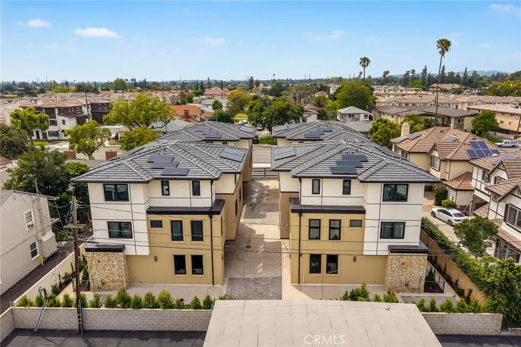 Stunning brand-new 8-unit luxury complex with modern design in the highly desirable Arcadia, located within the award-winning Arcadia Unified School District and developed by Rodeo Development. Conveniently situated near Westfield Santa Anita, Santa Anita Park, the Los Angeles County Arboretum and Botanic Garden, Santa Anita Golf Course, and USC Arcadia Hospital, with easy access to Interstate 210. This property features a 4-unit duplex-style building, with each residence shares only one wall and has three sides exposed to natural light, providing excellent brightness and cross-ventilation. Each unit offers approximately 1,660 sq. ft. of living space with 3 bedrooms and 3 bathrooms. The open and functional floor plan showcases European-style windows, luxury vinyl plank floors, and designer finishes throughout. The second level features a spacious great room, dining area, and a gourmet kitchen equipped with quartz countertops, Bosch appliances, and custom cabinetry, seamlessly connected for both everyday living and entertaining. One en-suite bedroom is also conveniently located on this level. The third level is dedicated to the primary suite, complete with a designer bathroom, along with an additional well-appointed en-suite bedroom.This all-electric home features a heat pump A/C system, electric water heater, stove, washer, and dryer (no gas service). Each unit includes a fully paid 6-panel solar system, a private outdoor space, and a dedicated laundry area. The attached 2-car garage is equipped with a Level 2 EV charger for each unit. Located near Hugo Reid Elementary Scho