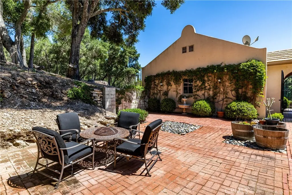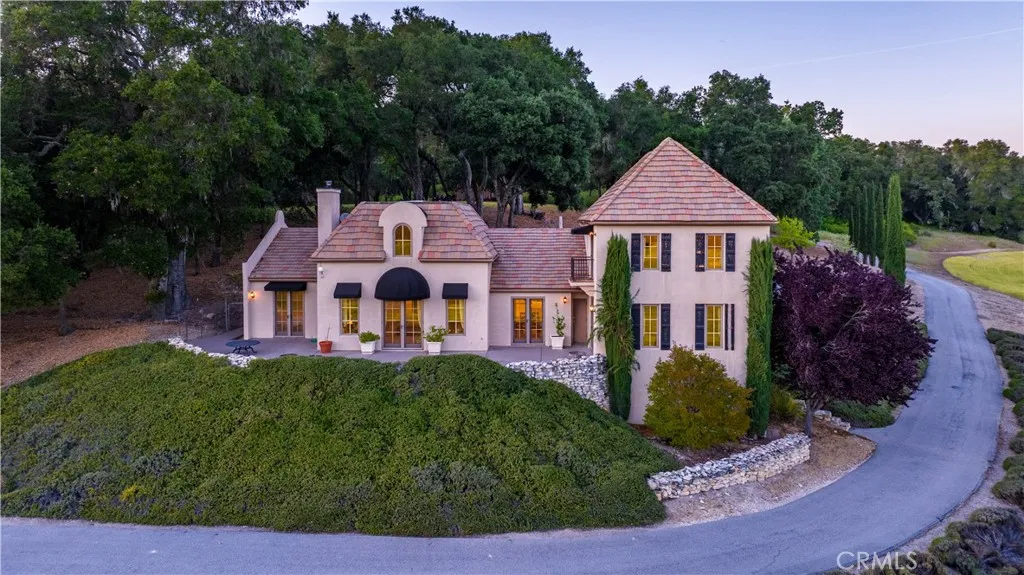 Welcome to your private retreat in the gated community of Hidden Valley Ranch in Templeton. Set on approximately 41 acres of peaceful, scenic land, 810 Dove Pond Road offers a rare blend of timeless design, comfort, and tranquility. This thoughtfully designed residence features 3 bedrooms and 2.5 bathrooms. Two bedrooms includes its own spacious ensuite, providing comfort and privacy for all. Inside, youll find a warm and inviting interior with a seamless blend of tile and wood flooring, tall ceilings, and an open-concept floor plan that enhances the homes natural light and flow. The beautifully appointed kitchen serves as the heart of the home, opening to the main living area complete with a cozy fireplaceideal for relaxing evenings. French doors lead you to the back of the home, where youll take in sweeping views of the surrounding acreageoffering a true sense of serenity and connection to nature. A charming, extremely private courtyard provides a peaceful outdoor retreatperfect for relaxing, entertaining, or simply enjoying the quiet surroundings. Additional highlights include a 2-car garage, three wells on the property (one capped), and a detached secondary structure that can be utilized as an artist studio, workshop, or whatever your heart desires. The expansive acreage offers endless potentialwhether for recreation, equestrian use, or simply enjoying the privacy and beauty of Hidden Valley. Residents also enjoy access to miles of scenic bridle and hiking trails throughout the Hidden Valley community, making it an ideal setting for outdoor enthusiasts and horse lovers