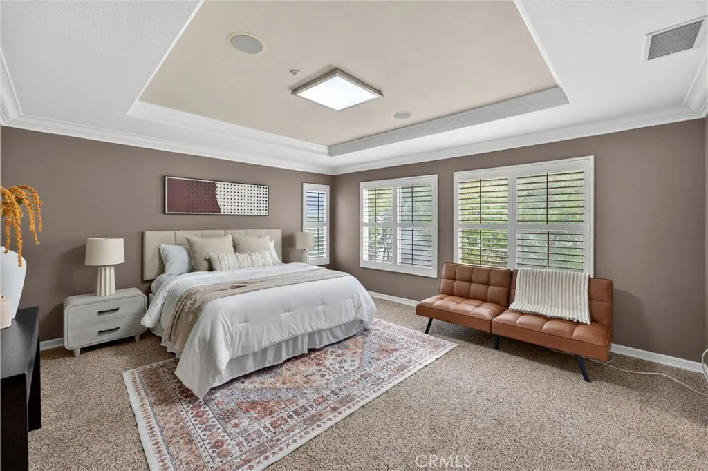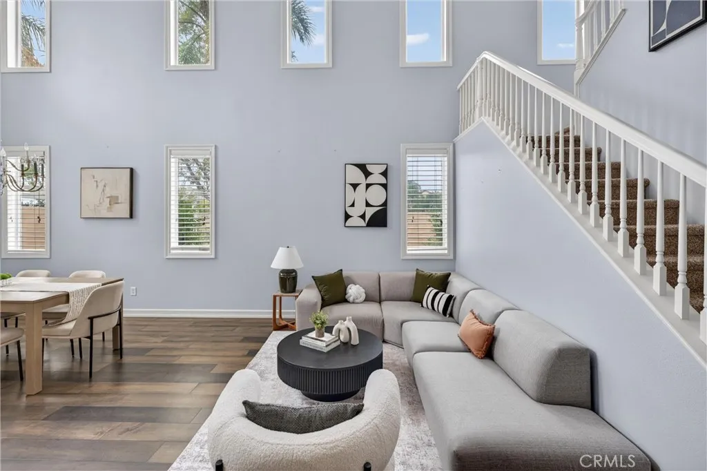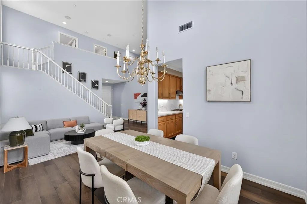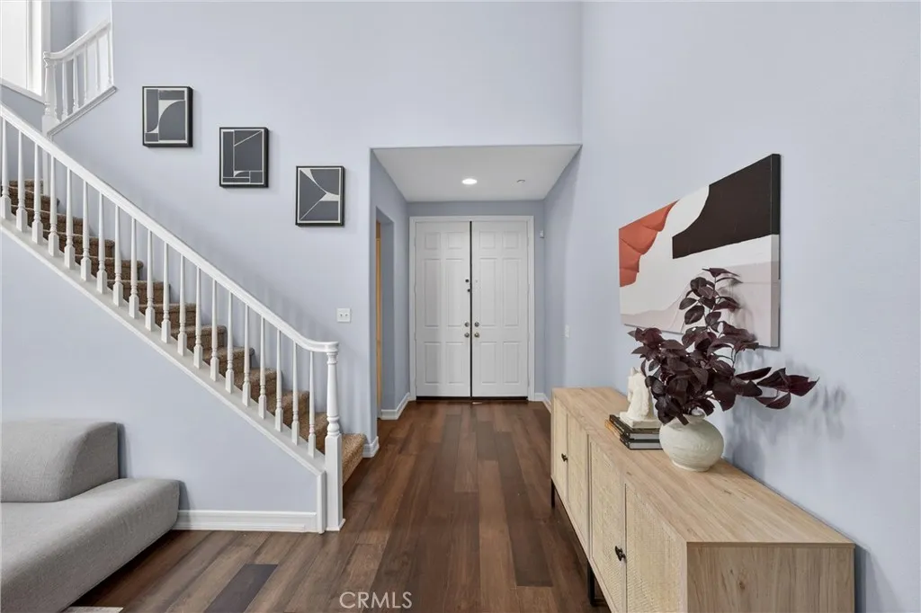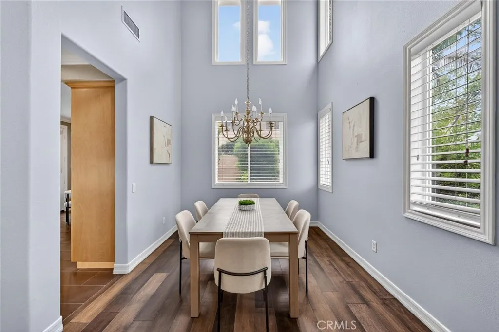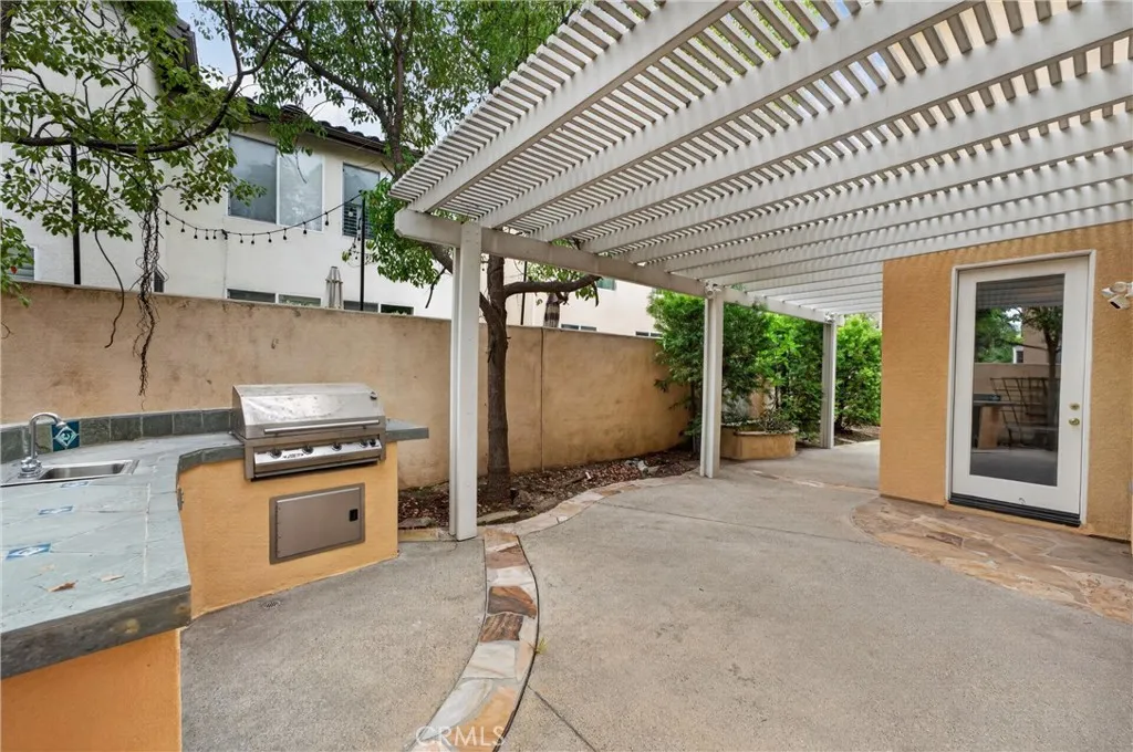 This 5-bedroom, 3-bathroom home offers 2,541 square feet of well-designed living space in the Alta Vista community. Upon entry, youre greeted by double-height ceilings that extend into the formal living and dining areas, with oversized windows bringing in an abundance of natural light. The main level features a full bedroom and bathroomideal for guests or multi-generational livingalong with a separate family room with a fireplace and built-in cabinetry for a more relaxed setting. The kitchen is equipped with quartz countertops, a sizeable island, and opens seamlessly to the main living areas for everyday living and entertaining. Upstairs, the primary suite offers a comfortable retreat with a spa-like bathroom featuring a freestanding tub, walk-in shower, dual vanity, and a spacious closet. Additional bedrooms are well-sized and provide flexibility for a home office or growing household. The backyard includes a covered patio, built-in BBQ, and a separate seating areacreating multiple spaces to relax or host. A 3-car garage configuration, including a two-car garage and separate single-car garage, offers added flexibility for parking and storage. Located near the Alta Vista Country Club and zoned for Valencia High School, with a low HOA and favorable tax rate, this home offers a rare opportunity to enjoy a high-quality neighborhood with long-term value.