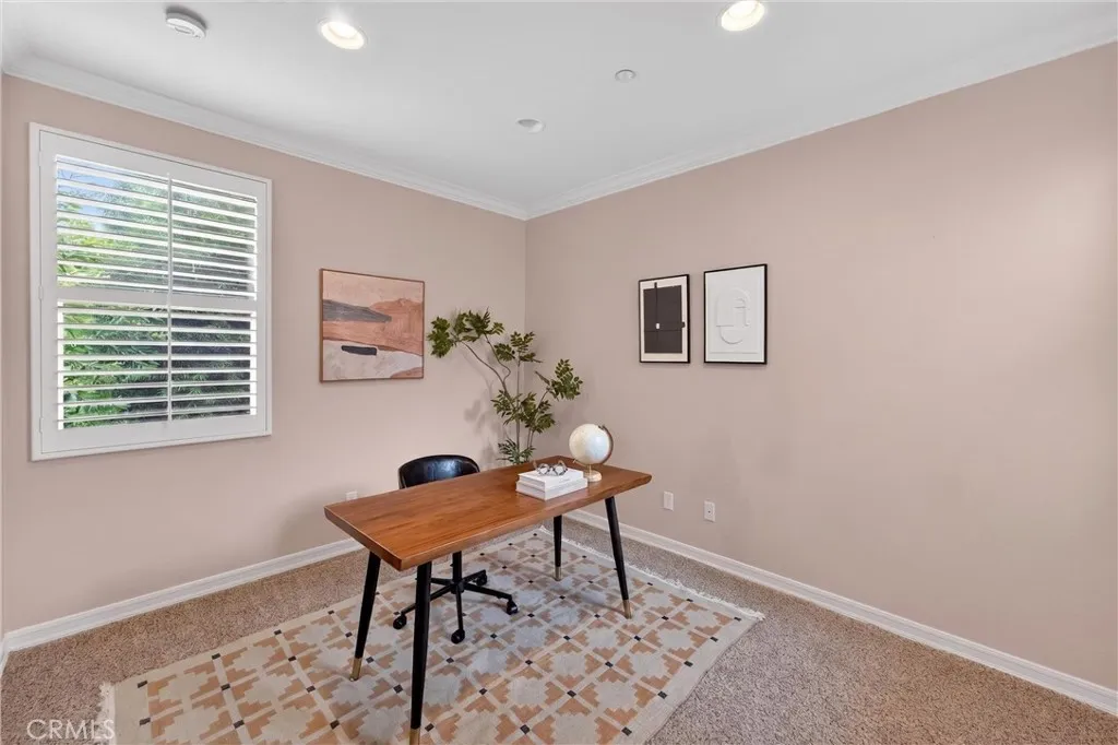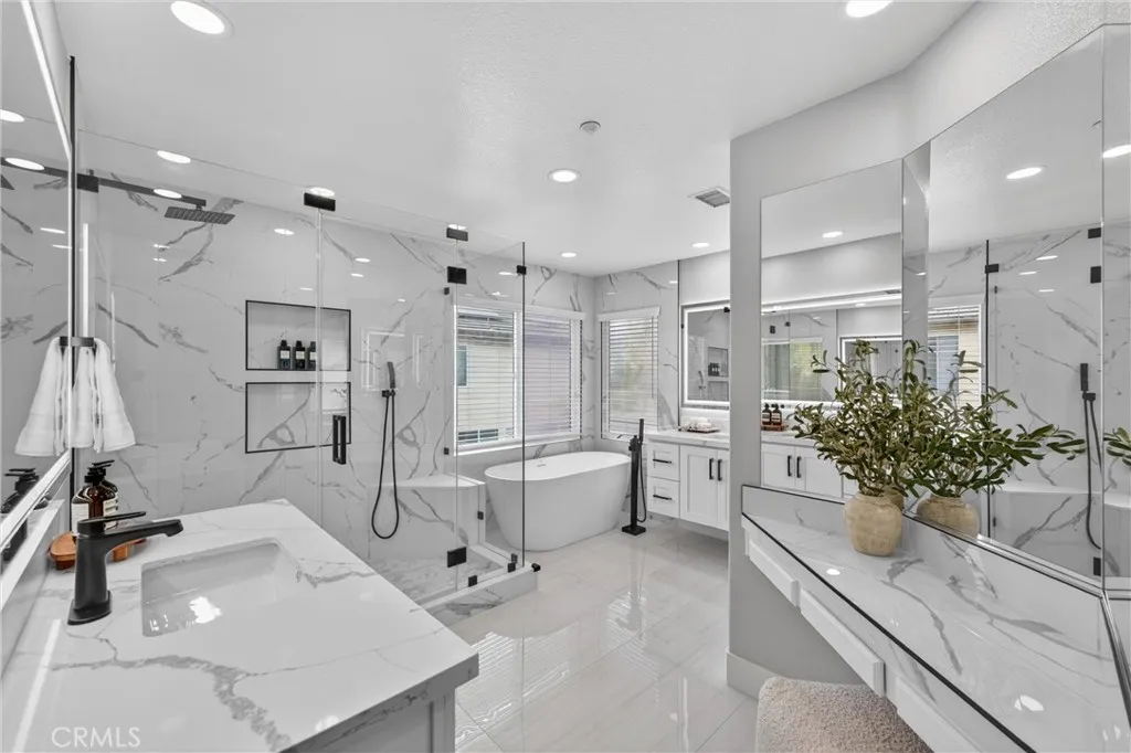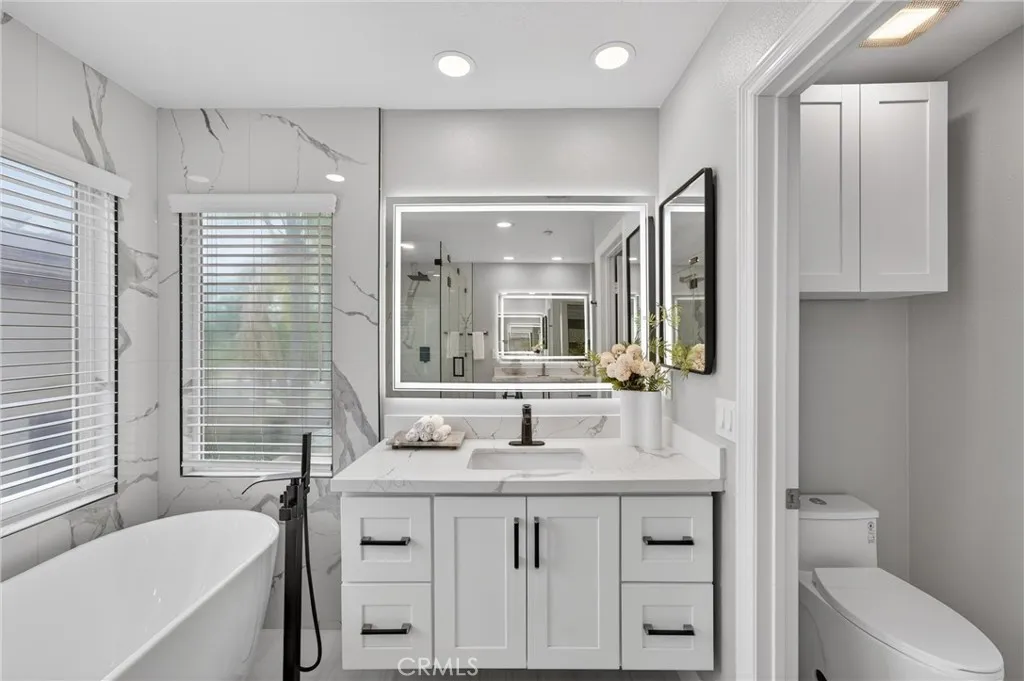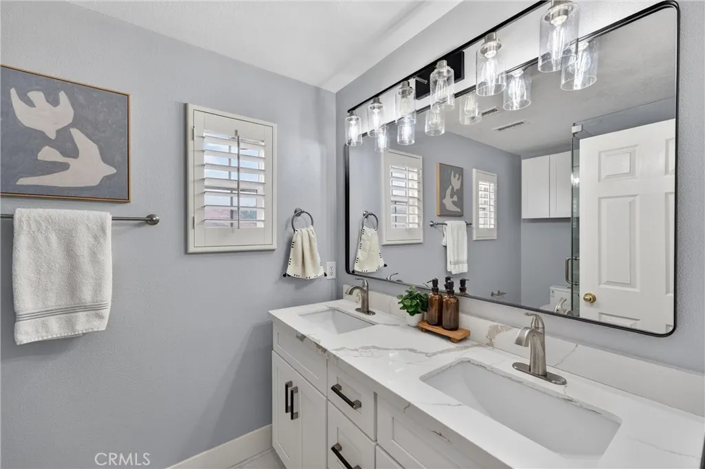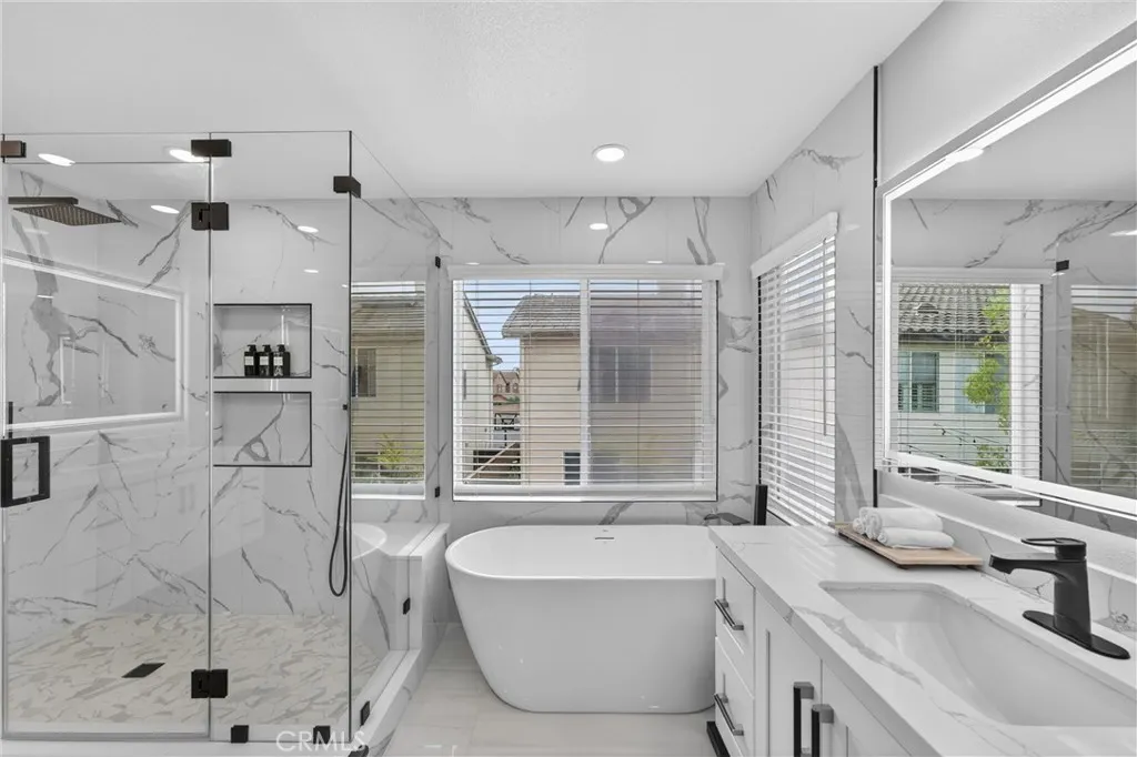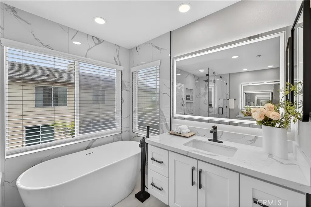 This 5-bedroom, 3-bathroom home offers 2,541 square feet of well-designed living space in the Alta Vista community. Upon entry, youre greeted by double-height ceilings that extend into the formal living and dining areas, with oversized windows bringing in an abundance of natural light. The main level features a full bedroom and bathroomideal for guests or multi-generational livingalong with a separate family room with a fireplace and built-in cabinetry for a more relaxed setting. The kitchen is equipped with quartz countertops, a sizeable island, and opens seamlessly to the main living areas for everyday living and entertaining. Upstairs, the primary suite offers a comfortable retreat with a spa-like bathroom featuring a freestanding tub, walk-in shower, dual vanity, and a spacious closet. Additional bedrooms are well-sized and provide flexibility for a home office or growing household. The backyard includes a covered patio, built-in BBQ, and a separate seating areacreating multiple spaces to relax or host. A 3-car garage configuration, including a two-car garage and separate single-car garage, offers added flexibility for parking and storage. Located near the Alta Vista Country Club and zoned for Valencia High School, with a low HOA and favorable tax rate, this home offers a rare opportunity to enjoy a high-quality neighborhood with long-term value.