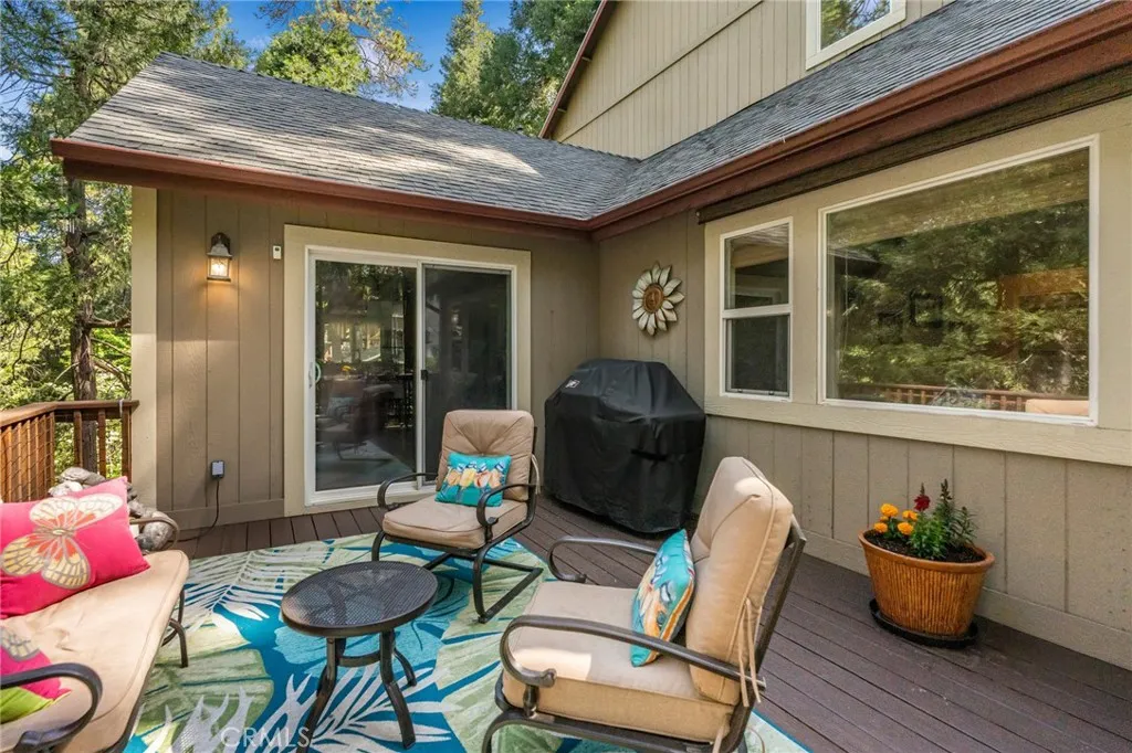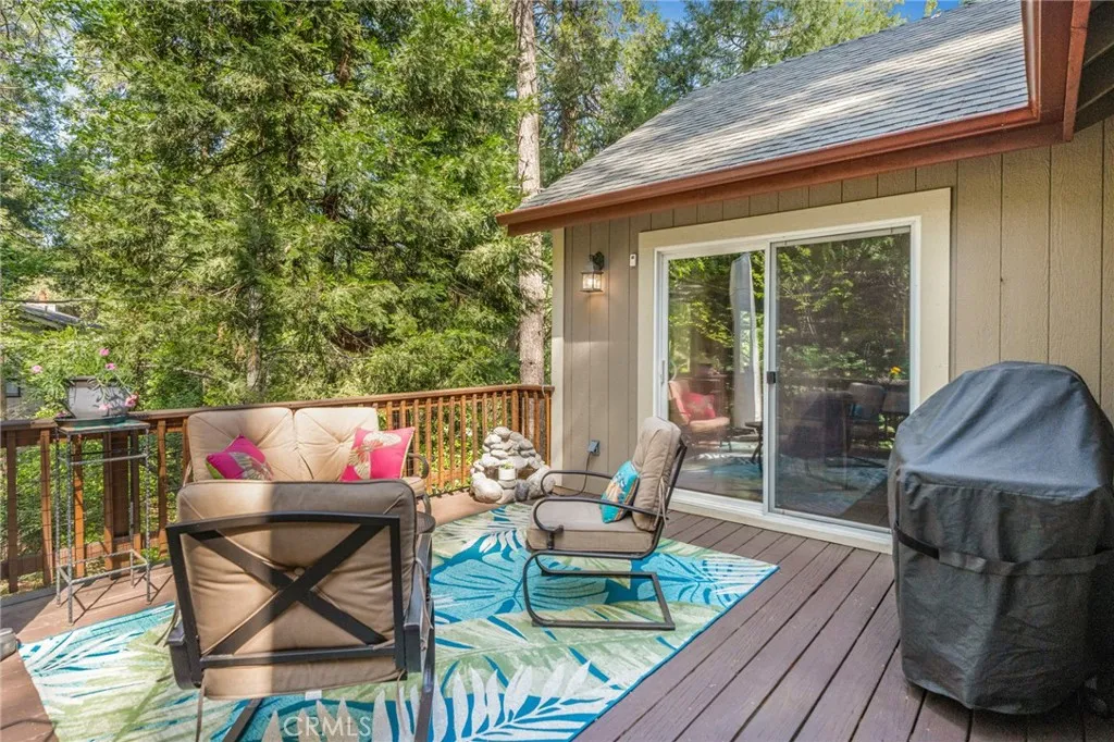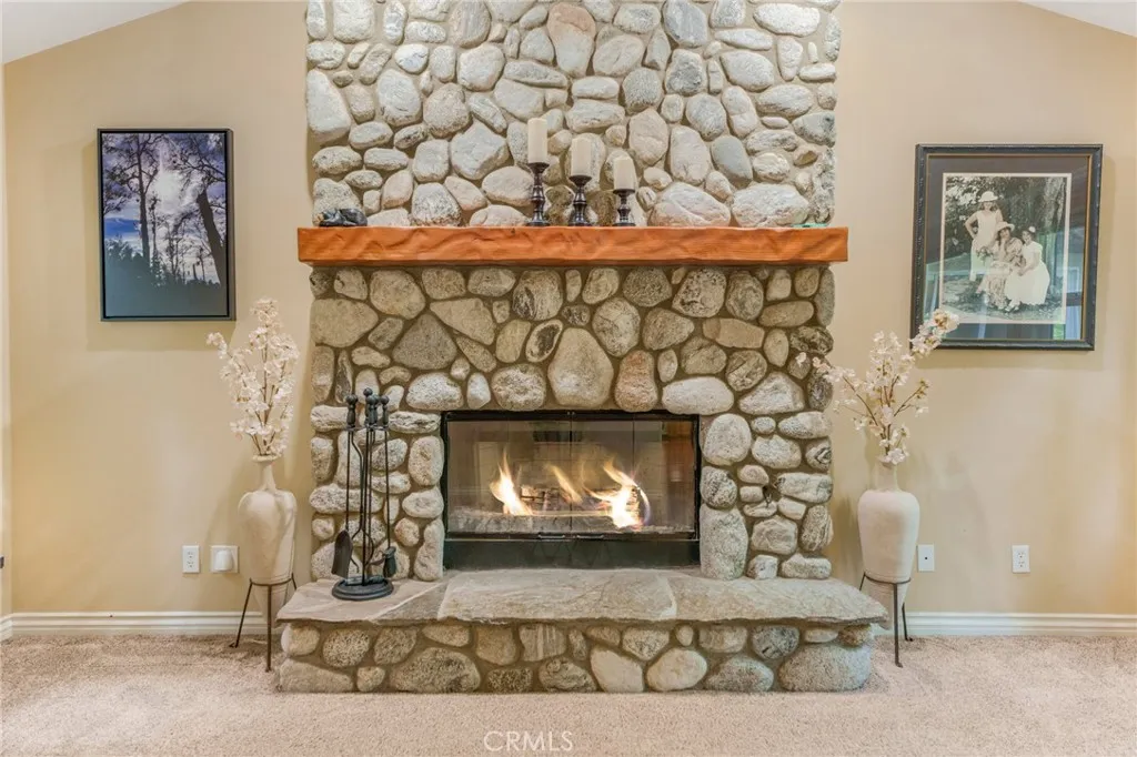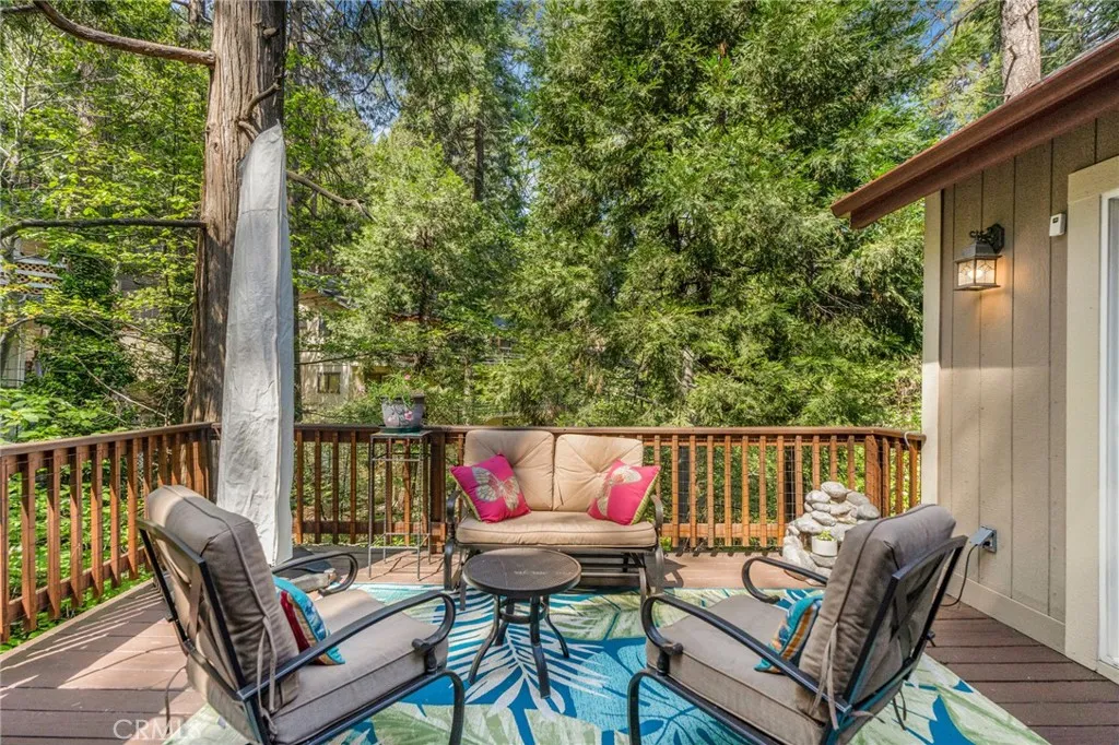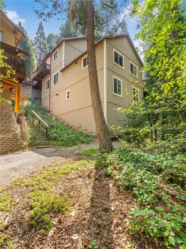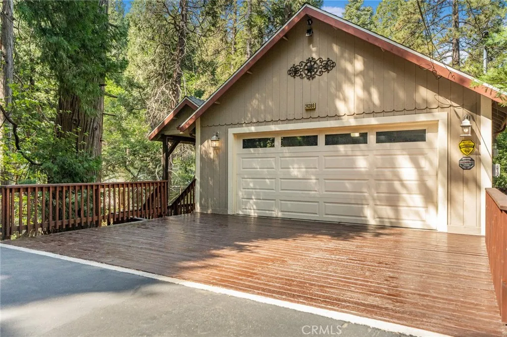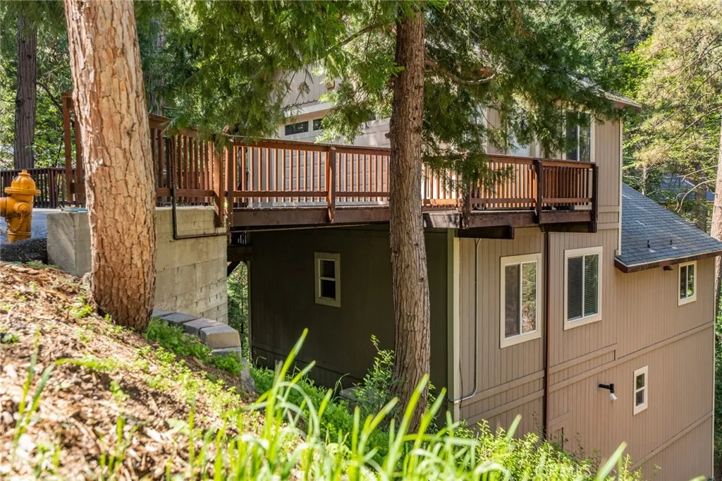 Beautiful Crestline Mountain Home Near Lake Gregory - Built in 2007 and offering 2,268 sq ft of living space, this well-maintained 3-bedroom, 2.5-bath home sits on a 7,713 sq ft lot surrounded by mature cedar, pine, and dogwood trees, creating a peaceful forest setting. This three-level home welcomes you through a main entry landing or the attached 2-car garage. The middle level serves as the heart of the home, featuring a living room with a stunning rock hearth fireplace and soaring ceiling. The gourmet kitchen is designed for both everyday living and entertaining, complete with granite countertops, an eat-at island, walk-in pantry, stainless steel appliances, and warm oak cabinetry. The adjacent dining area opens to a back deck, perfect for enjoying the cool mountain air and serene wooded surroundings. The primary suite is conveniently located on the main level and offers tall ceilings, built-in shelving, a walk-in closet, and an en-suite bathroom with dual sinks, a soaking tub, and a separate walk-in shower. The bottom lower-level features two additional bedrooms, a full bathroom, and a versatile bonus area ideal for an office, workout space, or library. The lower level includes a spacious family room with a second rock fireplace, laundry area, and access to both the back deck and yard, where youll find a seasonal creek enhancing the natural charm of the property. An additional approx. 800 sq ft of unfinished space behind the bonus area offers exciting potential to expand the living area. Additional highlights include a whole-house generator for year-round comfort and pe