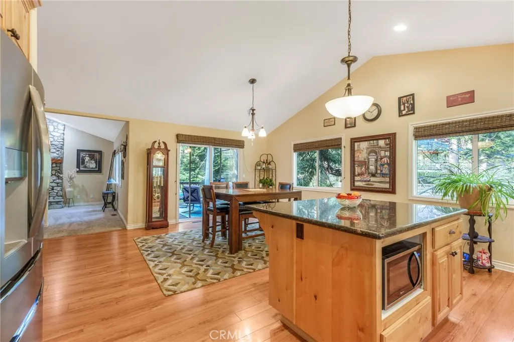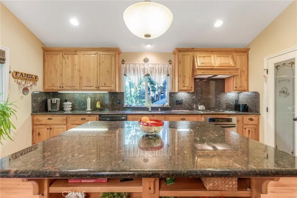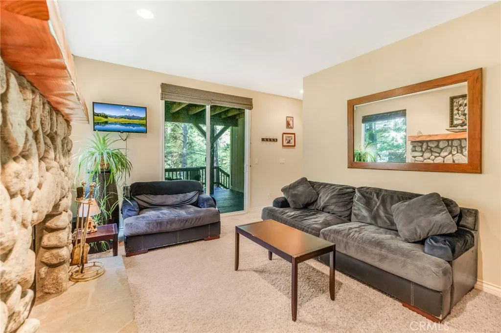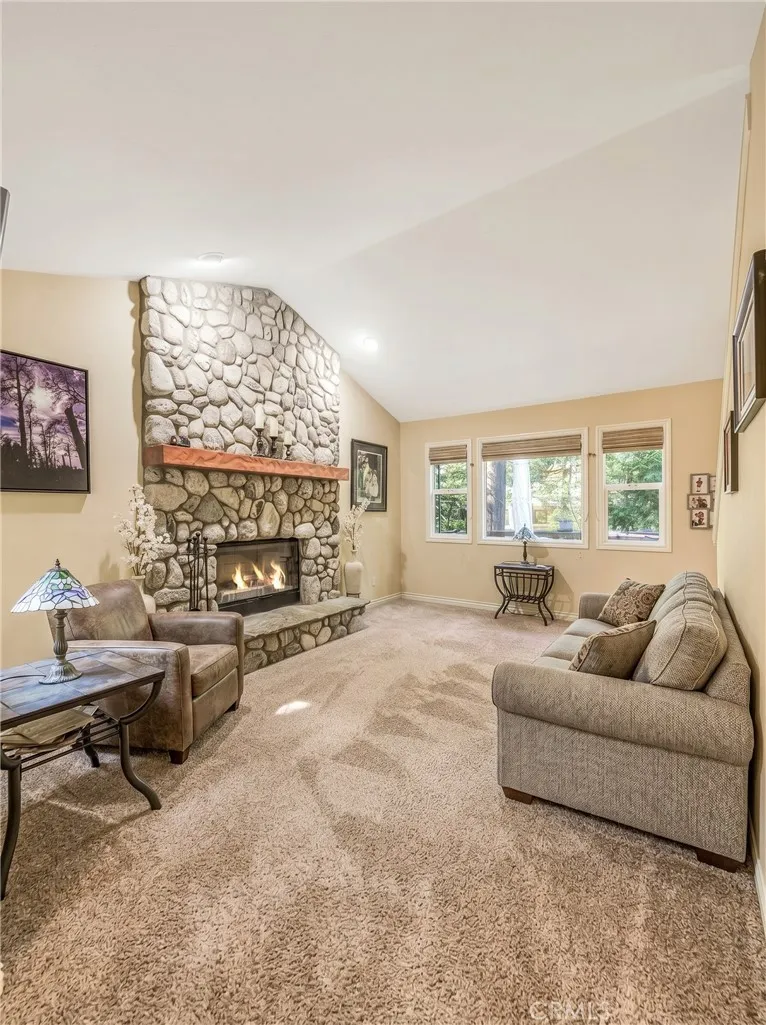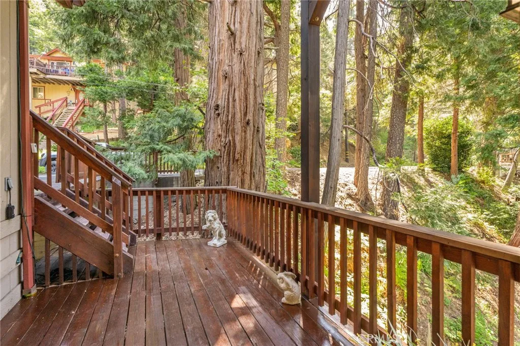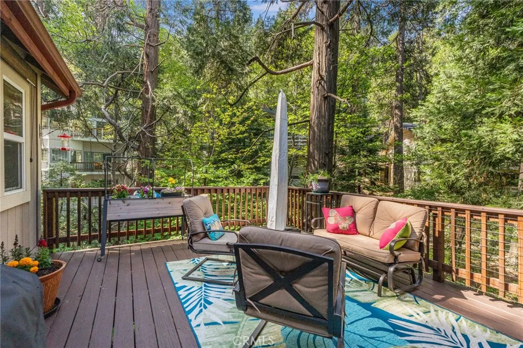 Beautiful Crestline Mountain Home Near Lake Gregory - Built in 2007 and offering 2,268 sq ft of living space, this well-maintained 3-bedroom, 2.5-bath home sits on a 7,713 sq ft lot surrounded by mature cedar, pine, and dogwood trees, creating a peaceful forest setting. This three-level home welcomes you through a main entry landing or the attached 2-car garage. The middle level serves as the heart of the home, featuring a living room with a stunning rock hearth fireplace and soaring ceiling. The gourmet kitchen is designed for both everyday living and entertaining, complete with granite countertops, an eat-at island, walk-in pantry, stainless steel appliances, and warm oak cabinetry. The adjacent dining area opens to a back deck, perfect for enjoying the cool mountain air and serene wooded surroundings. The primary suite is conveniently located on the main level and offers tall ceilings, built-in shelving, a walk-in closet, and an en-suite bathroom with dual sinks, a soaking tub, and a separate walk-in shower. The bottom lower-level features two additional bedrooms, a full bathroom, and a versatile bonus area ideal for an office, workout space, or library. The lower level includes a spacious family room with a second rock fireplace, laundry area, and access to both the back deck and yard, where youll find a seasonal creek enhancing the natural charm of the property. An additional approx. 800 sq ft of unfinished space behind the bonus area offers exciting potential to expand the living area. Additional highlights include a whole-house generator for year-round comfort and pe