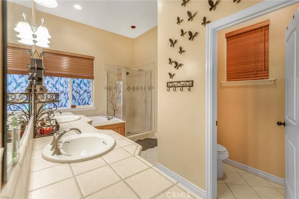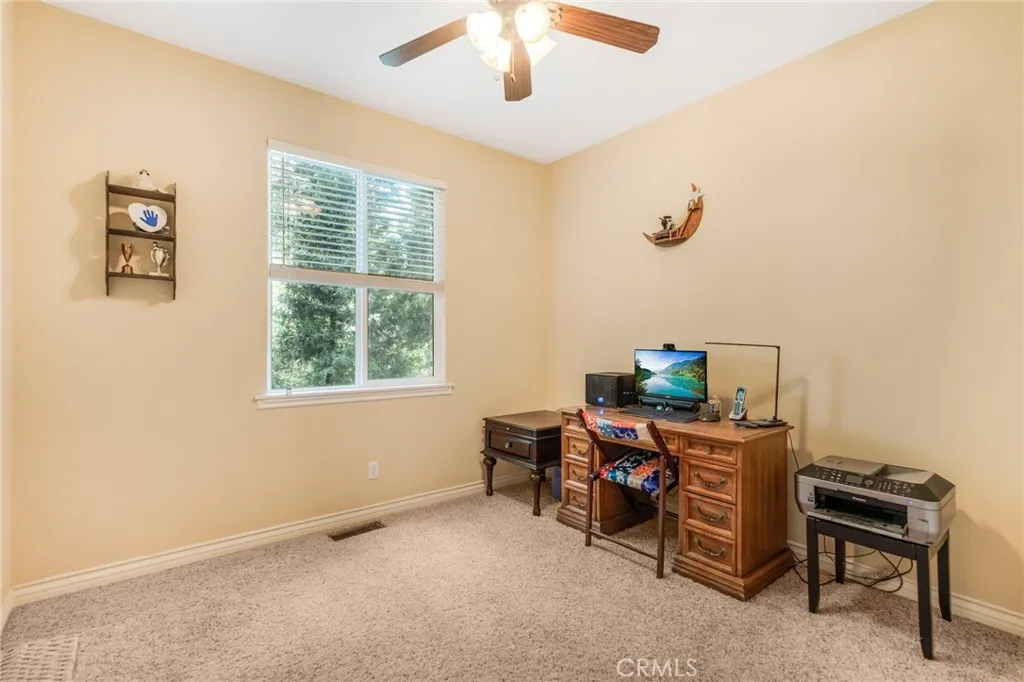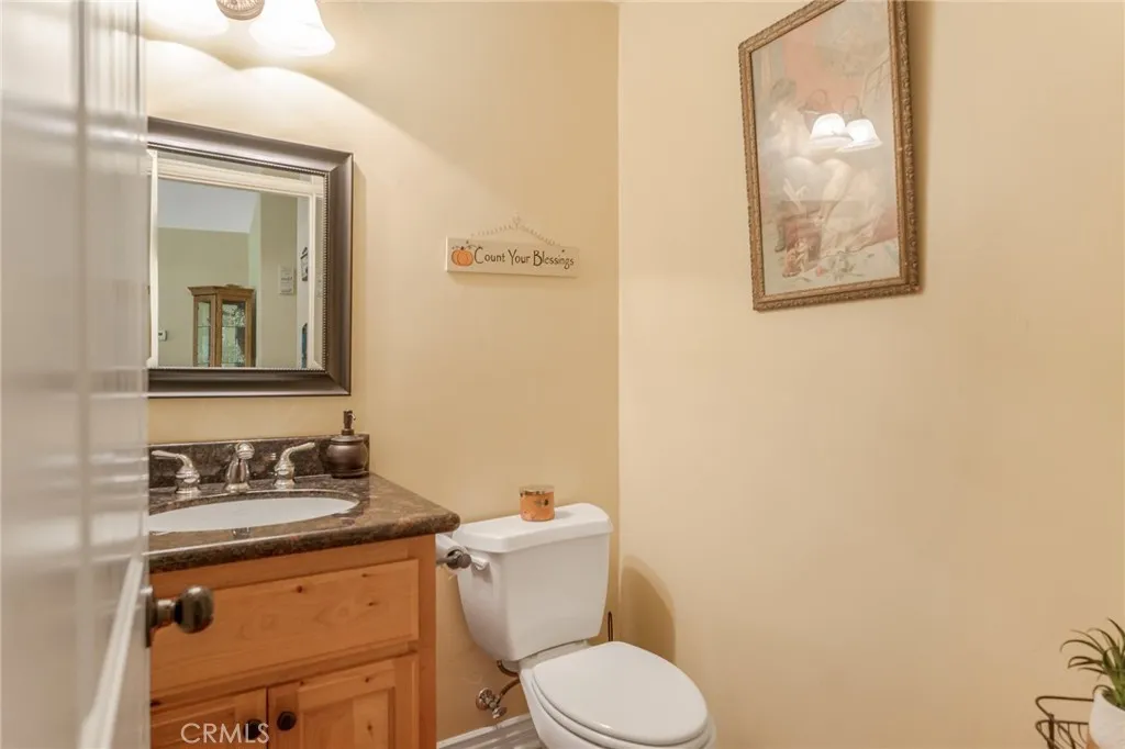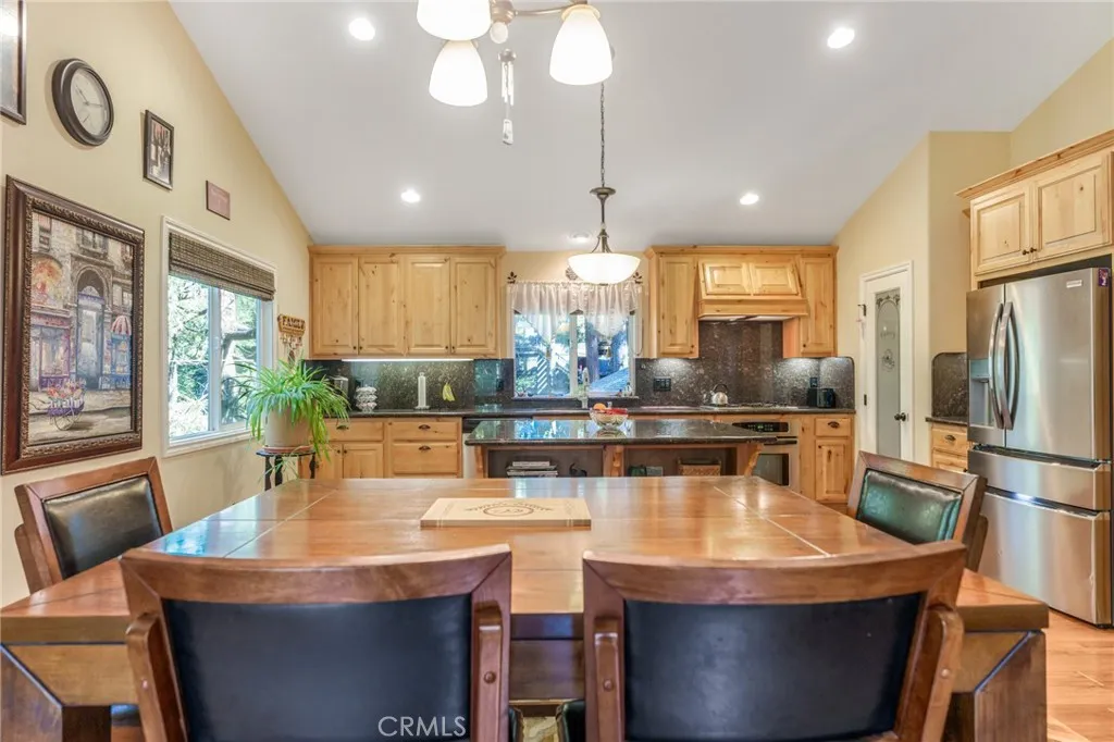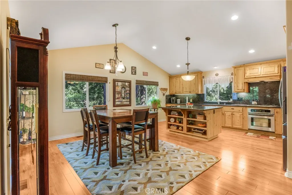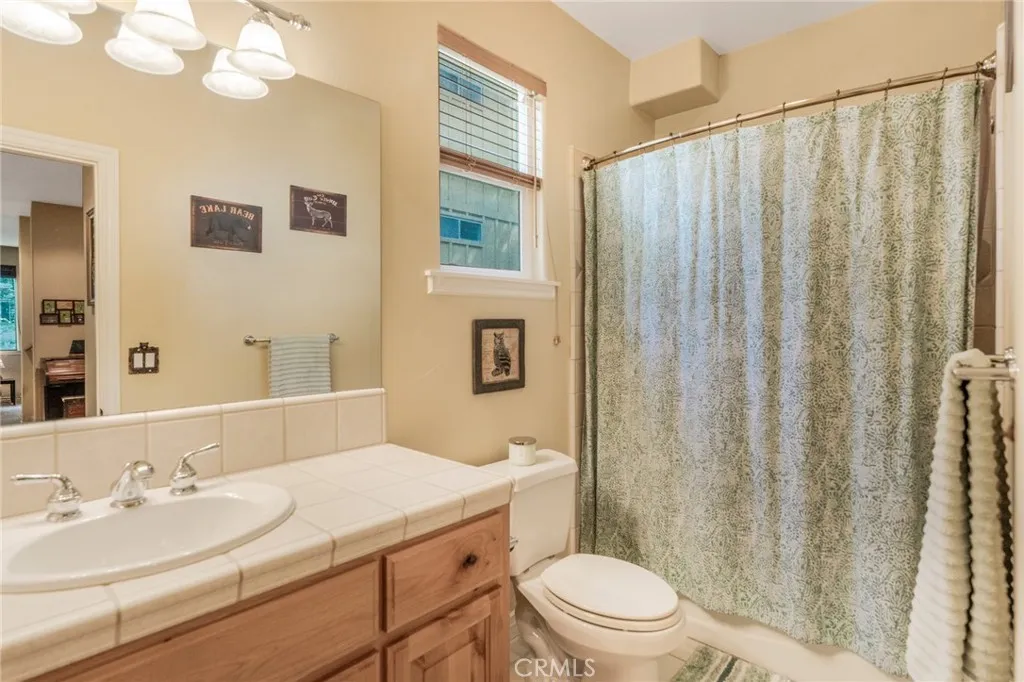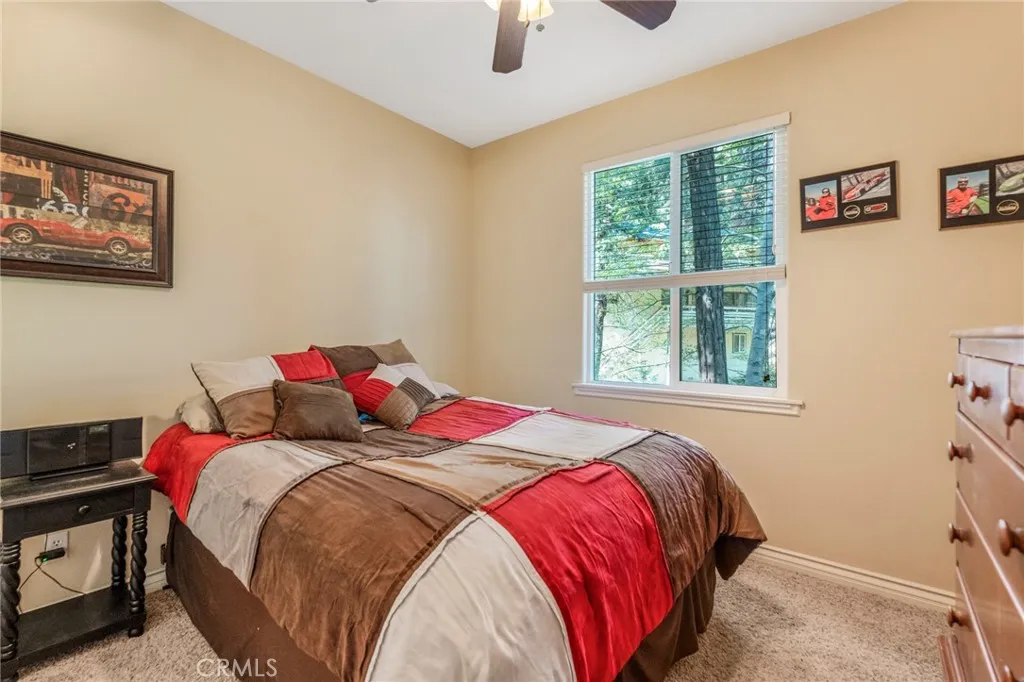 Beautiful Crestline Mountain Home Near Lake Gregory - Built in 2007 and offering 2,268 sq ft of living space, this well-maintained 3-bedroom, 2.5-bath home sits on a 7,713 sq ft lot surrounded by mature cedar, pine, and dogwood trees, creating a peaceful forest setting. This three-level home welcomes you through a main entry landing or the attached 2-car garage. The middle level serves as the heart of the home, featuring a living room with a stunning rock hearth fireplace and soaring ceiling. The gourmet kitchen is designed for both everyday living and entertaining, complete with granite countertops, an eat-at island, walk-in pantry, stainless steel appliances, and warm oak cabinetry. The adjacent dining area opens to a back deck, perfect for enjoying the cool mountain air and serene wooded surroundings. The primary suite is conveniently located on the main level and offers tall ceilings, built-in shelving, a walk-in closet, and an en-suite bathroom with dual sinks, a soaking tub, and a separate walk-in shower. The bottom lower-level features two additional bedrooms, a full bathroom, and a versatile bonus area ideal for an office, workout space, or library. The lower level includes a spacious family room with a second rock fireplace, laundry area, and access to both the back deck and yard, where youll find a seasonal creek enhancing the natural charm of the property. An additional approx. 800 sq ft of unfinished space behind the bonus area offers exciting potential to expand the living area. Additional highlights include a whole-house generator for year-round comfort and pe