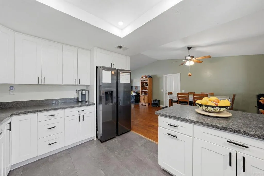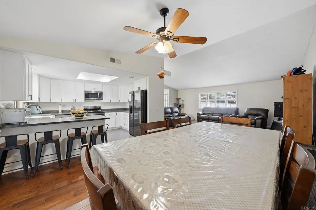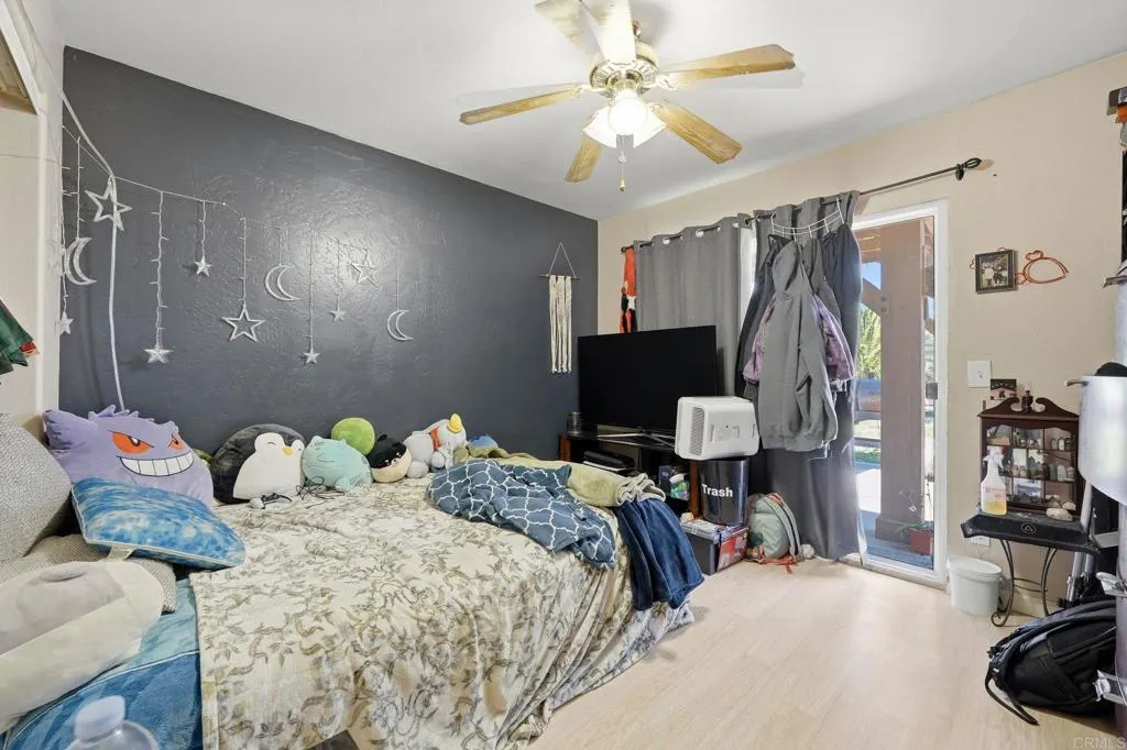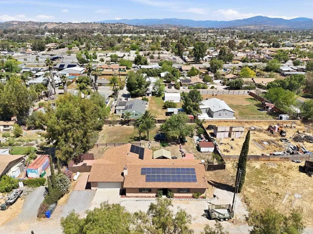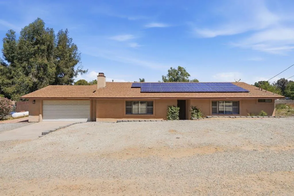 Located on a private road in Ramona, this half-acre property offers space, privacy, and versatility with no HOA. Inside, youll find an open-concept living area, ample living space, and a remodeled kitchen designed for both everyday living and entertaining. The home also features an attached ADU with a private entrance. The ADU includes a bedroom, full bathroom, living space, and dining area, making it perfect for guests, extended family, or flexible use. Outside, enjoy a massive yard with plenty of room to make it your own, plus ample front parking. Solar on the property helps keep electricity costs down.