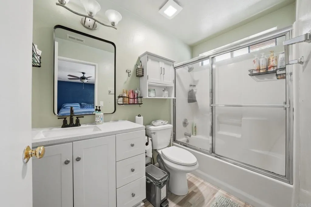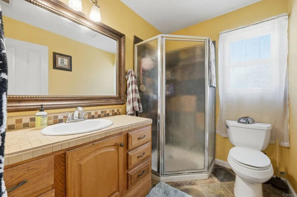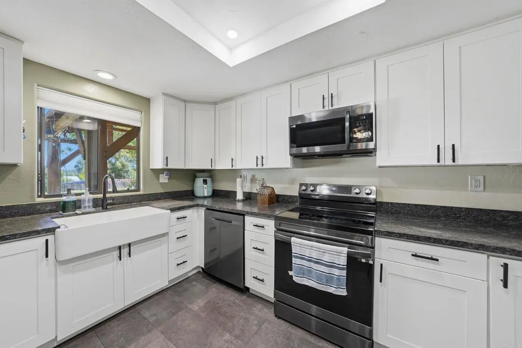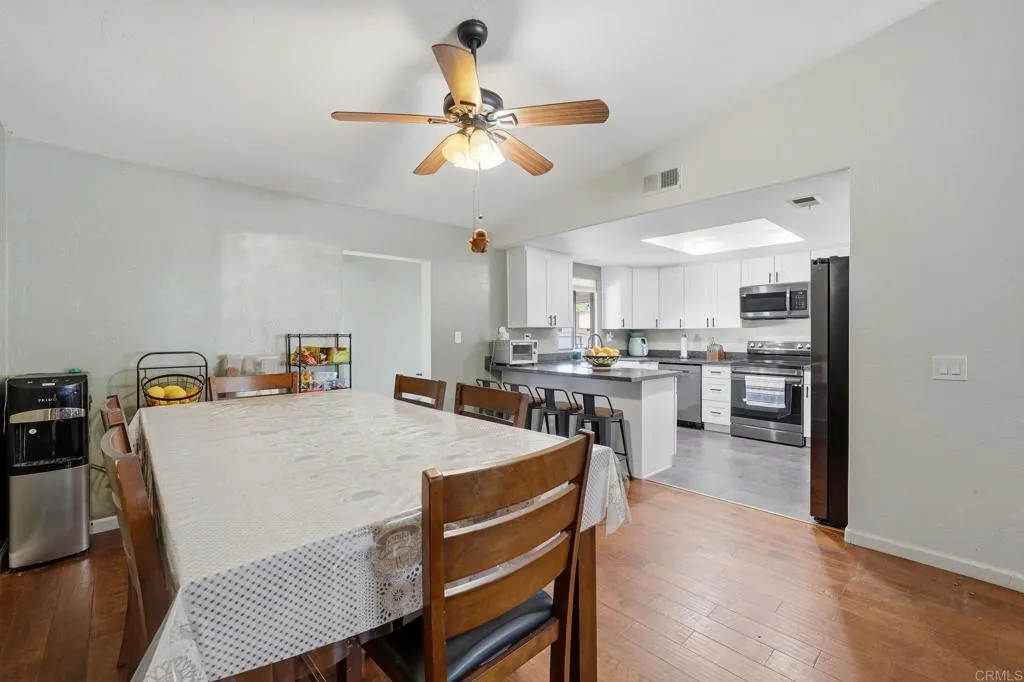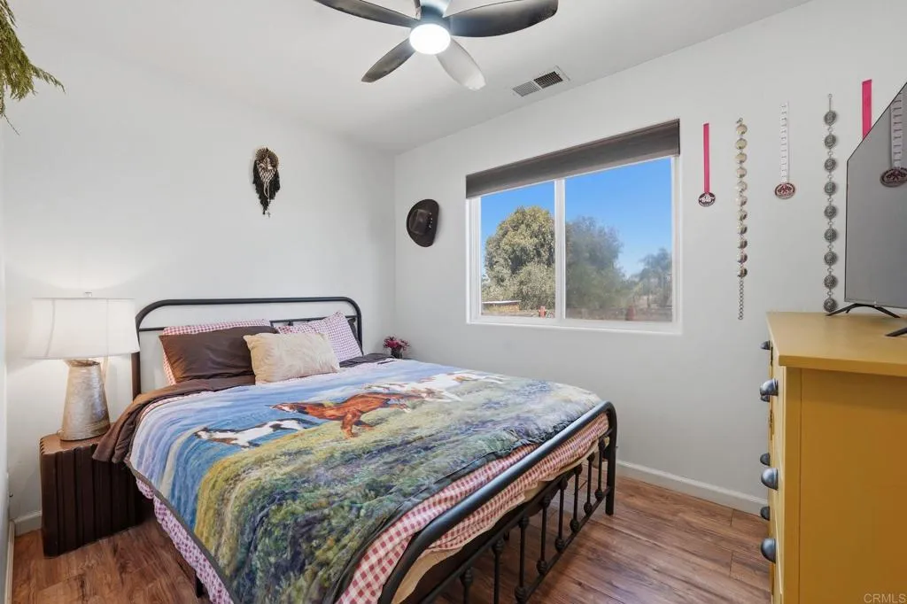 Located on a private road in Ramona, this half-acre property offers space, privacy, and versatility with no HOA. Inside, youll find an open-concept living area, ample living space, and a remodeled kitchen designed for both everyday living and entertaining. The home also features an attached ADU with a private entrance. The ADU includes a bedroom, full bathroom, living space, and dining area, making it perfect for guests, extended family, or flexible use. Outside, enjoy a massive yard with plenty of room to make it your own, plus ample front parking. Solar on the property helps keep electricity costs down.