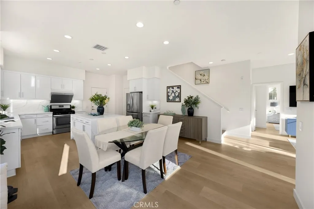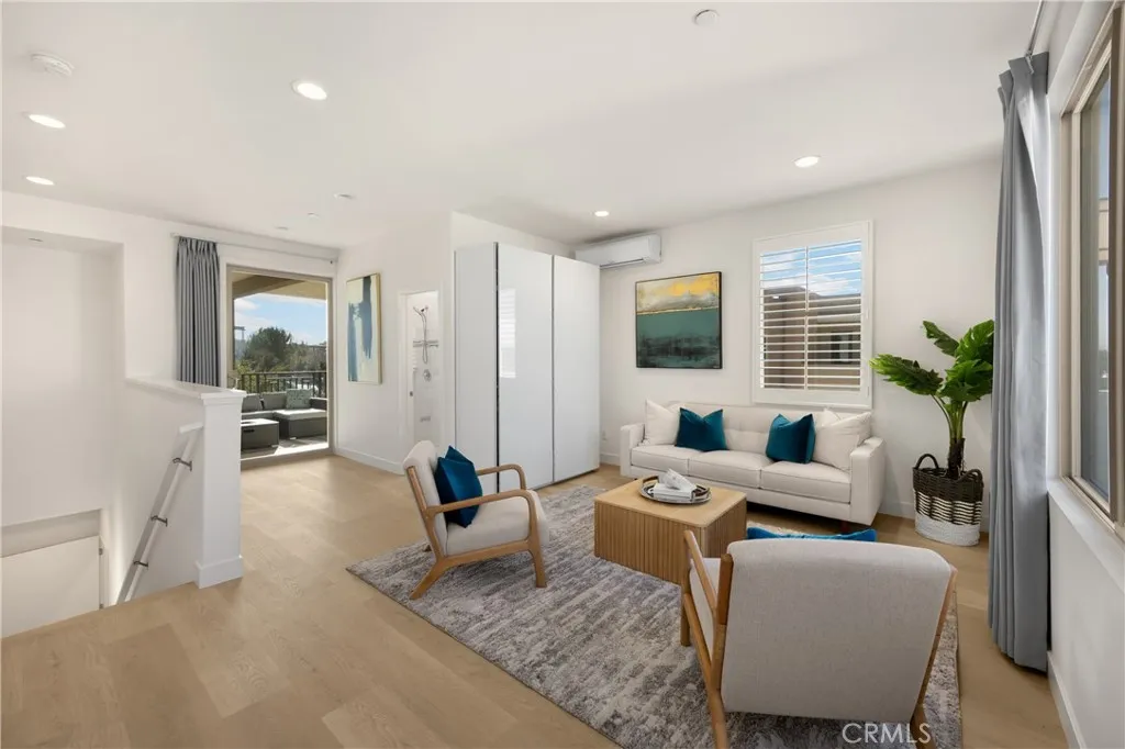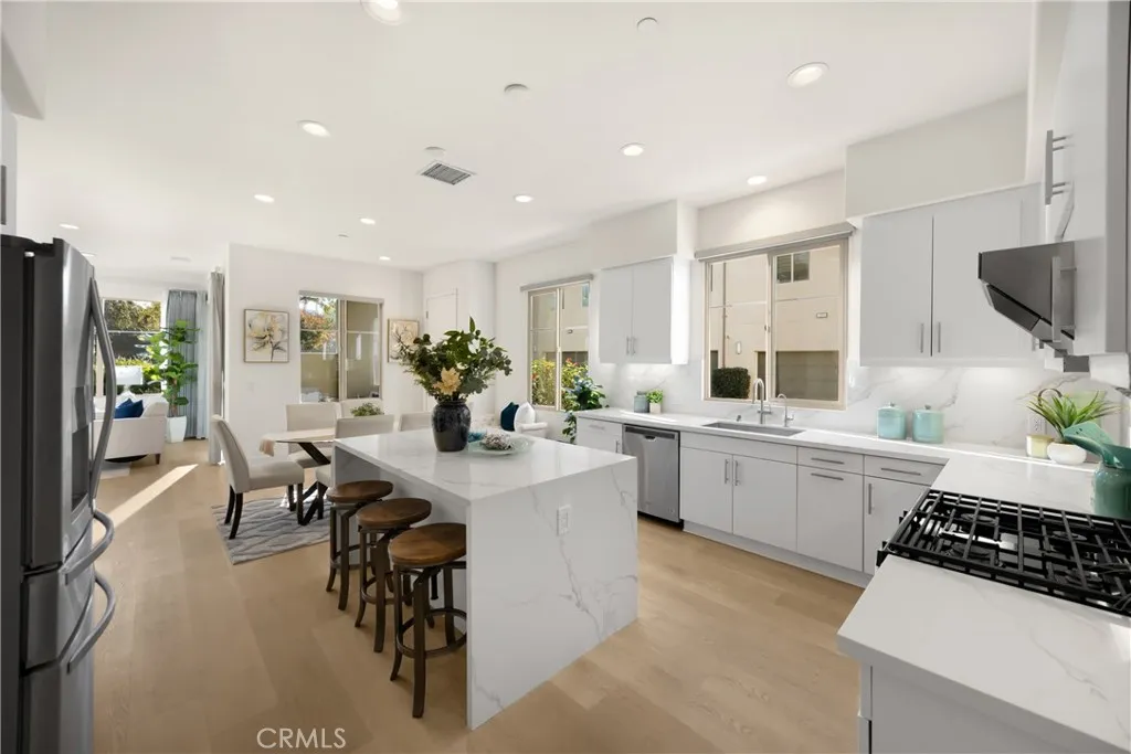 Welcome to your new dream home at 269 Magnet in the coveted new Great Park neighborhood! Built in 2018, it proudly boasts an open floor plan, almost 10ft ceiling, and a full-house flooring upgrade that adds a remarkable touch of modernity. The house is ADA accessible, allowing comfortable navigation for seniors or those with motor impairment. Upon walking through the front door, you'll find the kitchen on the left, which has been massively upgraded with waterfall quartz countertops, all stainless-steel appliances, paired with a generous walk-in pantry, fulfilling both aesthetic style and practicality. The spacious living room to the right is connected via glass sliding door to the lovely patio. The downstairs bedroom provides a wonderfully convenient space for guests or seniors. Upstairs in the master bedroom boasts large windows with views of the neighborhood and a bathroom with a capacious walk-in closet. The other two bedrooms are south-facing, which provide an abundance of natural light. The spectacular third floor bonus room can be converted to anything of your heart's desire; a kid's playroom, an office, or a theater! It also has a luxury private balcony and a large deck, situated on opposite sides, both large enough to be used as a place to relax or host a gathering with friends, with beautiful community views of Saddleback Mountain. Lastly, the attached 2-car garage is installed with numerous cabinets equipped with sliding doors for handy, ample storage. Great Park residents enjoy close access to top-class amenities, such as resort-style pools, expansive parks, spor