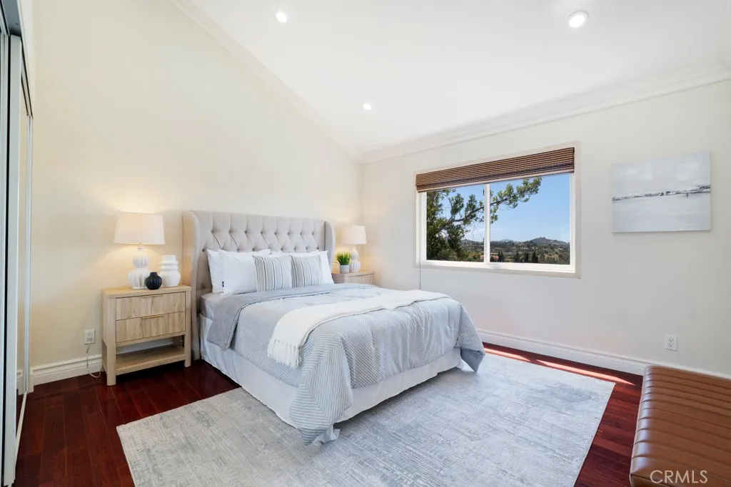 Dramatically perched high above the San Fernando Valley in beautiful Woodland Hills-South and nestled conveniently on prestigious Alatar Drive , this enchanting home is ideal for luxurious 91364 living. Enjoy spectacular panoramic views, breathtaking daily sunsets, and ever-present wildlife from your scenic viewing deck, grassy yard, and multiple romantic outdoor sitting areas. The interior sprawls 2,701 Square of artistic architectural splendor with undeniable pride of ownership throughout. With abundant living spaces, wood beam vaulted ceilings, gourmet chef's kitchen, downstairs studio with separate entrance, and built-in custom cabinetry throughout, this property truly has it all. The master wing boasts a sensational oversized bathroom with soaking tub, grand walk-in closet, and an oversized viewing balcony with unobstructed jetliner views. All of the communities conveniences are a mere five minutes away. Enjoy famous hiking trails, epic views, and the serene Santa Monica conservancy only footsteps from your front door.