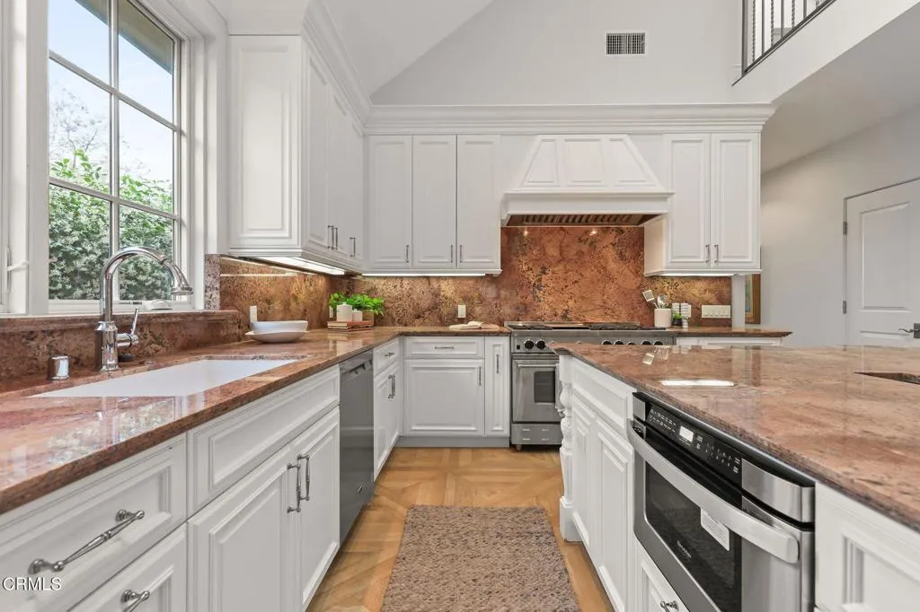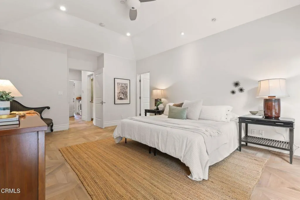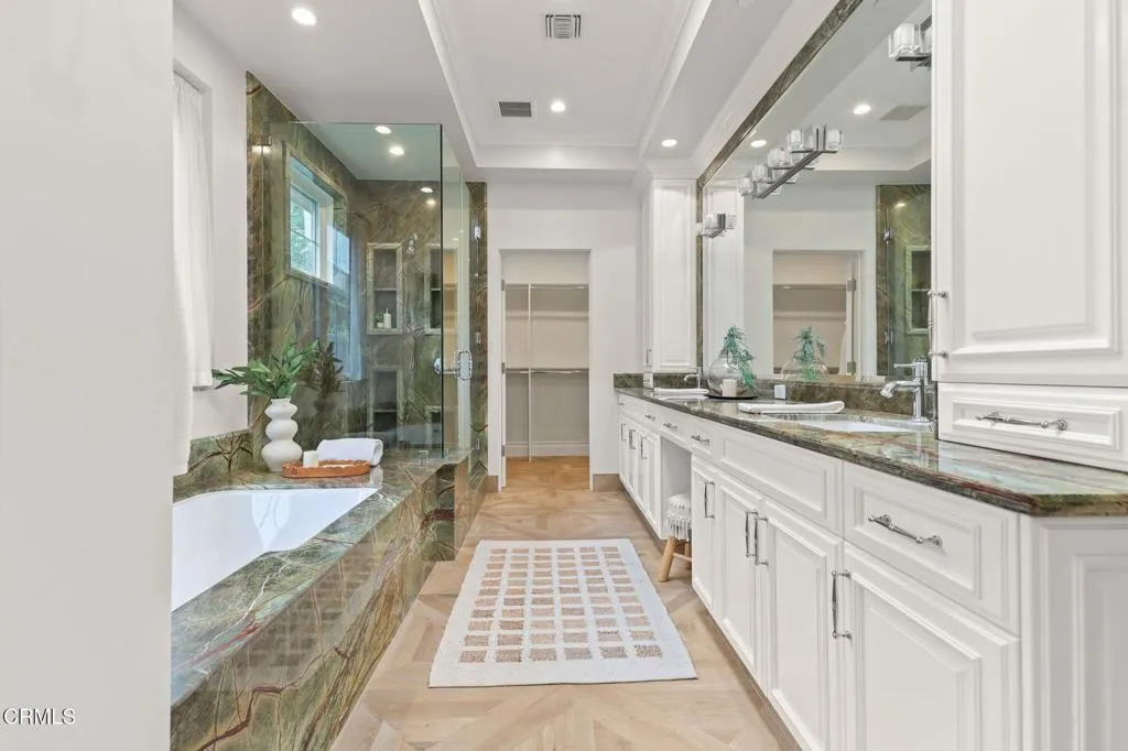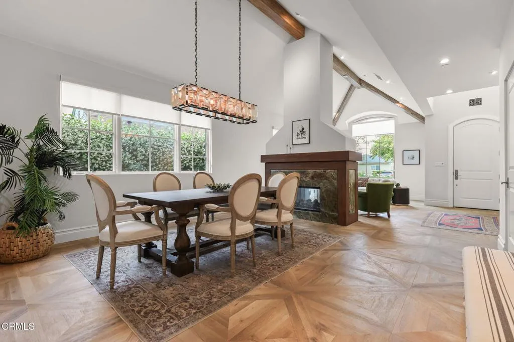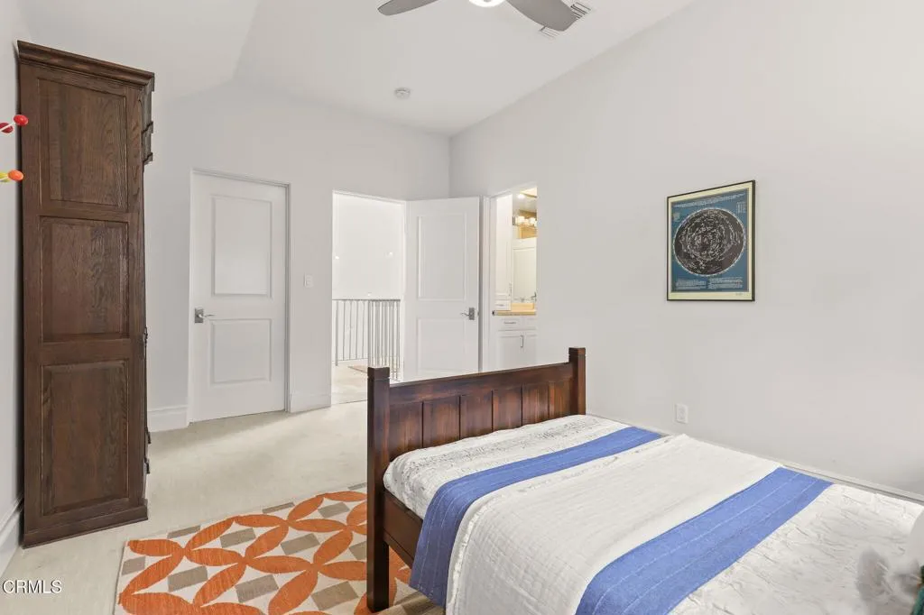 Custom built in 2014 and situated in one of the most sought-after communities in Burbank, this stunning upscale designer home blends modern luxury with thoughtful functionality. Designed with open space, vaulted ceilings, and an abundance of natural light, this home offers a comfortable and elegant floor plan ideal for today's lifestyle.Upon entry, you're welcomed by dramatic vaulted, beamed ceilings that lead into a formal living room featuring a striking double-sided onyx stone fireplace, expansive windows with custom blinds, and beautiful porcelain tile flooring. The spacious vaulted dining area flows seamlessly into a chef's kitchen, complete with a massive center island, high-end appliances including a 6-burner stove, and custom cabinetry--all opening to a bright family room. French doors provide easy access to a private backyard, perfect for indoor-outdoor living.The lower level features a luxurious primary suite with onyx stone dual vanities, 2 separate his-and-her walk-in closets, a soaking tub, and a standalone shower. Also on the main level is a versatile bonus room that can serve as a 5th bedroom or home office, a full secondary bathroom, and a convenient laundry room.Upstairs, you'll find three additional bedrooms, including a second primary suite with high ceilings, an en-suite bathroom featuring a dual vanity, and generous closet space. The remaining two bedrooms are connected by a Jack-and-Jill bathroom, offering both comfort and practicality.The private backyard is complemented by beautifully landscaped front and rear grounds, creating a serene outdoor setti