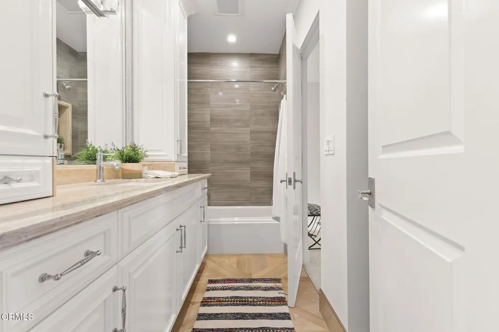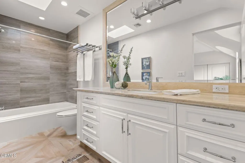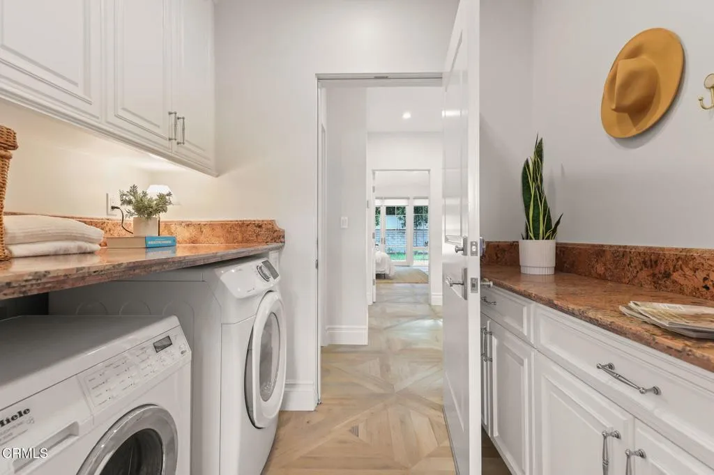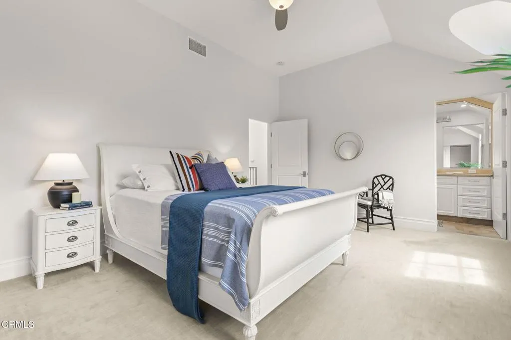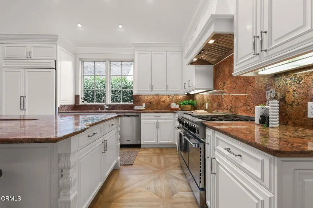 Custom built in 2014 and situated in one of the most sought-after communities in Burbank, this stunning upscale designer home blends modern luxury with thoughtful functionality. Designed with open space, vaulted ceilings, and an abundance of natural light, this home offers a comfortable and elegant floor plan ideal for today's lifestyle.Upon entry, you're welcomed by dramatic vaulted, beamed ceilings that lead into a formal living room featuring a striking double-sided onyx stone fireplace, expansive windows with custom blinds, and beautiful porcelain tile flooring. The spacious vaulted dining area flows seamlessly into a chef's kitchen, complete with a massive center island, high-end appliances including a 6-burner stove, and custom cabinetry--all opening to a bright family room. French doors provide easy access to a private backyard, perfect for indoor-outdoor living.The lower level features a luxurious primary suite with onyx stone dual vanities, 2 separate his-and-her walk-in closets, a soaking tub, and a standalone shower. Also on the main level is a versatile bonus room that can serve as a 5th bedroom or home office, a full secondary bathroom, and a convenient laundry room.Upstairs, you'll find three additional bedrooms, including a second primary suite with high ceilings, an en-suite bathroom featuring a dual vanity, and generous closet space. The remaining two bedrooms are connected by a Jack-and-Jill bathroom, offering both comfort and practicality.The private backyard is complemented by beautifully landscaped front and rear grounds, creating a serene outdoor setti