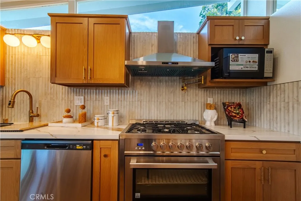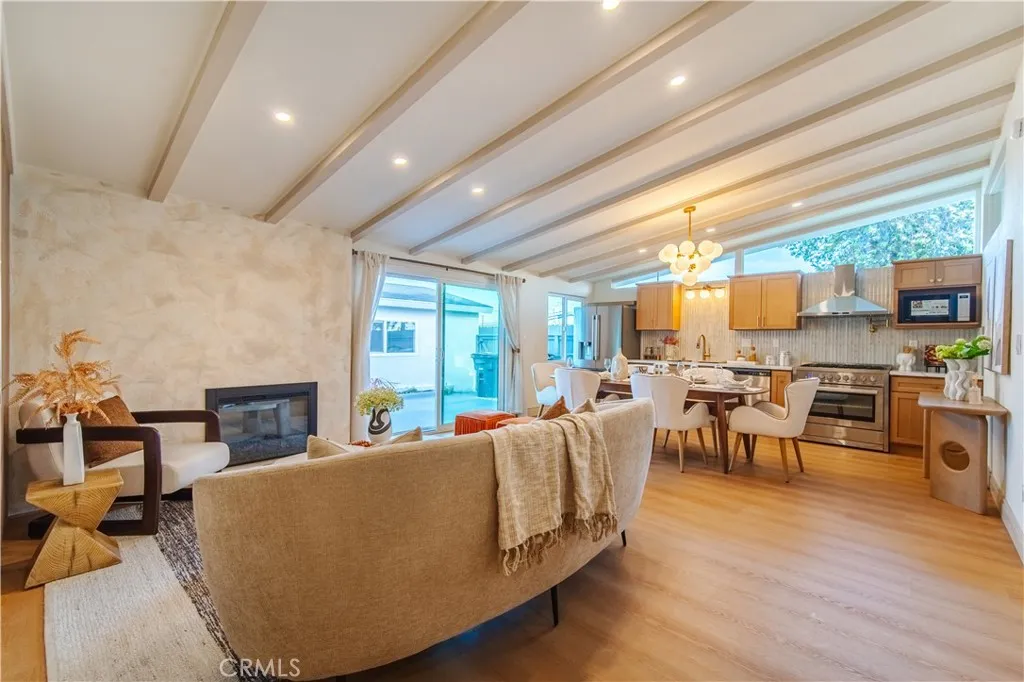 Welcome to this thoughtfully reimagined four bedroom, two bathroom corner-lot home, where quality craftsmanship meets a warm, modern soul. This isnt just a quick refresh; its a total transformation. Inside, the open layout shines with high ceilings and an artistic micro-cement fireplace, creating a cozy yet sophisticated "boutique" vibe. The kitchen is a chef's delight with solid wood cabinetry and all-brand-new appliances, while the private Primary Suite and Kohler-equipped bathrooms offer a daily touch of luxury. Outside, the oversized corner lot offers a beautifully landscaped private oasis, complete with fresh sod and a smart irrigation system. With a finished garage, a new independent laundry room, and full termite clearance already in place, this masterpiece offers the rare luxury of a stress-free transition. Located in a top-tier school district, this is the high-quality, low-maintenance sanctuary youve been waiting for.
