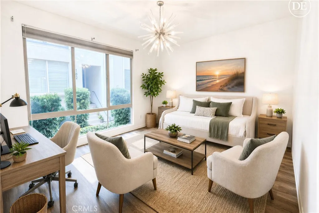 Welcome to the most adaptable floorplan in all of Three Sixty. The open layout not only offers 2 spacious, bright bedrooms but also features 2 den/office flex rooms to perfectly accommodate your needs and lifestyle. We've seen these 2 additional spaces used for everything from a playroom to a home office, a den, and even guest or kid spaces. All of this in the resort-like setting of Three Sixty, with amenities usually found in a luxury resort. 12921 Mission #102 is a turnkey retreat with a versatile floor plan and a quiet location, featuring central air and heat, a spacious balcony, and even a 3-car+ garage. Enter through the beautiful foyer with dramatic curved walls and staircase. The spacious front flex room offers oversized windows and can be used for anything from a formal dining area to an office/den to an additional guest space, and features wide-plank flooring, new paint, and dramatic lighting. Just beyond, you enter the open kitchen with high ceilings, dark cabinetry offering abundant storage, stainless steel appliances, quartz countertops, a pantry, and a spacious kitchen island with countertop seating that will be the center of daily living. The kitchen opens to the south-facing living room, capturing great natural light through picture windows. This beautiful room features high ceilings, recessed lighting, picture windows, wide-plank flooring, custom paint, and direct access to the outdoor patio, ideal for morning coffee and summer BBQs. Head upstairs to two beautiful suites, along with an additional office/den/family room, and the conveniently located laundry.