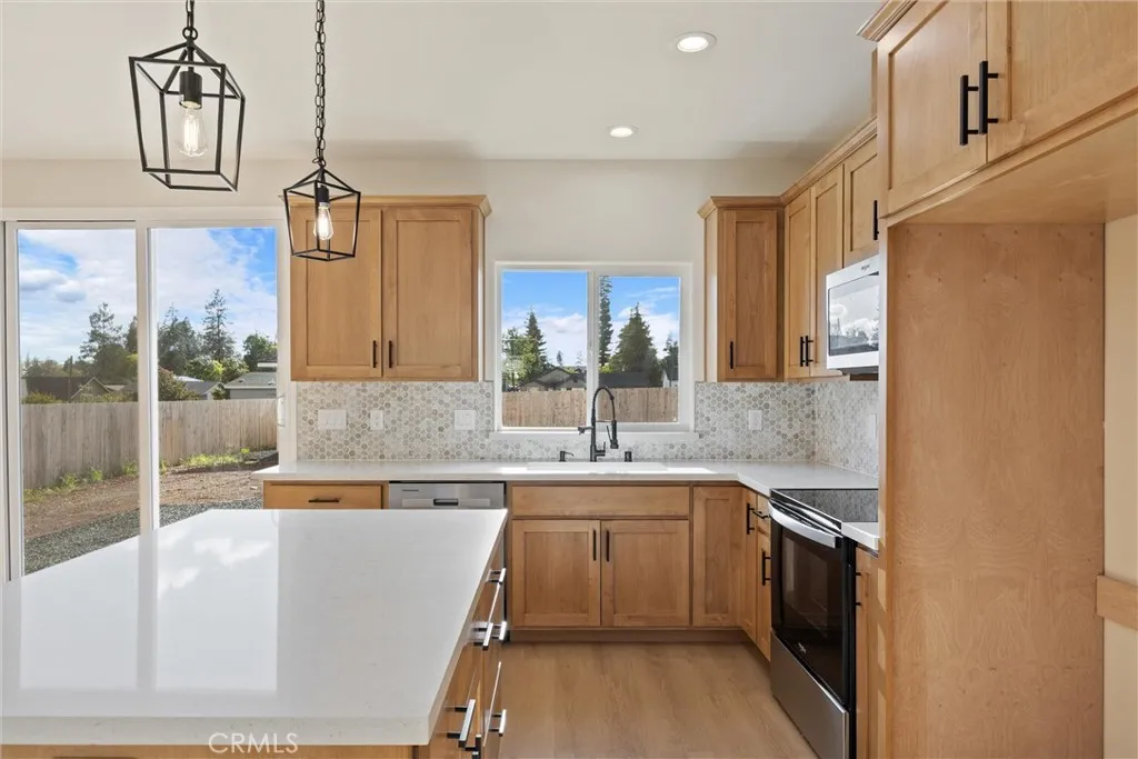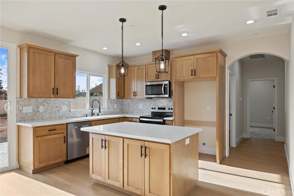 Welcome to Paradise Living! Step into fresh beginnings with this newly built home, just completed this month, thoughtfully designed with modern finishes and flexible spaces to fit todays lifestyle. Featuring 2 bedrooms, 2 bathrooms, plus a versatile bonus space that can easily serve as a home office or potential third bedroom, this home offers flexibility to meet your needs. The open floor plan creates a bright and comfortable flow between the living, dining, and kitchen areasperfect for everyday living or spending time with friends and family. The kitchen is a standout with quartz countertops, custom alder wood cabinets, stainless steel appliances, a dishwasher, and a center island with seating. The primary suite offers a relaxing retreat with an attached bath and walk-in shower. Throughout the home, youll find wood laminate flooring in the main living areas, carpet in the bedrooms, and custom tile in the bathrooms, giving a nice mix of comfort and durability. Owned solar is already in place, helping with energy efficiency and keeping utility costs down, along with a newly installed septic system and leach field for added peace of mind. Outside, youll find a stamped concrete driveway and a small patio area, while the backyard is a blank slate ready for your ideaswhether youre thinking garden, lawn, or outdoor hangout space. The detached shed with power adds extra storage, along with RV parking for added convenience. Located in an area seeing continued growth with newer homes, this property offers a welcoming neighborhood feel while still enjoying the peaceful charm Paradis