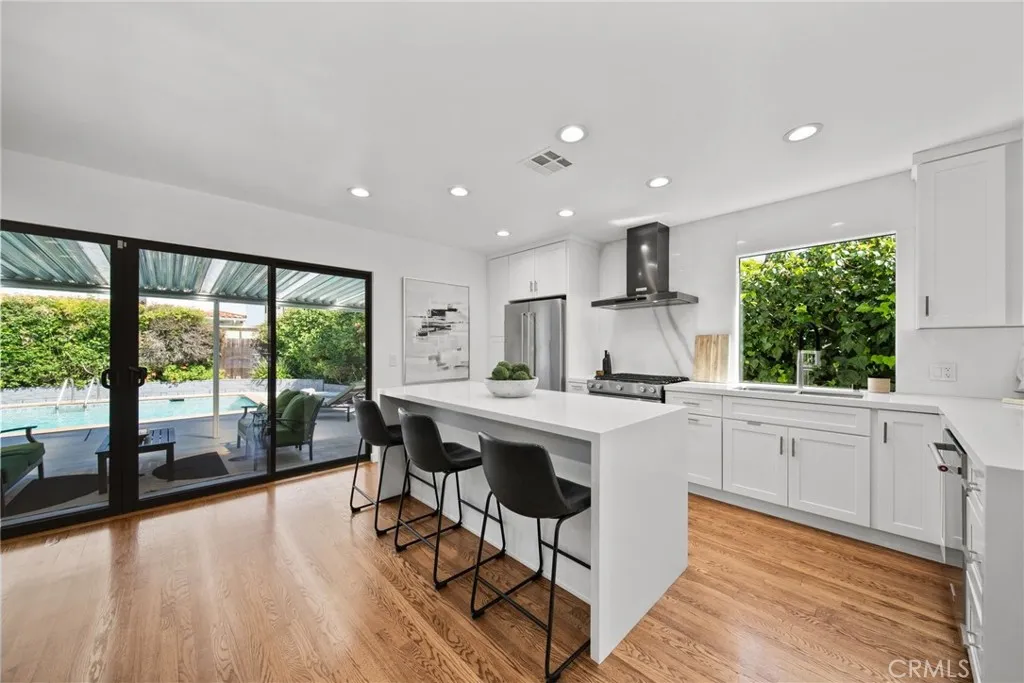 Welcome to this sleek, updated mid-century pool home in Valley Glen, designed for the best of indoor-outdoor California living. The bright, open living room is filled with natural light and flows beautifully into the open-concept kitchen and airy dining area. Modern double-pane black sliders frame views of the backyard and create a seamless connection to the sparkling pool, covered patio, and outdoor entertaining spacesperfect for relaxed everyday living, intimate dinners, or larger gatherings under the stars. The home offers three well-sized bedrooms, including a peaceful primary suite with lovely views of the pool and lush greenery, a beautifully updated bath, and a walk-in closet. And just when you think youve seen it all, the finished garage offers a phenomenal flex space with a mini-split climate control system, large double-pane window, special enamel floor coating, and attractive storage racks to keep everything organized. Whether used as a gym, office, creative studio, or bonus hangout space, it adds incredible versatility to the home. Perfectly located near NoHo West, Trader Joes, LA Fitness, restaurants, local cafs, parks, and major freeways, this home offers the ideal balance of tranquility, style, and convenience. Come see the home youve been looking for before someone else makes it theirs.