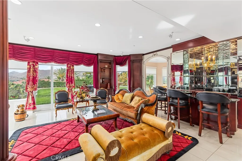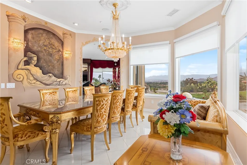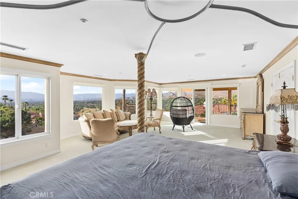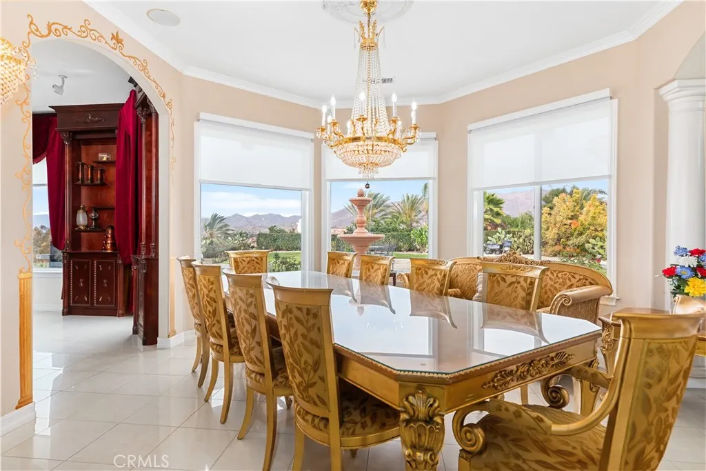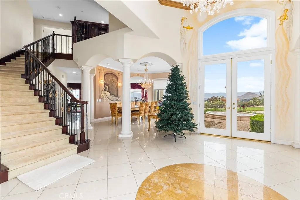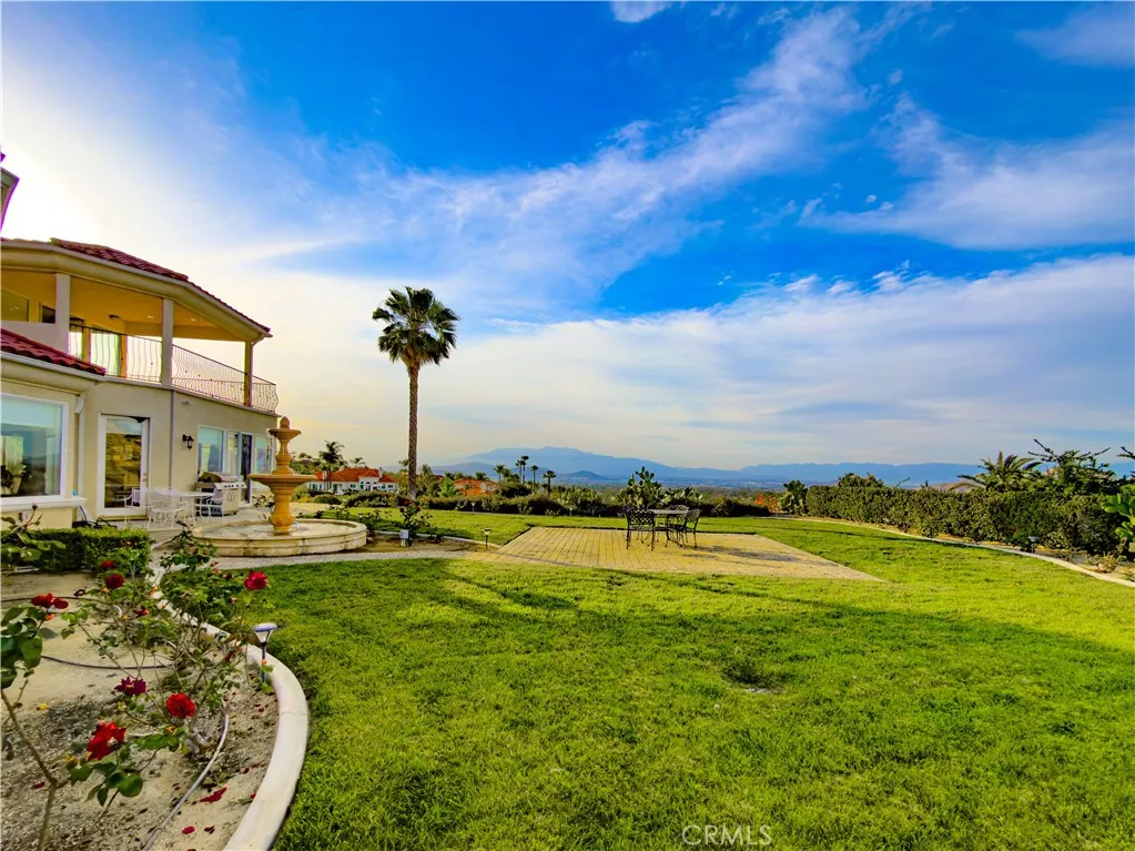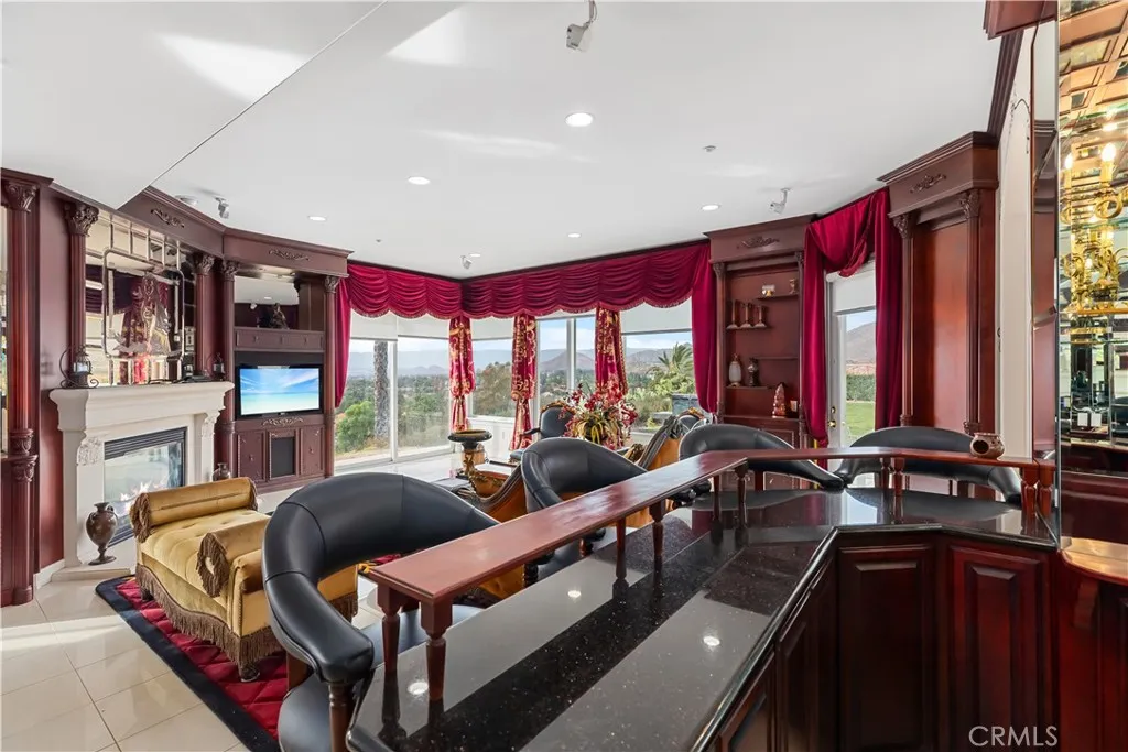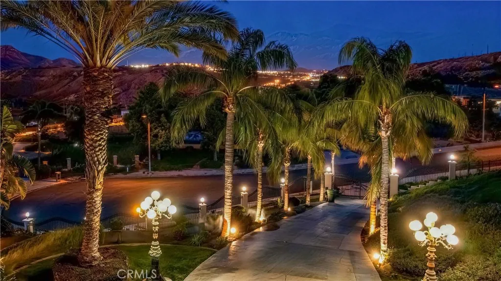 Welcome to this highly sought-after, exquisite Mediterranean home situated on 1.8 acres in the Canyon Crest Estates/Country Club area. Designed for those who appreciate both elegance and comfort, this property offers sweeping views of city lights, hills, and mountains from the kitchen, family room, dining room, living room, master bedroom, and the oversized balcony off the master suitean ideal spot to enjoy panoramic scenery day or night. The thoughtfully crafted floor plan features soaring ceilings and abundant windows that flood the interior with natural sunlight and showcase breathtaking vistas. Two oversized 2-car garages feature ample built-in cabinetry for storage, providing both convenience and organization. The home has undergone a luxury remodel, boasting custom cherry wood cabinetry throughout, premium granite countertops, contemporary upscale lighting, and a state-of-the-art Bose stereo system integrated in every room. Included in the sale is a full set of premium furnishings: a formal dining set, plush living room seating, master suite furniture, high-end appliances, select artwork, and tasteful dcor, ensuring a truly turnkey experience. Step outside to enjoy pristine, lush landscaping, complemented by custom-designed water fountains in both the front and rear yards. Strategically placed spotlights along the driveway and throughout the grounds create a captivating ambiance, transforming the property into a nighttime paradise. The entire estate is securely fenced and accessed via an automatic private gate for peace of mind and exclusivity. Ideally located just st