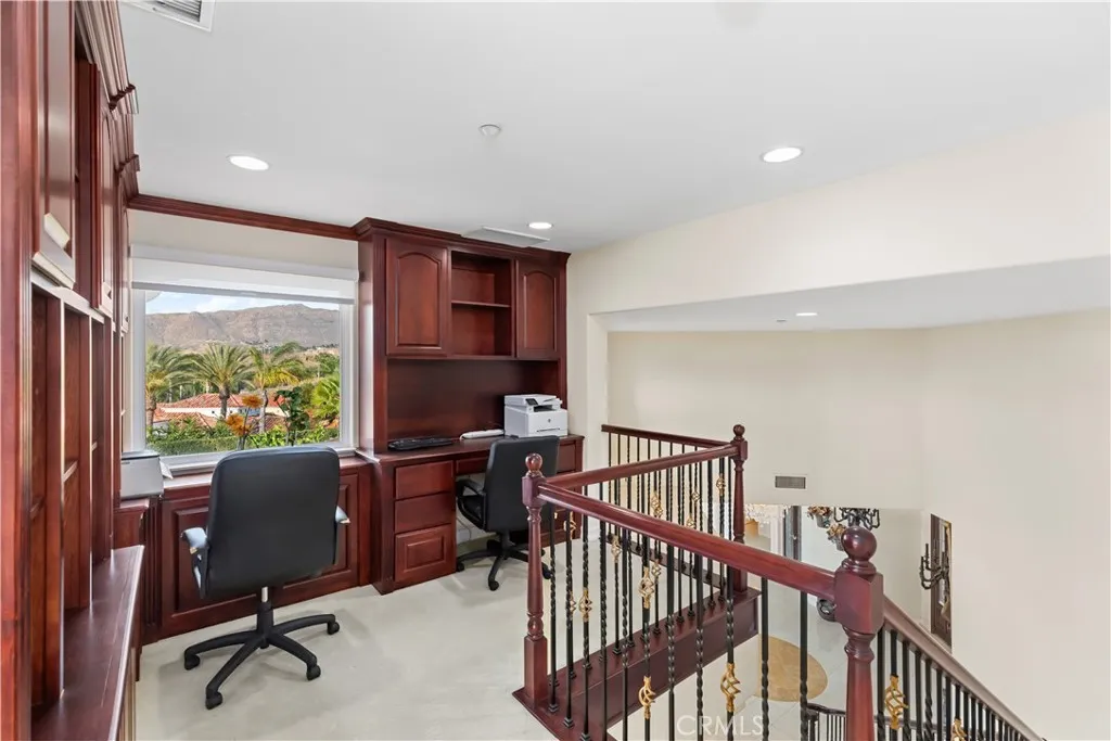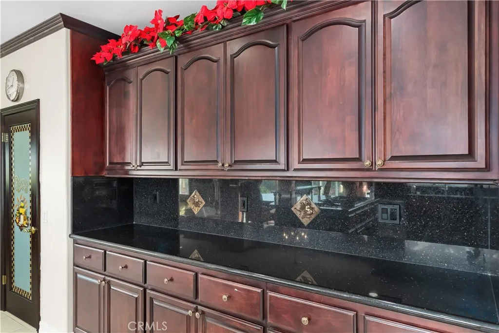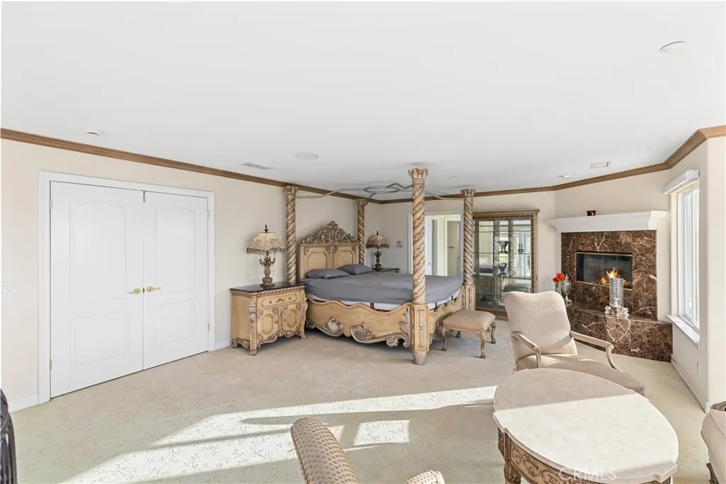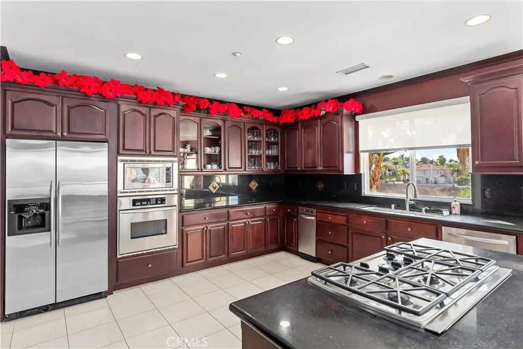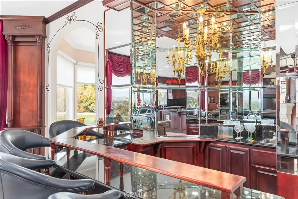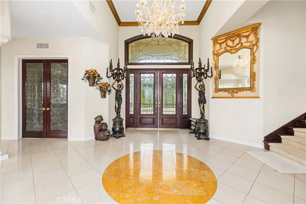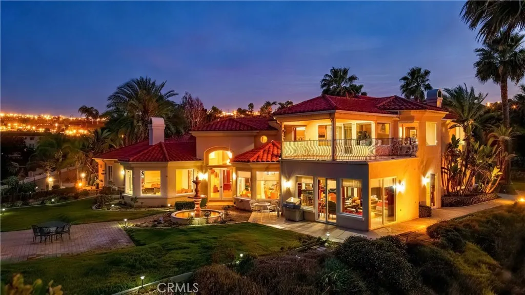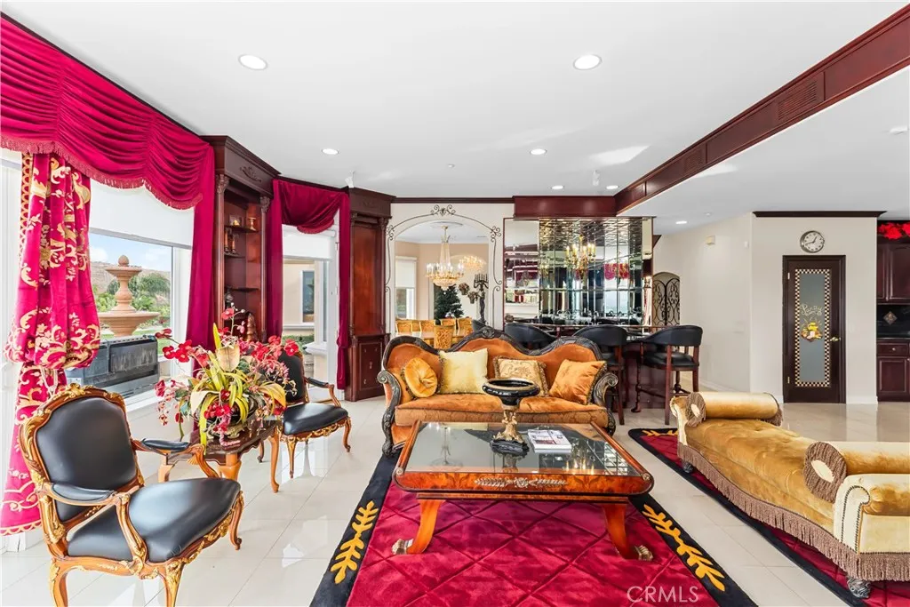 Welcome to this highly sought-after, exquisite Mediterranean home situated on 1.8 acres in the Canyon Crest Estates/Country Club area. Designed for those who appreciate both elegance and comfort, this property offers sweeping views of city lights, hills, and mountains from the kitchen, family room, dining room, living room, master bedroom, and the oversized balcony off the master suitean ideal spot to enjoy panoramic scenery day or night. The thoughtfully crafted floor plan features soaring ceilings and abundant windows that flood the interior with natural sunlight and showcase breathtaking vistas. Two oversized 2-car garages feature ample built-in cabinetry for storage, providing both convenience and organization. The home has undergone a luxury remodel, boasting custom cherry wood cabinetry throughout, premium granite countertops, contemporary upscale lighting, and a state-of-the-art Bose stereo system integrated in every room. Included in the sale is a full set of premium furnishings: a formal dining set, plush living room seating, master suite furniture, high-end appliances, select artwork, and tasteful dcor, ensuring a truly turnkey experience. Step outside to enjoy pristine, lush landscaping, complemented by custom-designed water fountains in both the front and rear yards. Strategically placed spotlights along the driveway and throughout the grounds create a captivating ambiance, transforming the property into a nighttime paradise. The entire estate is securely fenced and accessed via an automatic private gate for peace of mind and exclusivity. Ideally located just st