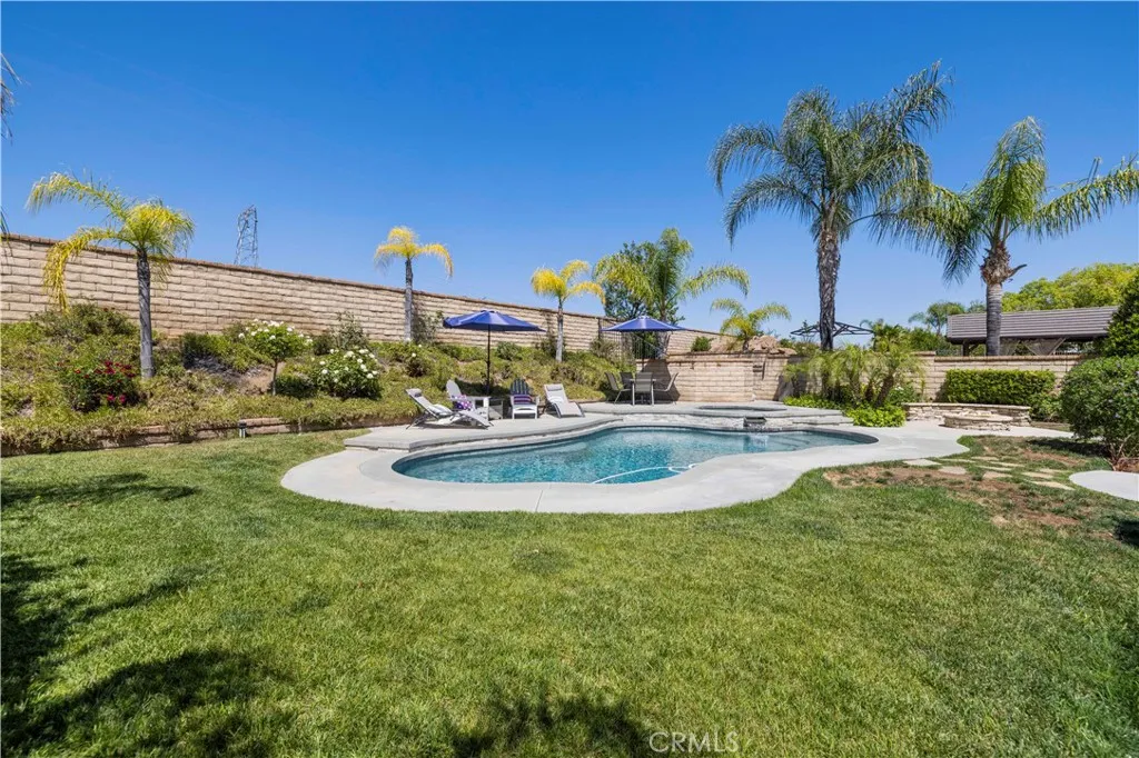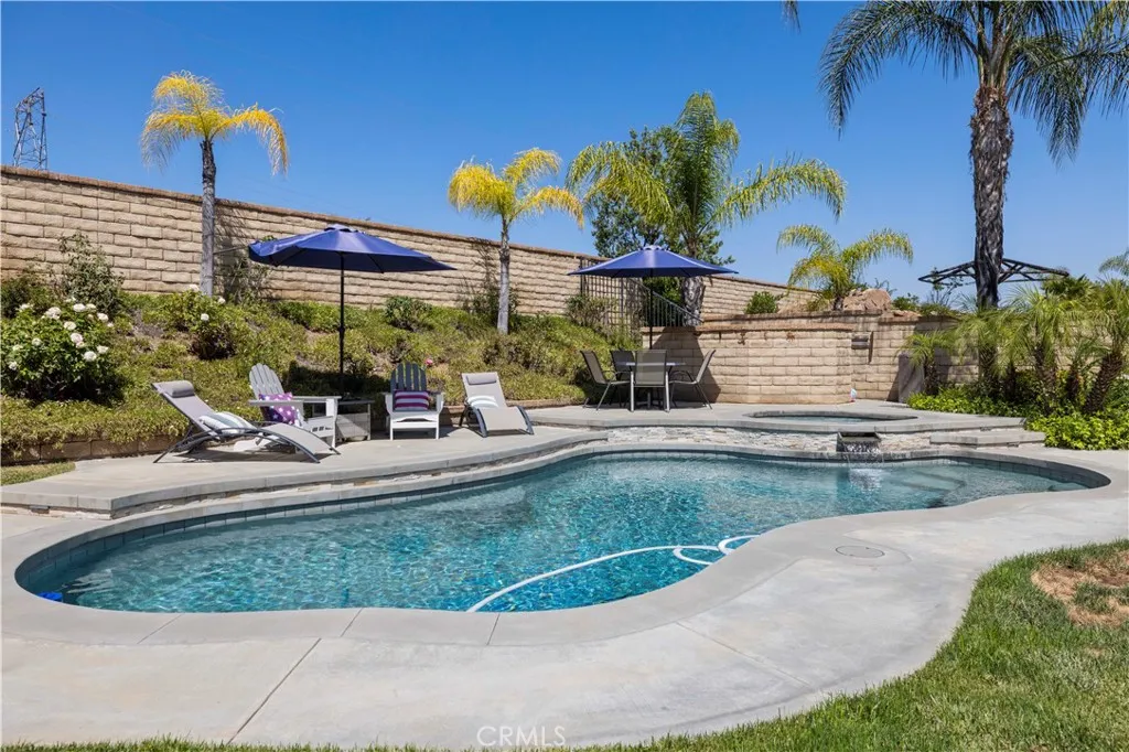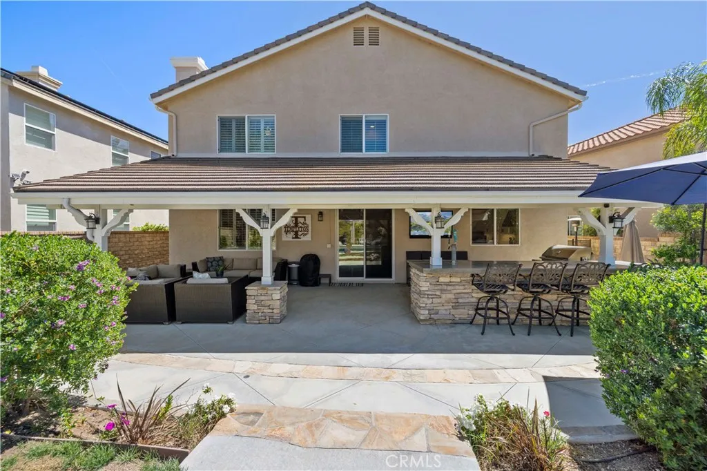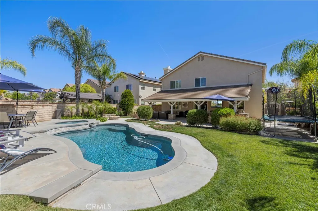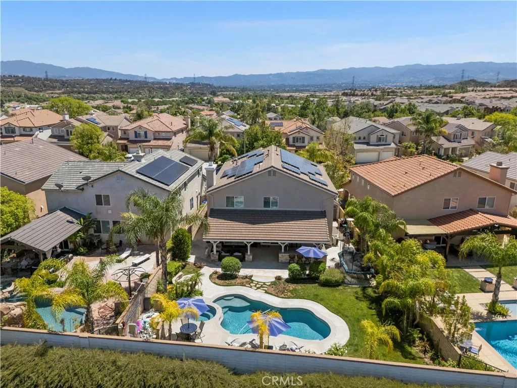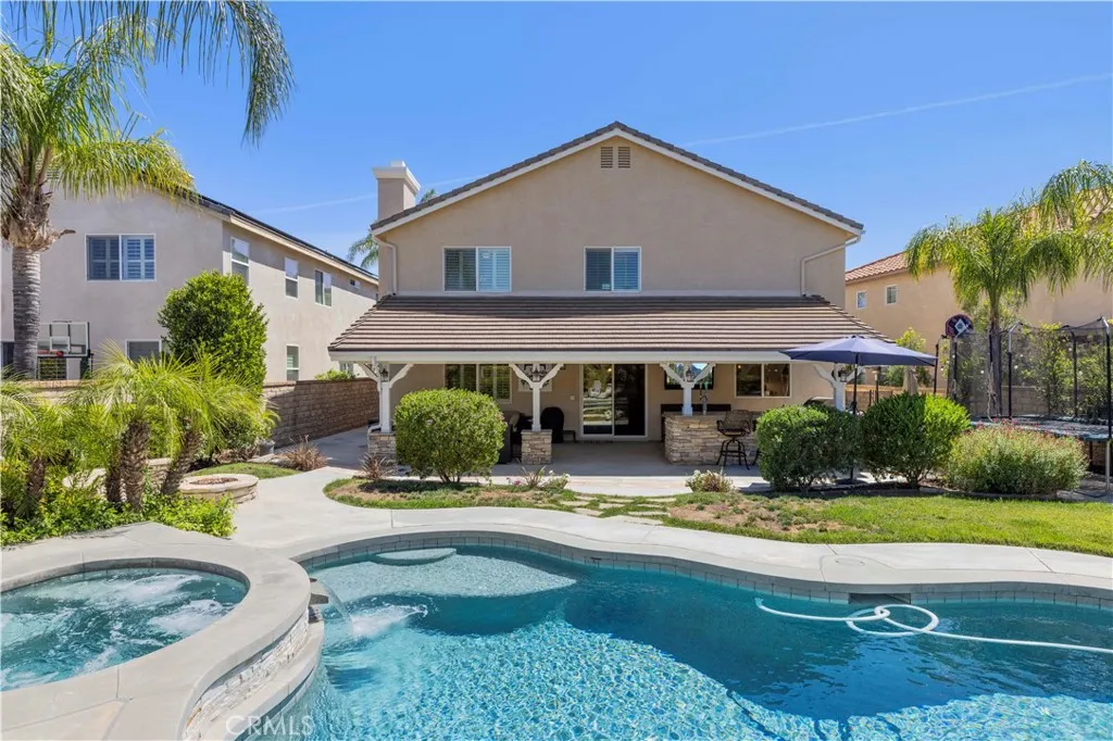 Welcome to this stunning, move-in ready Tesoro del Valle home, where everyday living feels like a getaway in one of Valencias most sought-after communities! With owned solar and a Tesla wall connector, youll enjoy year-round comfort and energy efficiency in this beautiful pool home. Step inside to soaring ceilings, abundant natural light, and durable wood-like flooring that sets a warm, modern tone. The formal living room makes a statement with a custom wood-plank feature wall and built-in uplighting, while the open layout flows seamlessly into the dining area, family room, and kitchen. Thoughtful upgrades include recessed lighting, plantation shutters, and crown molding. At the heart of the home is a bright chefs kitchen featuring crisp white shaker cabinetry, an oversized waterfall-edge quartz island, stainless steel appliances, plus full-height herringbone tile backsplash. Stylish pendant lights, abundant storage, and easy indoor-outdoor flow make this space perfect for everyday living and entertaining! The family room is cozy and inviting with a fireplace and custom built-ins, and the main-floor bedroom and full bath offer ideal flexibility for guests, multigenerational living, or a home office. Convenient indoor laundry room completes the main level. Upstairs, the spacious primary suite feels like its own retreat with an elegant tray ceiling and retreat with fireplace. The spa-inspired bath offers dual vanities, a soaking tub, and a generous walk-in closet. A loft overlooks the main living spaces, and the secondary bedrooms are well-appointed, with a full bath with dua