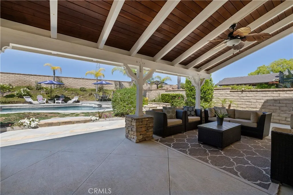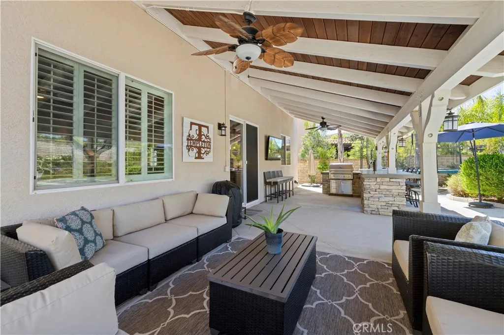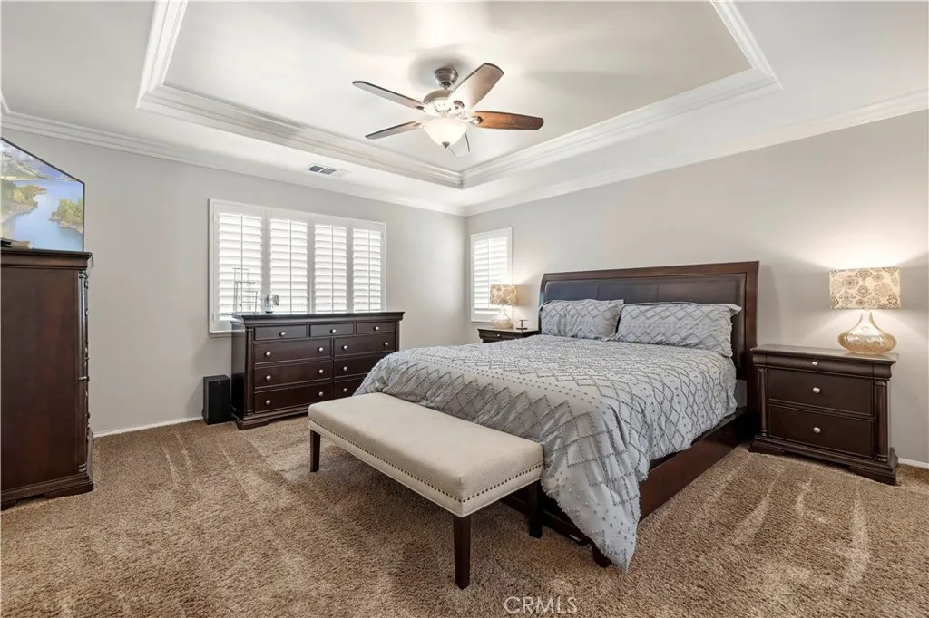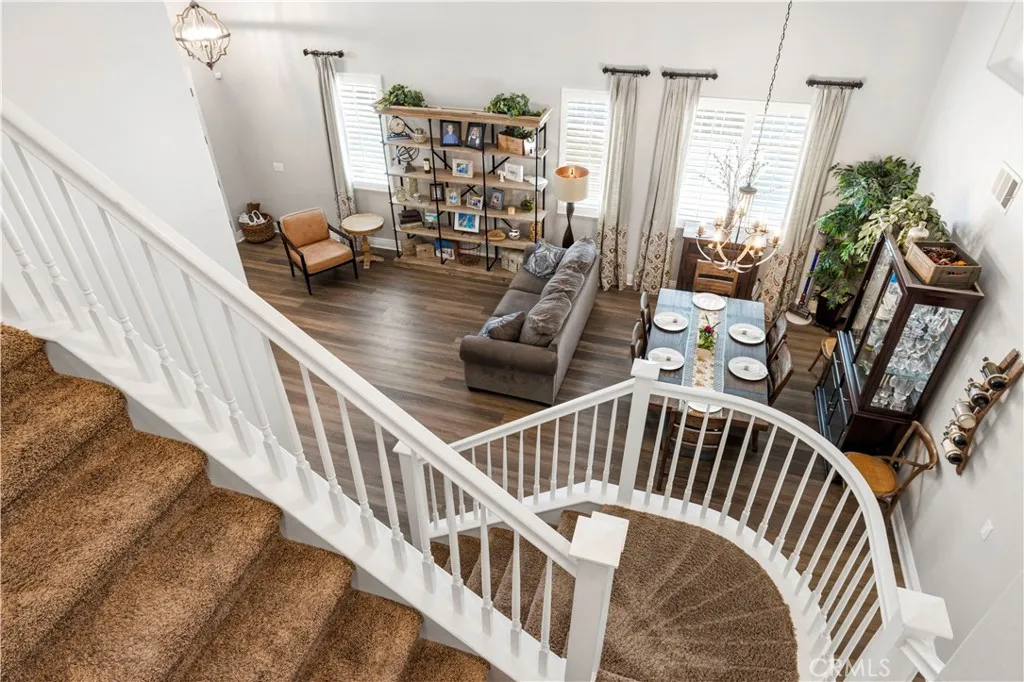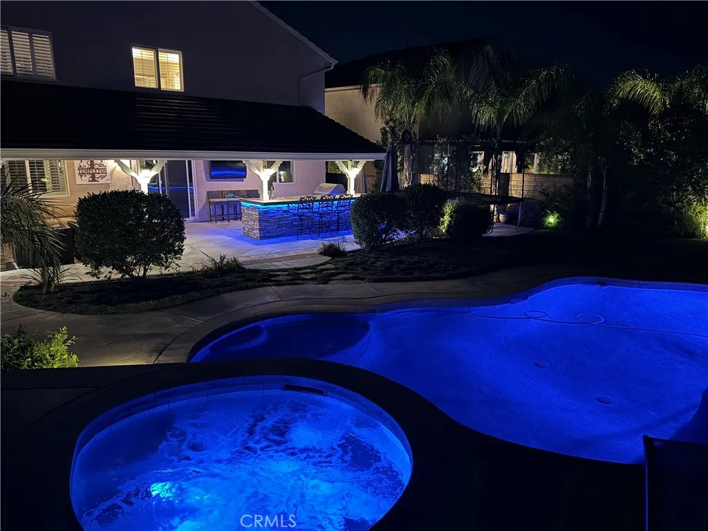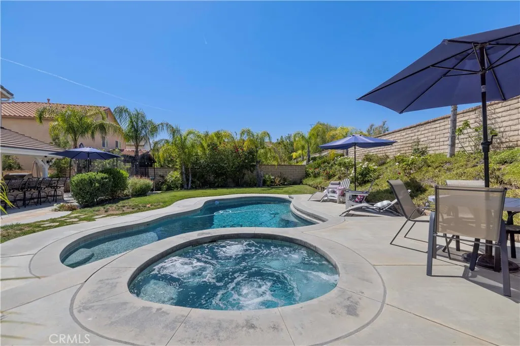 Welcome to this stunning, move-in ready Tesoro del Valle home, where everyday living feels like a getaway in one of Valencias most sought-after communities! With owned solar and a Tesla wall connector, youll enjoy year-round comfort and energy efficiency in this beautiful pool home. Step inside to soaring ceilings, abundant natural light, and durable wood-like flooring that sets a warm, modern tone. The formal living room makes a statement with a custom wood-plank feature wall and built-in uplighting, while the open layout flows seamlessly into the dining area, family room, and kitchen. Thoughtful upgrades include recessed lighting, plantation shutters, and crown molding. At the heart of the home is a bright chefs kitchen featuring crisp white shaker cabinetry, an oversized waterfall-edge quartz island, stainless steel appliances, plus full-height herringbone tile backsplash. Stylish pendant lights, abundant storage, and easy indoor-outdoor flow make this space perfect for everyday living and entertaining! The family room is cozy and inviting with a fireplace and custom built-ins, and the main-floor bedroom and full bath offer ideal flexibility for guests, multigenerational living, or a home office. Convenient indoor laundry room completes the main level. Upstairs, the spacious primary suite feels like its own retreat with an elegant tray ceiling and retreat with fireplace. The spa-inspired bath offers dual vanities, a soaking tub, and a generous walk-in closet. A loft overlooks the main living spaces, and the secondary bedrooms are well-appointed, with a full bath with dua