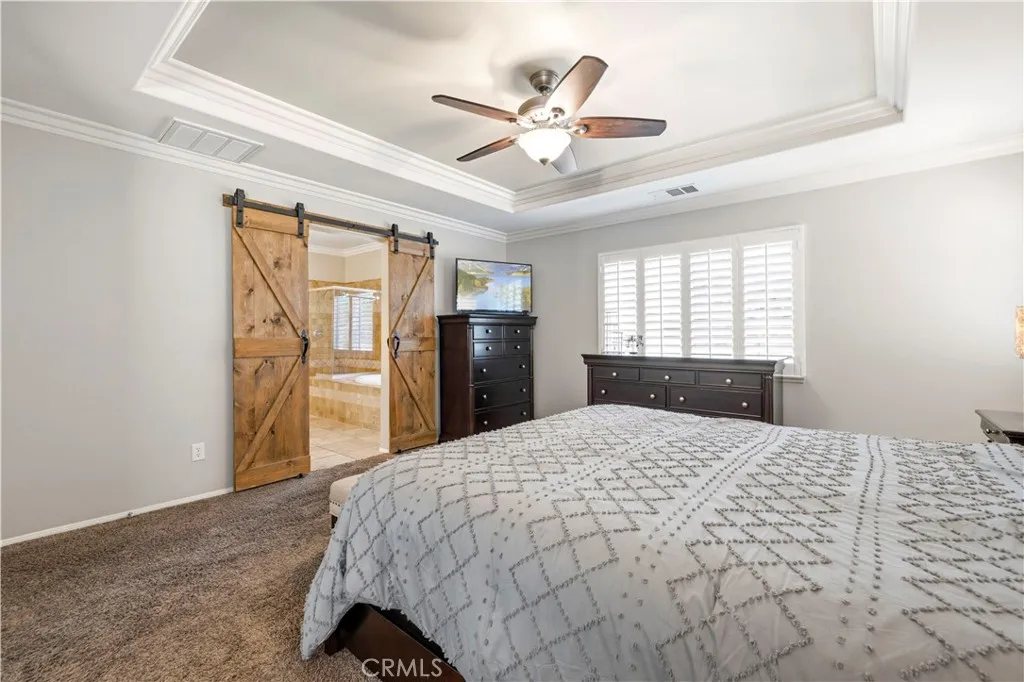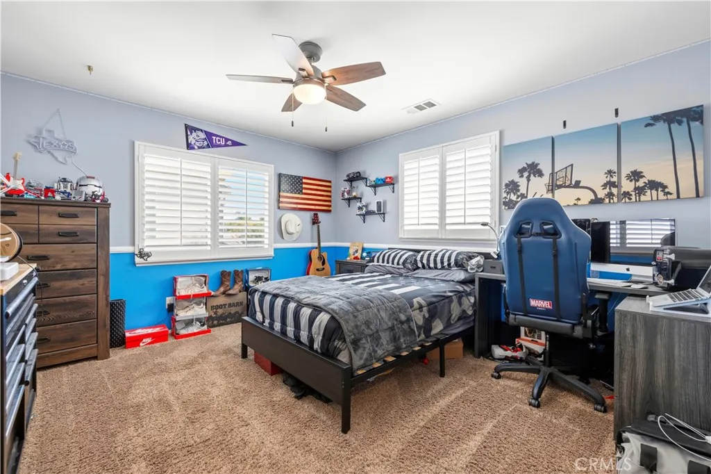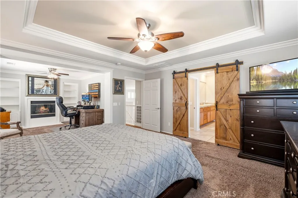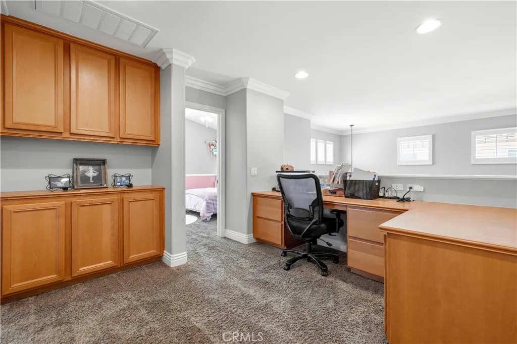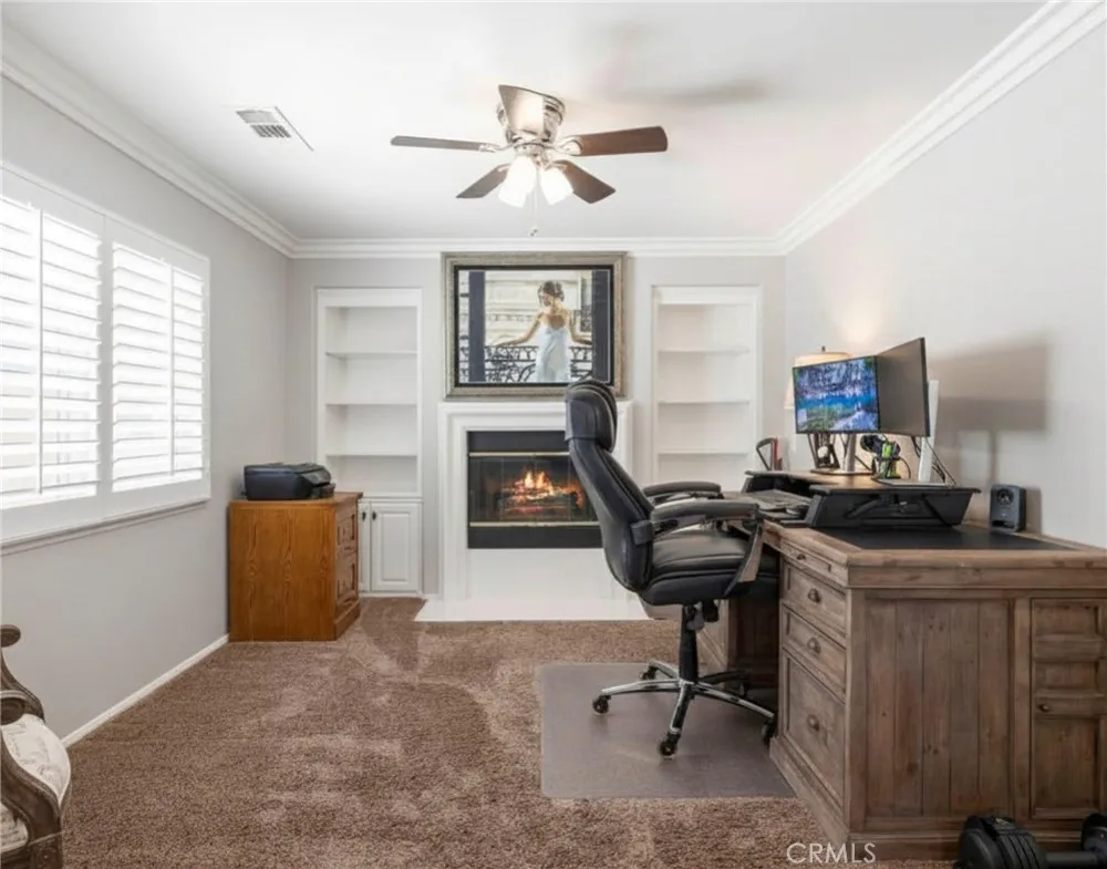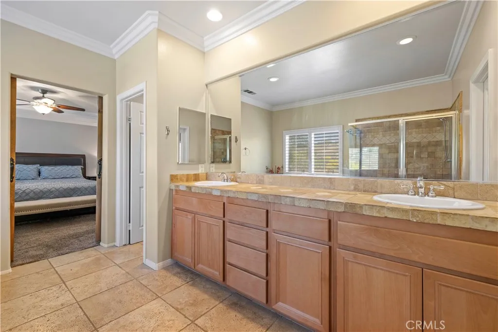 Welcome to this stunning, move-in ready Tesoro del Valle home, where everyday living feels like a getaway in one of Valencias most sought-after communities! With owned solar and a Tesla wall connector, youll enjoy year-round comfort and energy efficiency in this beautiful pool home. Step inside to soaring ceilings, abundant natural light, and durable wood-like flooring that sets a warm, modern tone. The formal living room makes a statement with a custom wood-plank feature wall and built-in uplighting, while the open layout flows seamlessly into the dining area, family room, and kitchen. Thoughtful upgrades include recessed lighting, plantation shutters, and crown molding. At the heart of the home is a bright chefs kitchen featuring crisp white shaker cabinetry, an oversized waterfall-edge quartz island, stainless steel appliances, plus full-height herringbone tile backsplash. Stylish pendant lights, abundant storage, and easy indoor-outdoor flow make this space perfect for everyday living and entertaining! The family room is cozy and inviting with a fireplace and custom built-ins, and the main-floor bedroom and full bath offer ideal flexibility for guests, multigenerational living, or a home office. Convenient indoor laundry room completes the main level. Upstairs, the spacious primary suite feels like its own retreat with an elegant tray ceiling and retreat with fireplace. The spa-inspired bath offers dual vanities, a soaking tub, and a generous walk-in closet. A loft overlooks the main living spaces, and the secondary bedrooms are well-appointed, with a full bath with dua