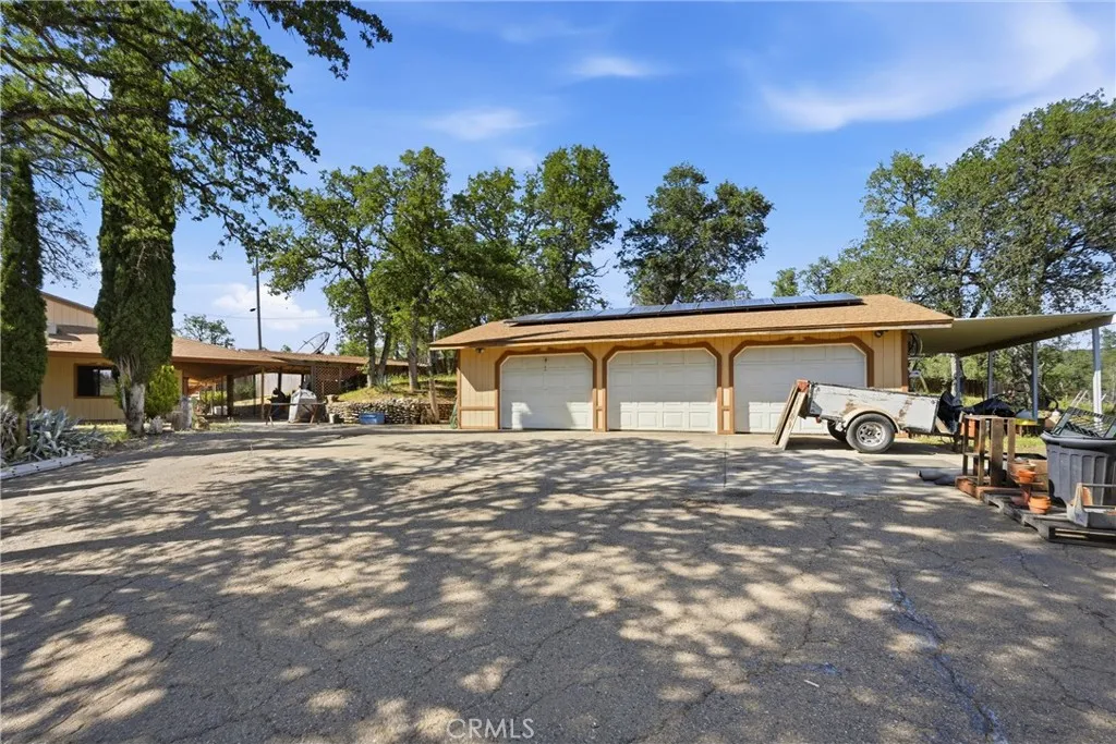 Custom Country Retreat on 2.5 acres. Discover the charm and comfort of this custom-built 3 bedroom, 2 bath home offering approximately 1500 sqft of thoughtful living space on 2.5 acres. Front of property has detached RV/fifth wheel covered area , also plenty of flat area for adding barn or animals. Wrap yourself in the warmth of the 10-foot covered porch that surrounds the entire home - perfect for morning coffee or evening relaxation in every season. Inside, the inviting living room features a corner pellet stove, keeping you cozy through the winter months. Main living areas are finished with easy-care tile flooring and the kitchen is well appointment with a stove, microwave hood and dishwasher. Barn door with walk in pantry in kitchen. Custom claw foot tub with touches in primary bathroom. Seamless indoor-outdoor flow is crated by dual sliding doors off the dining area and kitchen , leading directly to the above ground pool and deck. Ideal set up for summer entertaining or quiet evenings under the stars. The detached 3 car garage offers exceptional storage and workshop options. Whether you're looking for room to roam, space for your hobbies, animals or simply a peaceful place to call home, this property delivers. Home includes 10 solar panels .
