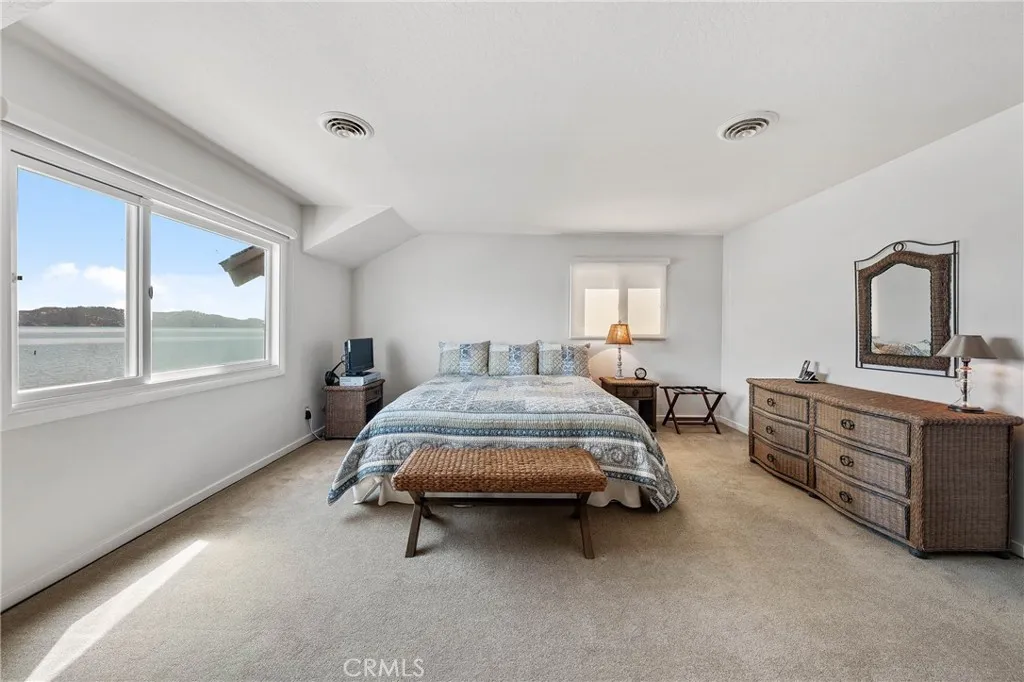 Beautiful Buckingham LAKEFRONT Retreat Private End-of-the-Road Location !!! Nestled in one of Lake Countys most desirable areas, this spacious 4-bedroom, 3-bath lakefront home offers stunning views of the LAKE AND MOUNTAINS and offers exceptional privacy at the quiet end of the road. The family-style, eat-in kitchen, open concept dining room, and inviting living room with a fireplace provide the perfect setting for gatherings. A wall of glass windows frame sparkling LAKE views, while upgraded window coverings add style and comfort. One bedroom is conveniently located downstairs, with three more bedroom upstairs, each filled with natural light. The main-level bathroom has been recently remodeled with tasteful finishes. Interior upgrades include a dual-level energy efficient AC/Heating system and a new water heater, premium double pane windows/sliding glass doors. Exterior has significant upgrades, including a replaced roof, durable stucco finish for long lasting beauty and very low-maintenance grounds. Expansive outdoor areas are ideal for BBQs, entertaining, or simply relaxing by the LAKE. An extra-large , fully lit 10' x 80' pier leads to a deluxe boat dock facility featuring two covered boat lifts with steel pile supports, individual electric lifts with remote controls, plus an independently operated jet ski lift. A two-car attached garage offers ample storage, with additional outdoor space for parking boats and lake toys completes the package. Low cost HOA fees include access to the clubhouse, boat launch, private marina, golf course. This home offers comfort, modern up