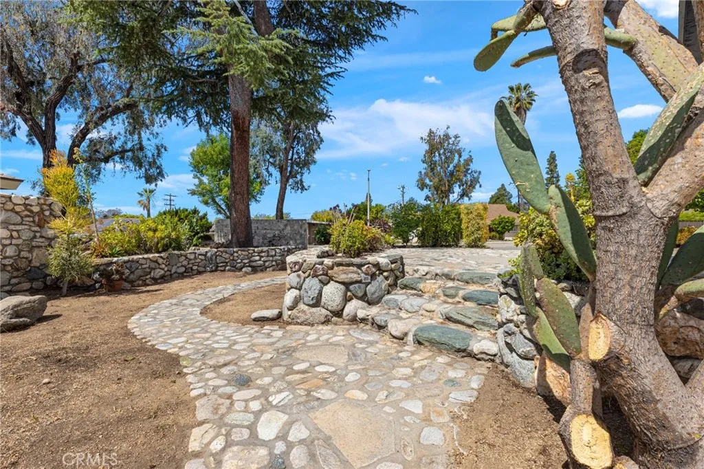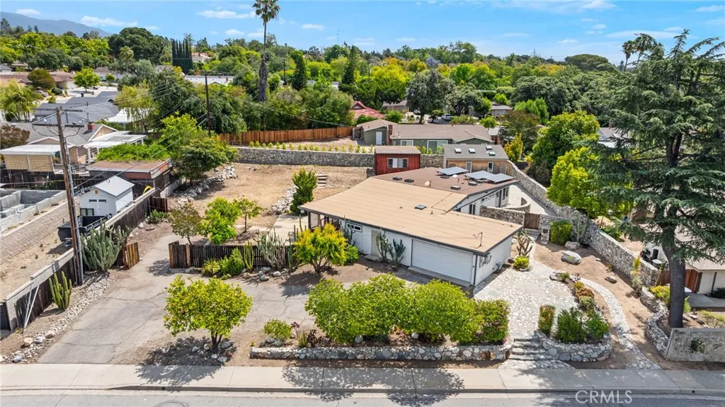 Stunning Contemporary home with Magnificent Ceilings and Beautiful Hand Restored Beams, set on a Very Large Lot. Several outer Structures complete this truly unique property. Sunlight fills the rooms of this home and creates a warm and inviting atmosphere. New Electrical wiring, LED & Recessed lighting, NEST Heat & Air, new ducts, Newer Roof, 3.5 KW Solar panels all paid no lease, windows, New beautiful, remodeled bathrooms. Skylights in many rooms. The property invites imagination, a canvas ready for floorings, paint etc. It is a tranquil sanctuary surrounded by nature. Amazing rock walls and rock features that surround the property. Two car garage that could possibly accommodate 3 cars or a large workshop. Space is there and ready for a dream kitchen. So many windows and views from all into private outdoor spaces. Two outside structures, one another workshop or storage. The other could be possibly completed as a ADU or extra office. Many Fruit trees, Pomegranate, Lemon, Grapefruit and Prickly Pear. Very close to Elementary school and Claremont Colleges. So many possibilities!