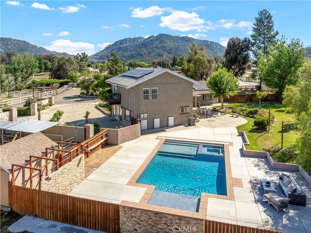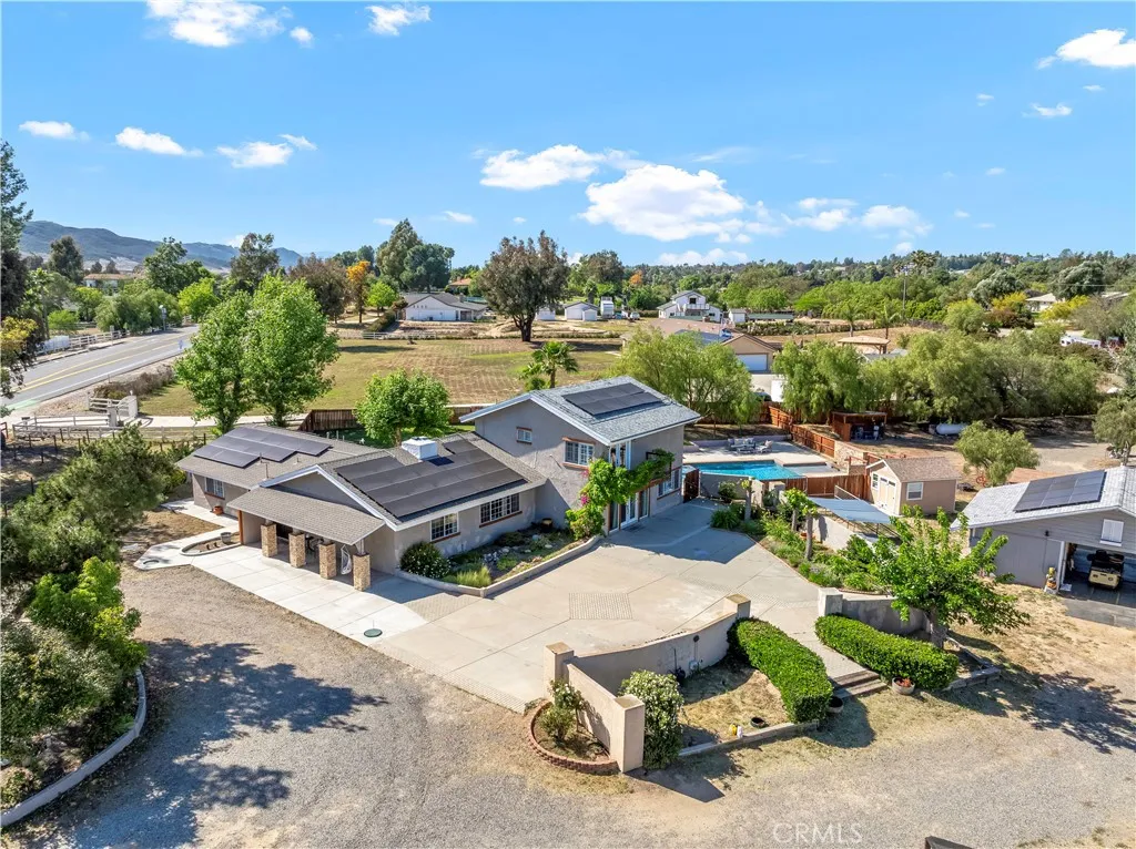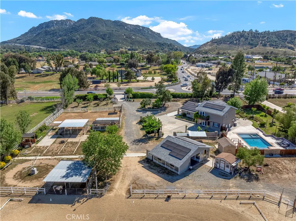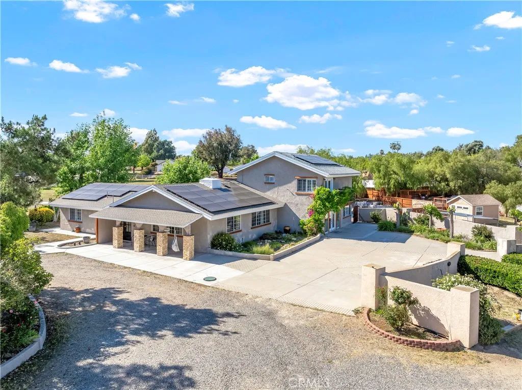 Bring the horses, the toys, and your lifestyle dreams to this one-of-a-kind equestrian estate in the highly sought-after Los Ranchitos community! Ideally located in the heart of town with close proximity to the freeway, shopping, dining, and everyday conveniences, this rare 2.25-acre property offers the perfect blend of rural living and modern accessibility. Designed with the horse enthusiast in mind, the property is 100% flat, usable, fully fenced, and thoughtfully equipped with premium equestrian amenities including a gated entry, white PVC fencing, a 4-stall breezeway barn with pipe corral turnouts, tack room, large riding arena, hot walker, wash rack, cross-ties, and multiple additional corrals and pastures. Barn stalls feature automated water feeders and fly spray systems for added convenience. There are also two additional tack/storage units, trailer/RV parking, and a circular driveway for easy access. The charming Southwestern-style home spans approximately 3,165 sq ft and features 3 bedrooms, 3 bathrooms, and an open-concept floor plan with vaulted wood-beamed ceilings and warm, neutral tones throughout. The spacious primary suite offers French doors leading to a private balcony, two oversized walk-in closets, and a luxurious bathroom with dual sinks and a jetted soaking tub. The country-style kitchen is full of character with brick accents, white custom cabinetry, breakfast bar seating, and a custom grill, opening to multiple living spaces including a family room, dining area, office/den, and a cozy living room with a brick fireplace. Step outside to your private o