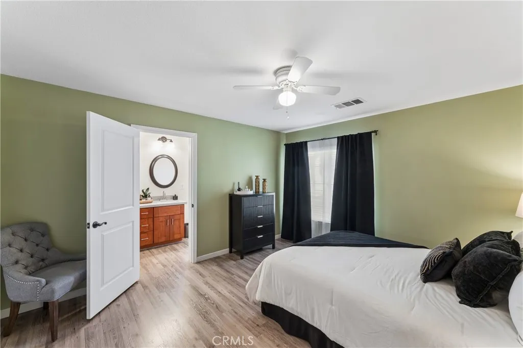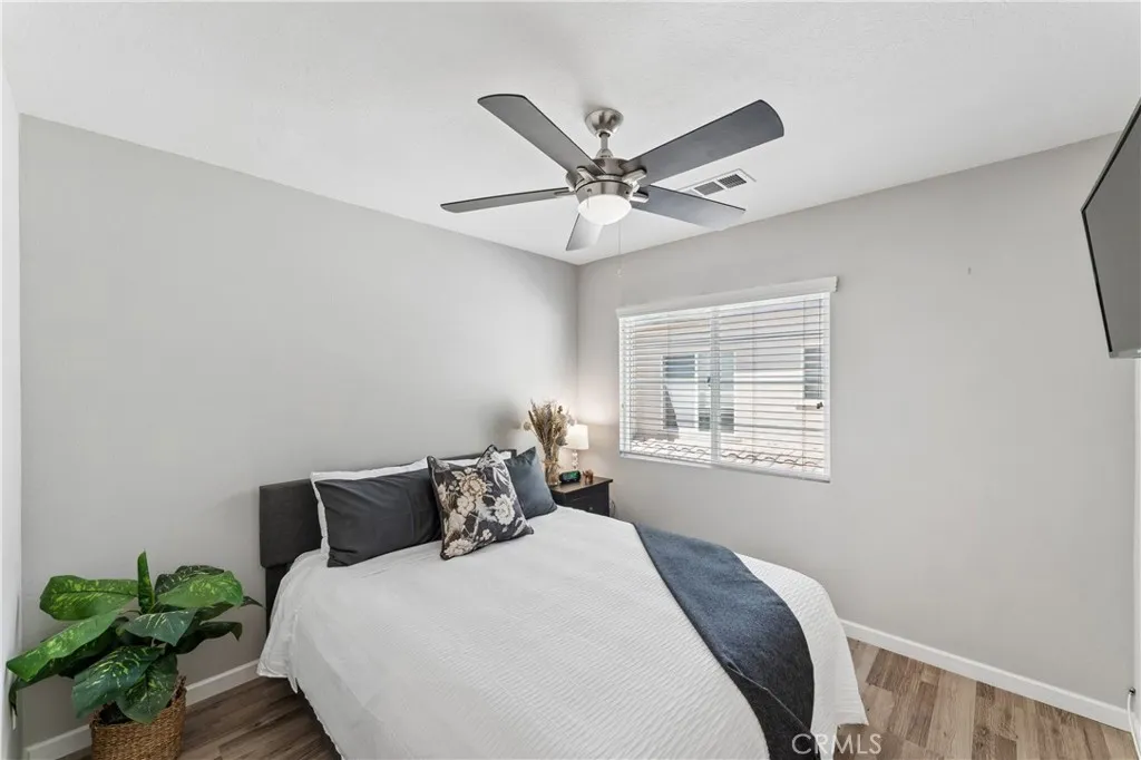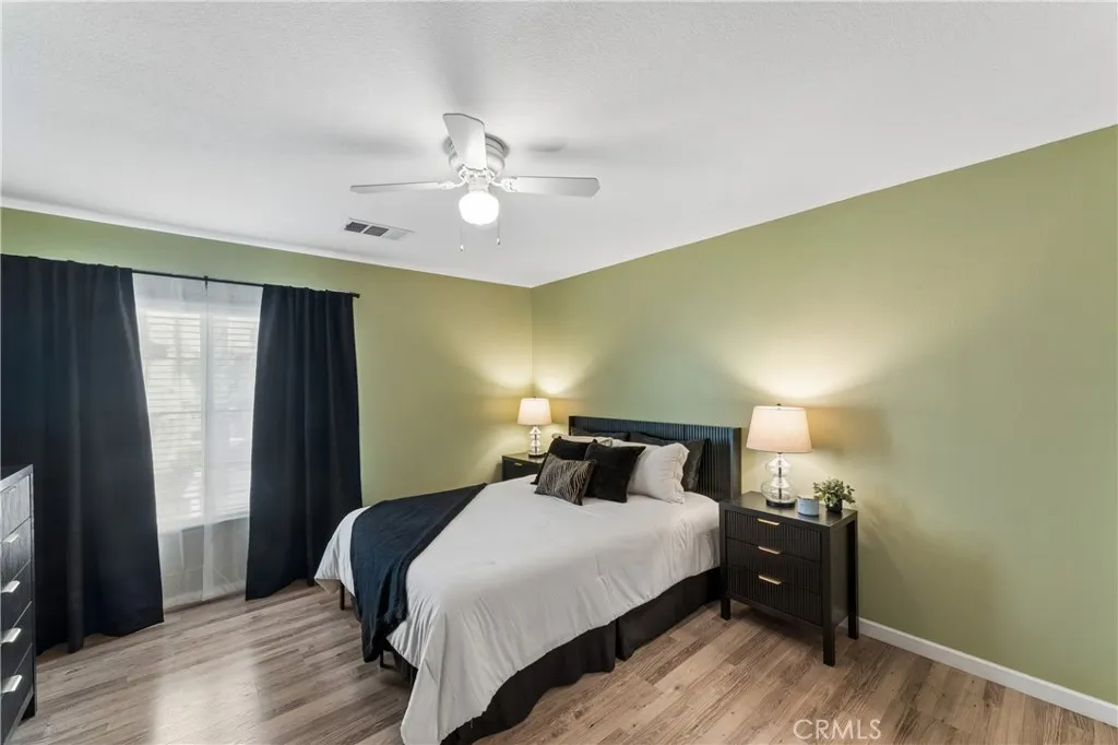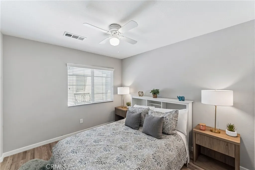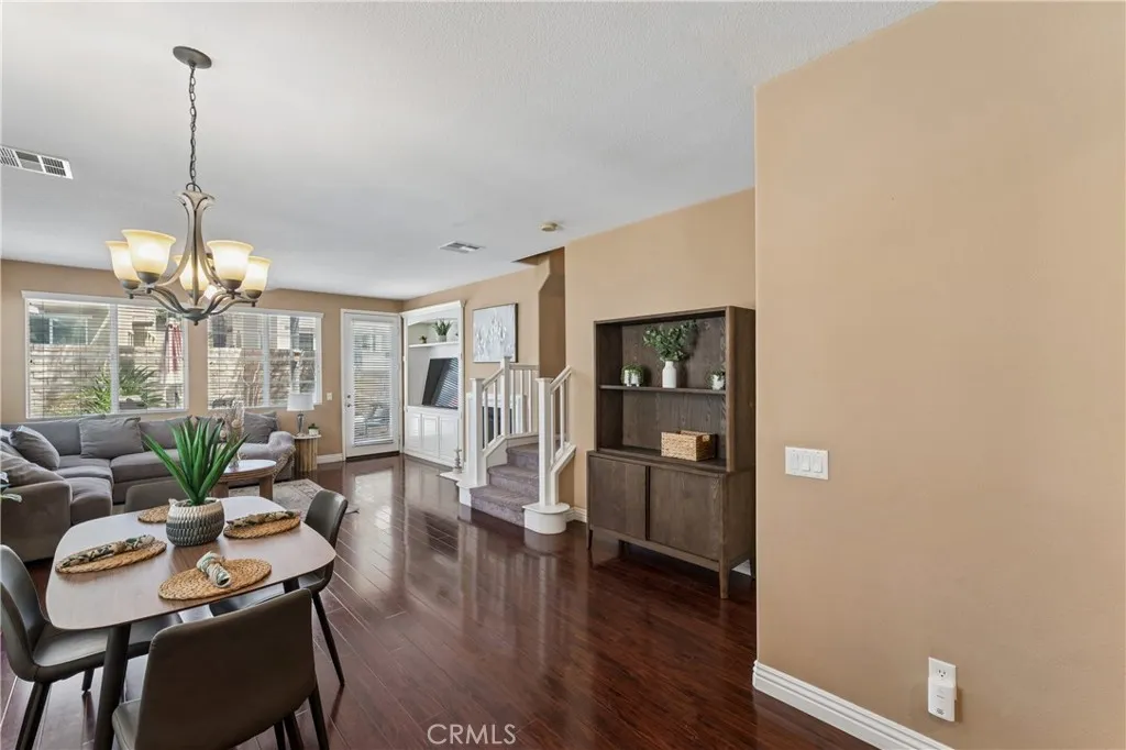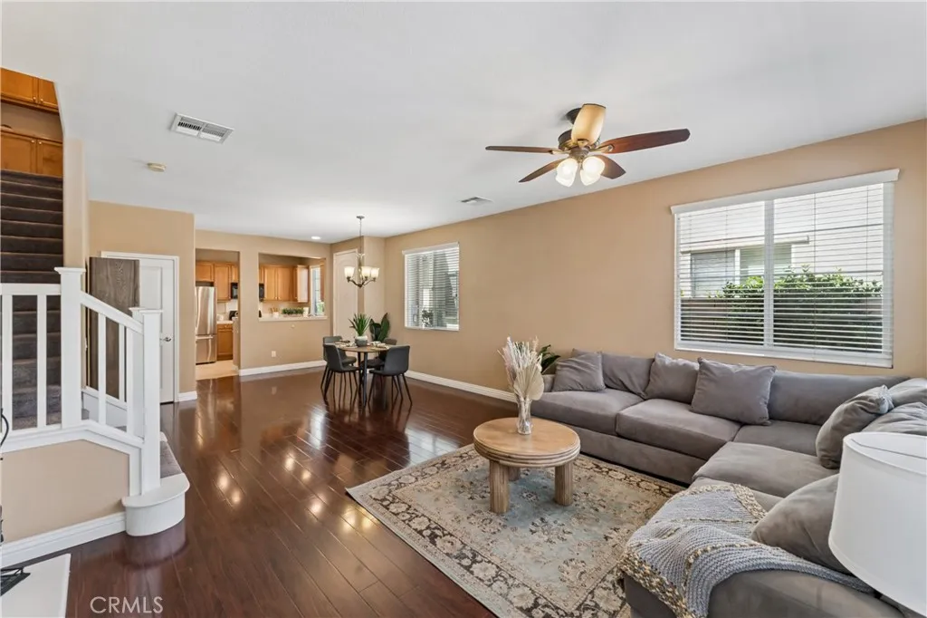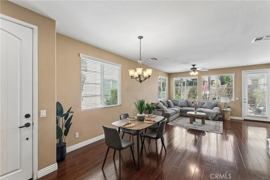 Welcome to this beautifully appointed townhome in the highly sought-after Plum Canyon @ Mariposa community. Offering 3 spacious bedrooms and 3 bathrooms, this residence blends comfort, style, and convenience in one exceptional package. Step inside to a bright and open floor plan where the kitchen seamlessly overlooks the family roomperfect for both everyday living and entertaining. The kitchen features ample counter space and abundant storage, making meal prep a breeze. The dining area flows effortlessly into the family room, where you can unwind by the cozy fireplace in a warm, welcoming setting. Upstairs you'll find 2 additional bedrooms and the primary suite, featuring a generous bedroom closet along with a walk-in closet in the en-suite bathroom. The spa-inspired shower boasts a frameless glass enclosure and a pebble stone floor, creating a relaxing, resort-like experience. Additional highlights include a dedicated laundry room, an attached 2-car garage, and thoughtful upgrades throughout such as wood flooring, shutters, ceiling fans, recessed lighting, and a built-in entertainment center. Outside you'll find your private, spacious backyardideal for outdoor dining, relaxing, or entertaining guests. Residents of this desirable community enjoy access to resort-style amenities including a clubhouse, sparkling pool and spa, BBQ, playground, and security for peace of mind. Conveniently located near Skyline Ranch Plaza, youll have easy access to shopping, dining, and everyday essentials. The home is also close to award-winning schools, public transportation, and major freeway