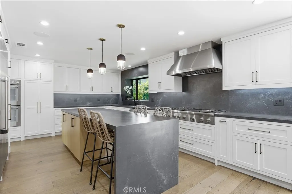Tucked away on a private cul-de-sac in the heart of Sherman Oaks, this stunning, newly reimagined residence offers the perfect blend of modern luxury and effortless California living. Spanning over 3,000 square feet plus an additional 700 sqft of bonus space, on an expansive nearly 9,000 square foot lot, this 6-bedroom, 4-bathroom home is thoughtfully designed with exceptional attention to detail and style. A striking curb appeal welcomes you with clean architectural lines, and manicured landscaping. Inside, soaring ceilings and wide-plank wood floors set the tone for the light-filled, open-concept layout. The formal dining area flows seamlessly into the living spaces, highlighted by designer lighting and a dramatic staircase. The stunning kitchen is a true centerpiece, featuring custom cabinetry, sleek stone countertops, high-end stainless steel appliances, and an oversized island perfect for gathering. The home offers incredible versatility with three bonus roomsideal for a home office, gym, media room, or playroomallowing you to tailor the space to your lifestyle. A glass enclosed wine display adds a sophisticated touch, while multiple living areas provide both comfort and functionality. Upstairs, spacious bedrooms include a luxurious primary suite retreat with a spa-inspired bathroom, soaking tub, dual vanities, and generous walk-in closet. Each additional bedroom is well-appointed with ample natural light and modern finishes. Step outside to your private park and luxurious oasis, designed for both relaxation and fun. Enjoy seamless indoor-outdoor living with large slid