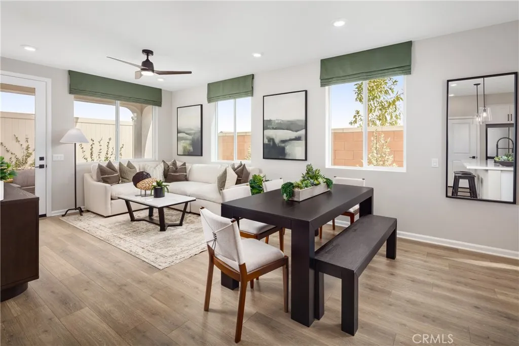 Welcome to Homestead at The Preserve in Chino, one of the newest neighborhoods within this vibrant master-planned community and located just moments from the exciting new Club on Main recreation center opening soon as well as the award-winning Legacy Academy Elementary School. Here, residents enjoy convenient access to resort-style amenities including a beach-entry pool, fitness center, event lawn, firepit gathering spaces, game rooms, BBQ and picnic areas, and multipurpose spaces designed for socializing, working, and relaxing. This beautifully designed Willow Plan 3 offers approximately 2,330 square feet with 4 bedrooms, 3 bathrooms, and a versatile upstairs loft that creates flexible living space for work, study, or simply unwinding at home. The open-concept main level features a spacious Great Room that flows seamlessly into the dining area and kitchen, creating a natural gathering space for everyday living and entertaining. The kitchen includes a large island, pantry, and the ability to personalize your layout with alternate kitchen configurations. A first-floor bedroom with nearby full bath offers a comfortable space for guests or multi-generational living. Upstairs, the generous primary suite features a spacious walk-in closet and a beautifully designed bathroom with the option of a large walk-in shower or a relaxing tub and shower combination. Two additional bedrooms, a full bath, loft, and convenient upstairs laundry room complete the second level. Homestead offers traditional single-family homes with private driveways providing familiarity and everyday convenience