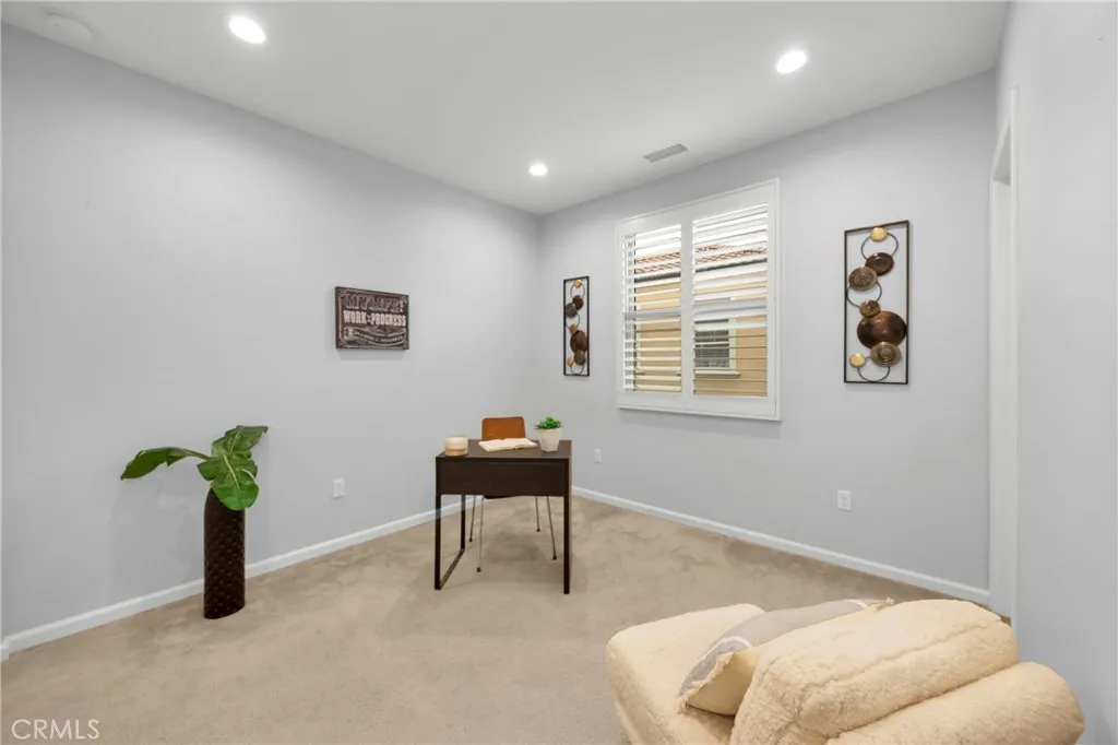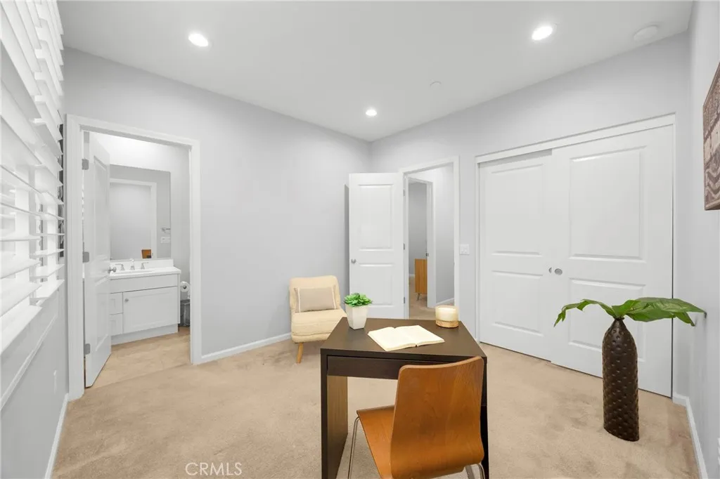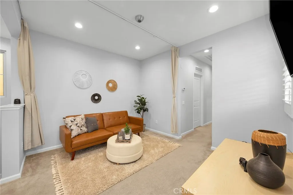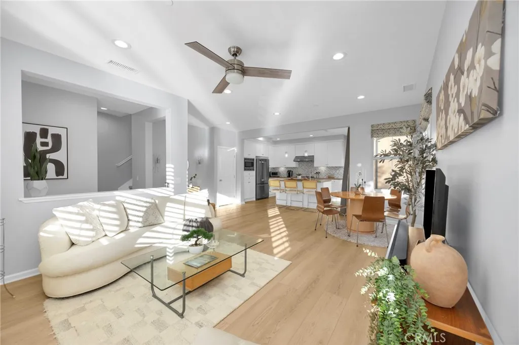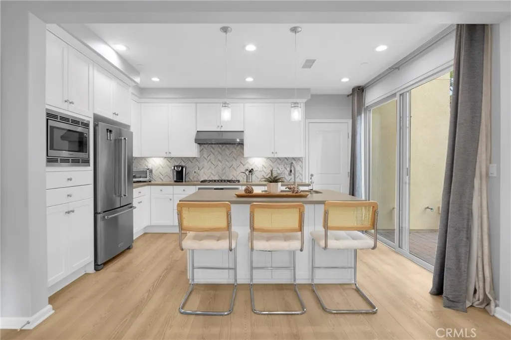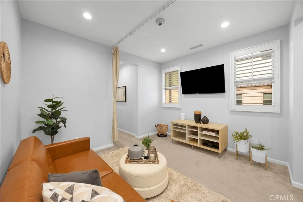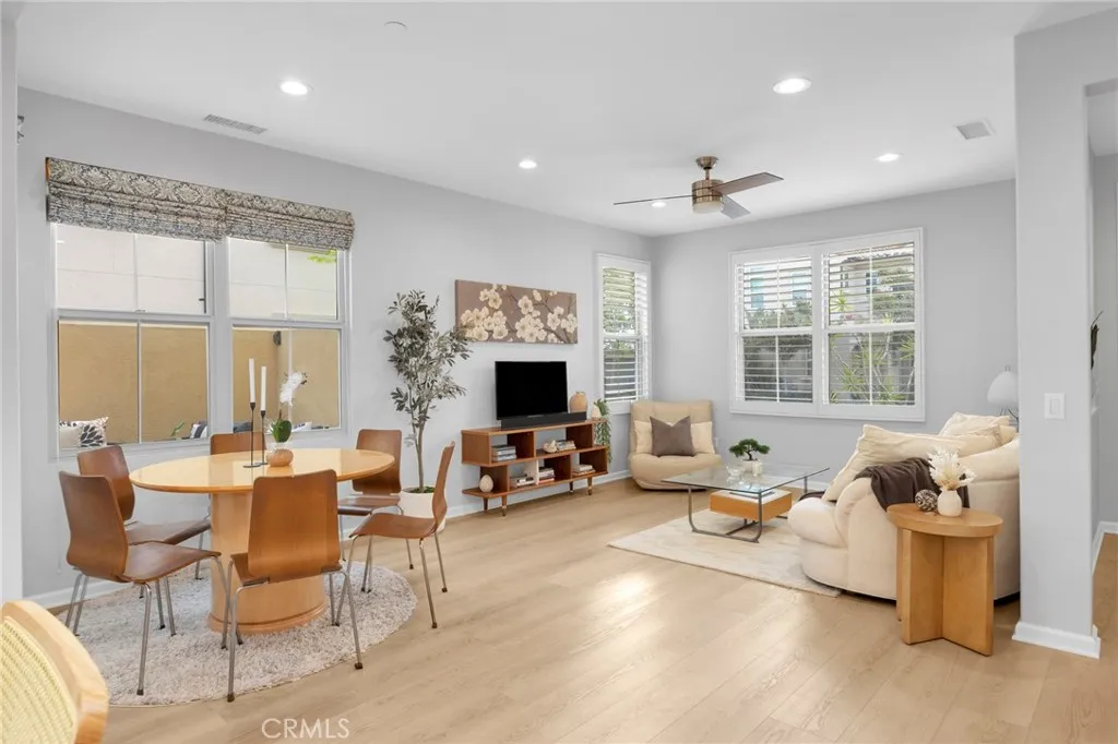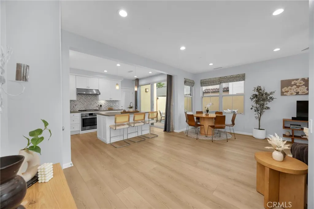 Corner, turnkey home in Portola Springs with an oversized private courtyard and one of the largest and most desirable floor plans in the community. Built in 2016, this 3-bedroom, 3.5-bath home includes a versatile upstairs loft and offers 1,778 sq ft of bright, open living space filled with natural light. The main level features vinyl flooring throughout, a spacious kitchen with a center island, quartz countertops, white shaker cabinetry, upgraded tile backsplash, stainless steel appliances, and seamless flow into the dining and living areasideal for everyday living and entertaining. Additional highlights include designer paint, custom window coverings, pendant lighting, recessed lighting throughout, and added insulation for enhanced comfort. Sliding doors from the kitchen create an easy indoor-outdoor connection to the oversized private courtyard, and a tucked-away half bath adds convenience on the first floor. Upstairs includes generously sized bedrooms, each with its own bathroom, along with the loft and an upstairs laundry room. The primary suite features a dual sink vanity, soaking tub, separate shower, and a walk-in closet. Positioned with only one attached wall, the home offers added privacy and abundant natural light throughout. Includes a 2-car attached garage with direct access. Located near top-rated Irvine schools, parks, pools, and Woodbury Town Center.