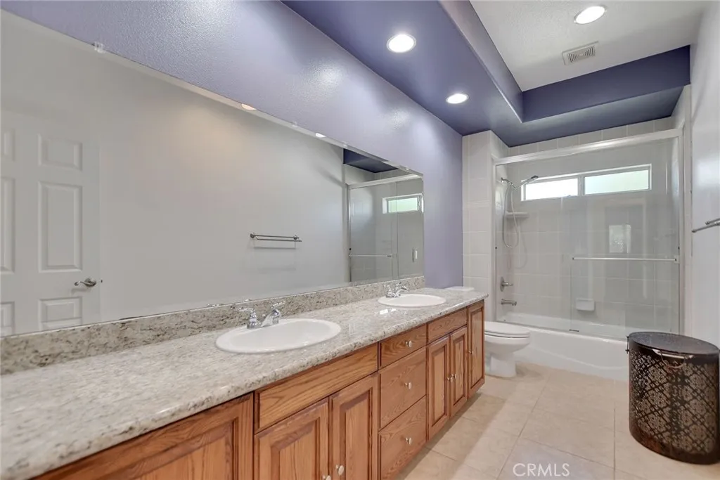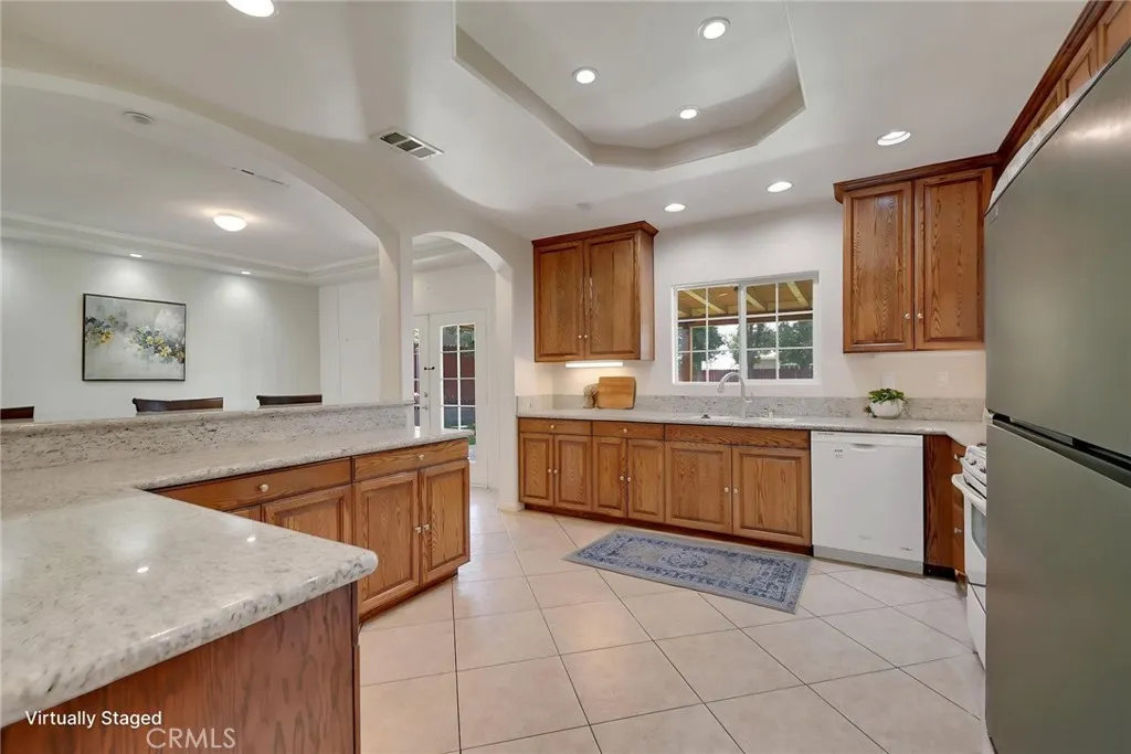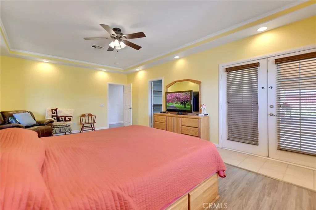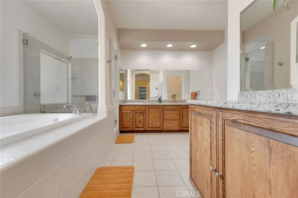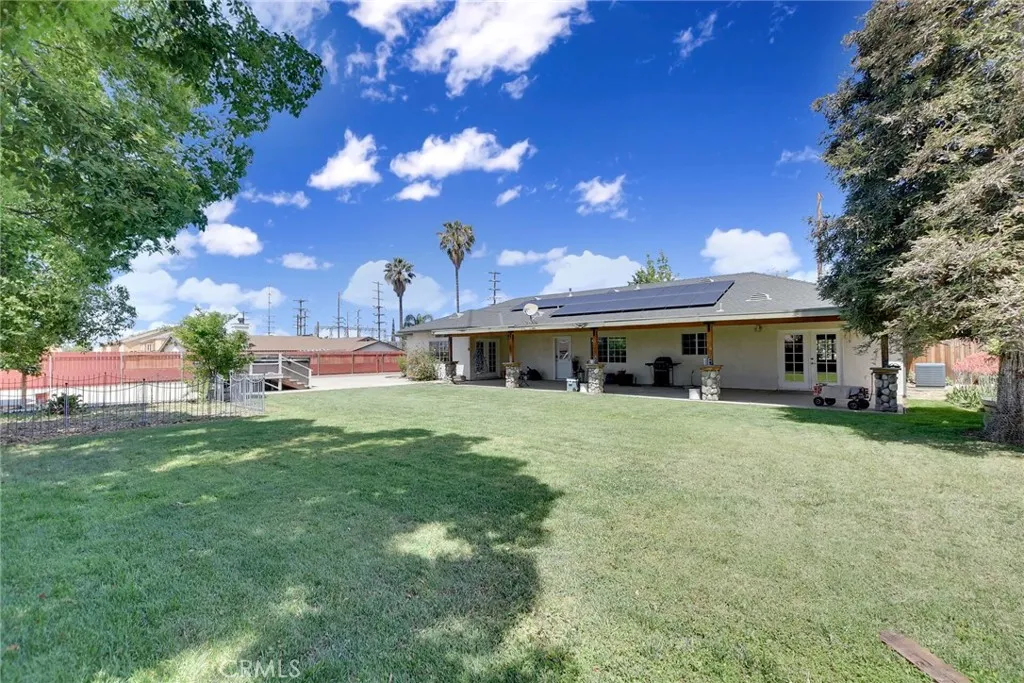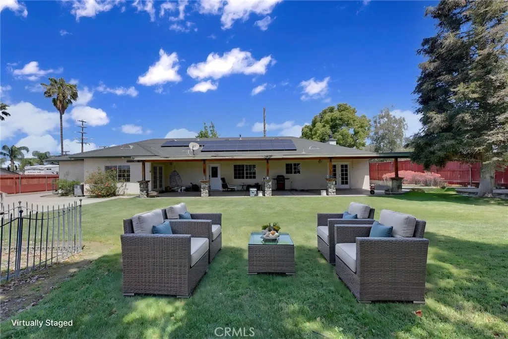 This 21st century, turn-key single-story ranch home is ready for your personal touches. It features four bedrooms and double sinks in the guest bath and a tiled shower, the primary bath has a separate Roman tub and tiled shower; double sinks, the Primary bedroom has direct access to the backyard and a HUGE walk-in closet. Both baths have granite countertops. The living room has a cozy fireplace for chilly weather. The kitchen is large with spacious granite countertops for entertaining family and friends. The dining room is adjacent to the kitchen with access to the backyard through double-door entry There is a breakfast bar. The appliances are all white. The large laundry room is inside with space for storing essentials and folding laundry, easy access to the backyard. The yards are large with mature landscaping. The backyard has a swim-spa for your enjoyment. There is owner-owned solar and battery backup for money-saving on your electric bill. There is parking for your RV/toys with a dump station at the ready. The flooring is laminate and tile throughout the home. Can lights highlight the rooms and there are ceiling fans too. Come on over and take a look at this gem in Yucaipa. Make it your forever home.