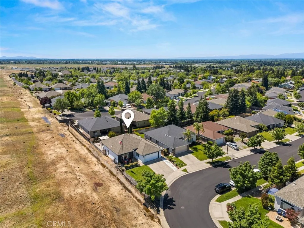 Situated in the desirable Lake Vista Subdivision, 153 Delaney offers a rare setting with open land adjacent to the property and beautiful foothill views. The curb appeal stands out immediately with well-maintained landscaping, an extended concrete driveway, ample street parking, and recently painted exterior within the last 5 years. Inside, the home features high ceilings, abundant natural light, LVP flooring and carpet in the bedrooms also updated within the last 5 years, plus a whole-house water filtration system. The inviting living space is centered around a cozy fireplace, creating a comfortable place to relax and enjoy. The centrally located kitchen offers wood cabinetry, a gas range, tile countertops, and a convenient breakfast bar, with a spacious dining area just off the kitchen overlooking the hillside. The primary suite features tray ceilings, direct backyard access, and scenic views. The en suite bath includes dual sinks, a soaking tub, a separate shower, and a walk-in closet. Two additional bedrooms include ceiling fans, and there is indoor laundry. Additional upgrades include an updated water heater, French drains, newer blinds, and a financed to own solar system with a fixed payment under $150/month, ideal for offsetting Chicos warm summer months. Step outside to a low-maintenance backyard complete with a covered patio, custom concrete, a pergola, 220V outlet for a potential spa and space for gardening. With peaceful surroundings and views from both the front and back, this home offers a great balance of comfort, functionality, and location. A wonderful oppor
