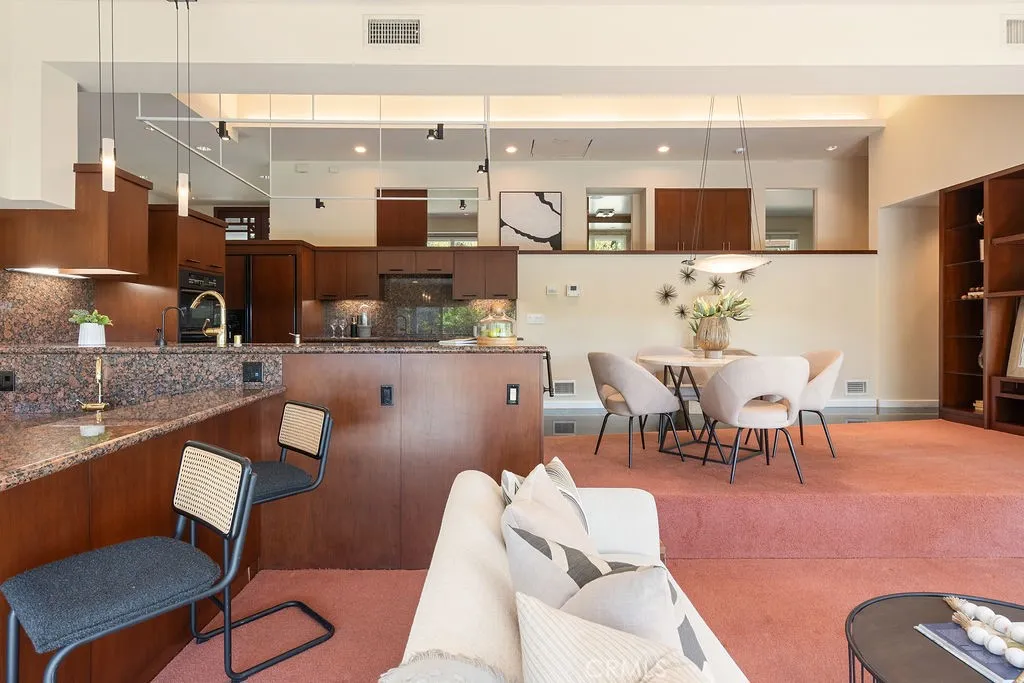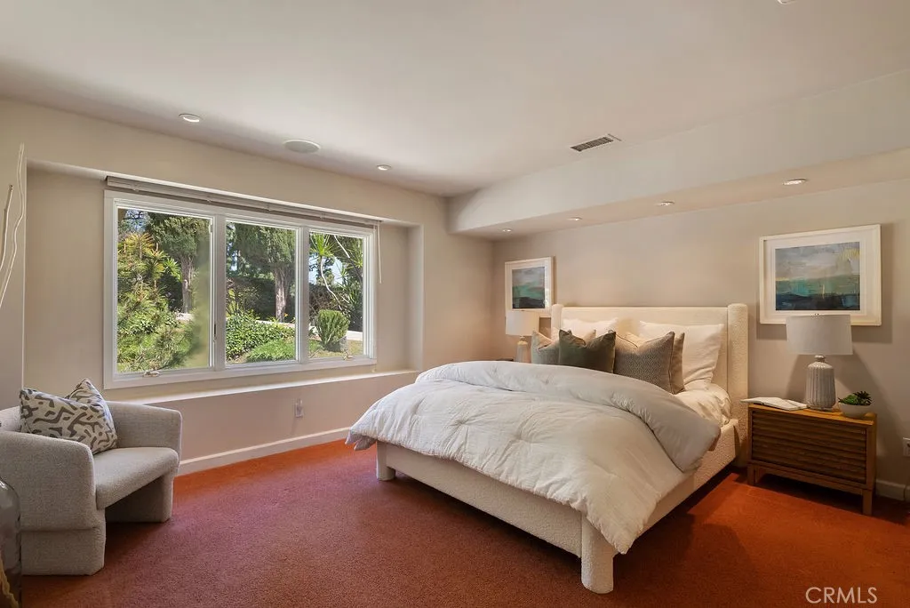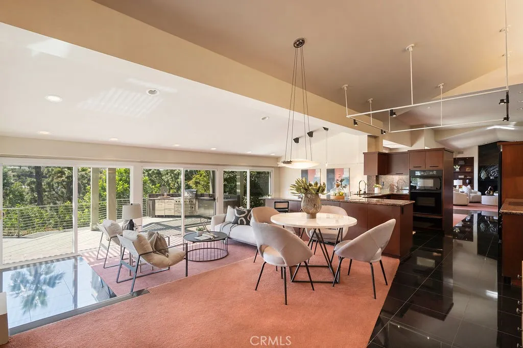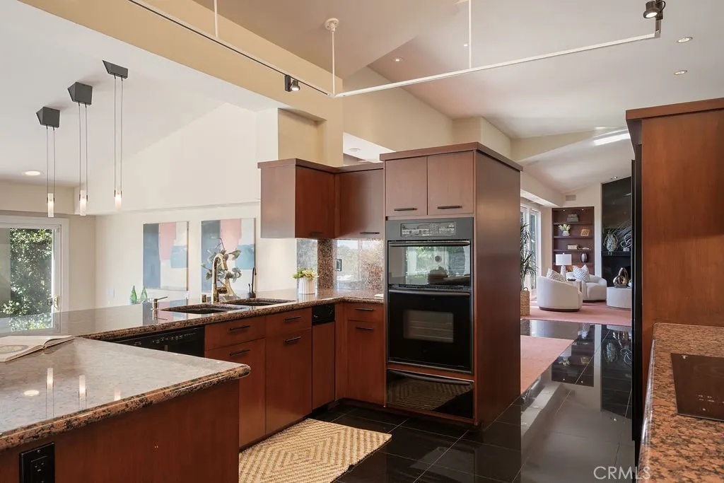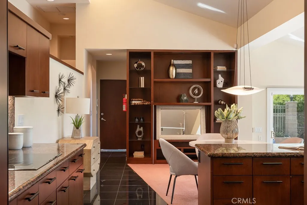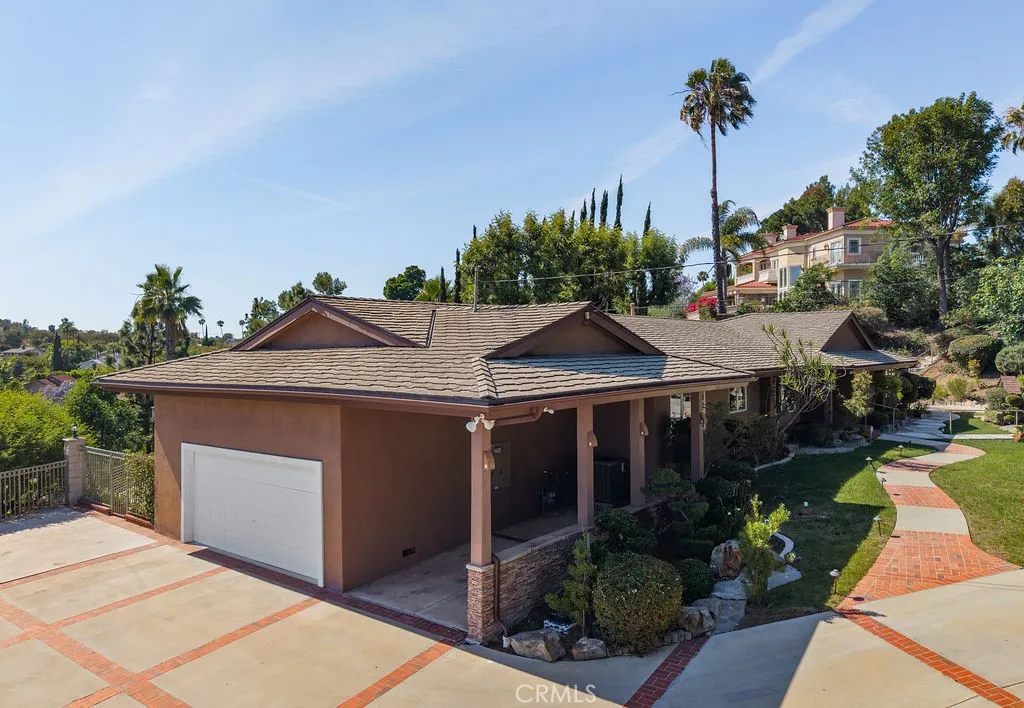 Sunset Hills West is an exclusive community of custom luxury homes, larger lots and premium VIEWS! 3103 Flintridge is perched near the peak of the community on a 30,160 square foot parcel, offering unobstructed nature and City Lights views in the distance. Set upon a secluded cul-de-sac lot location, this home delivers a 2,636 square foot single story residence with a unique blend of traditional and mid-century architecture. The thoughtfully designed interior makes an immediate impression, highlighted by soaring cathedral ceilings and dramatic floor-to-ceiling glass in the living room. The open-concept kitchen features wood slab cabinetry and flows seamlessly into a secondary family room with a dining area and stylish wet barideal for both everyday living and entertaining. Four sliding glass doors open to a wrap-around deck with an outdoor kitchen, perfectly positioned to capture sweeping views. Rich custom wood built-ins and a dedicated office space add warmth and functionality throughout. The spacious primary suite offers a luxurious bathroom and generous closet space, while two well-sized guest bedrooms are served by two full bathroomsone with a soaking tub and the other with a glass-enclosed showereach finished in tasteful stone and tile. Outdoor living is equally compelling, with two pathways leading down the gentle slope to a private nature retreat, offering endless possibilities for customization. Additional highlights include a finished oversized two-car garage, upgraded electrical panel, tile roof, expansive driveway, dual-pane windows, air conditioning, and forced