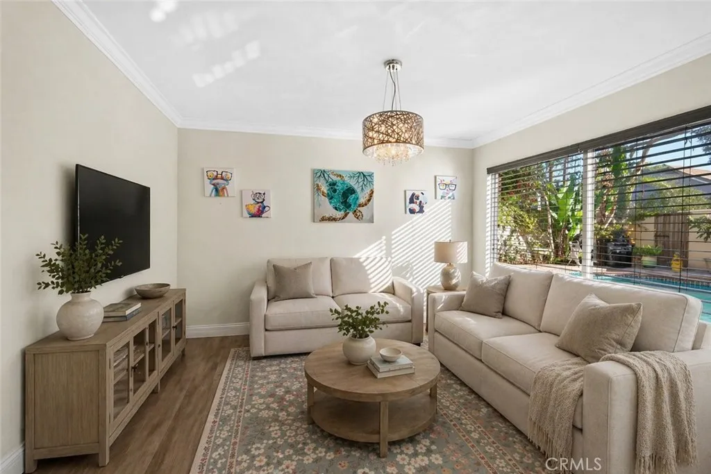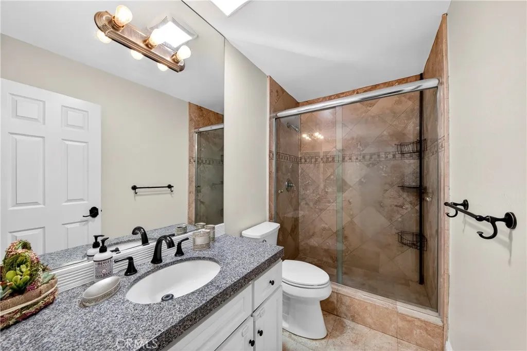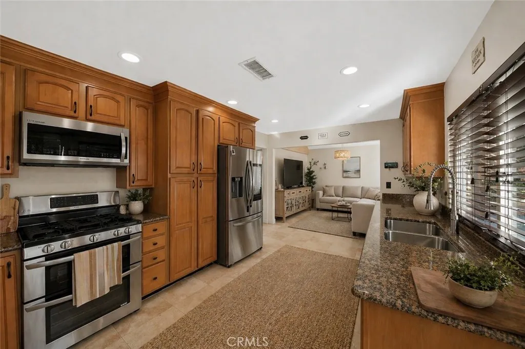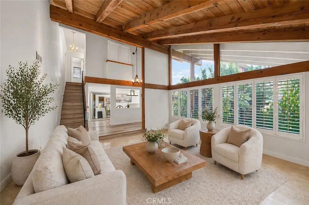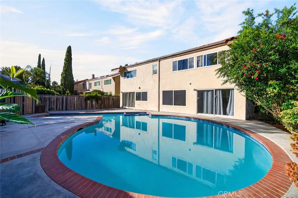 Luxury living in the prestigious city of Irvine, nestled within the highly sought after Racquet Club community. This beautifully remodeled pool home offers stunning curb appeal and is perfectly situated on a quiet, tree lined street. Featuring 4 bedrooms and 3 bathrooms, this spacious residence offers approximately 2,250 square feet of living space on a 5,533 square foot lot. Step through the inviting front patio into a bright and expansive living room highlighted by a soaring cathedral wood beam ceiling and a cozy brick fireplace. The space flows seamlessly into a formal dining room with elegant custom lighting. Large windows throughout fill the home with an abundance of natural light. The remodeled gourmet kitchen is a chefs dream, featuring granite countertops, ample counter space, abundant cabinetry with stylish hardware, stainless steel appliances, and beautiful limestone flooring. A sliding glass door provides direct access to the backyard, creating effortless indoor outdoor living. Adjacent to the kitchen, the separate family room offers relaxing views of the pool, perfect for everyday living and entertaining. The main level also includes a bedroom and full bathroom, ideal for guests or extended family, along with direct access to the garage with laundry hookups. Upstairs, the expansive primary suite features generous closet space and a private en-suite bathroom with dual sinks, a soaking jacuzzi tub, and a separate shower. Two additional bedrooms are well sized and share a hallway bathroom. The backyard is designed for entertaining, complete with a sparkling pool an