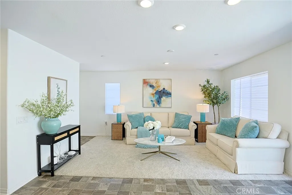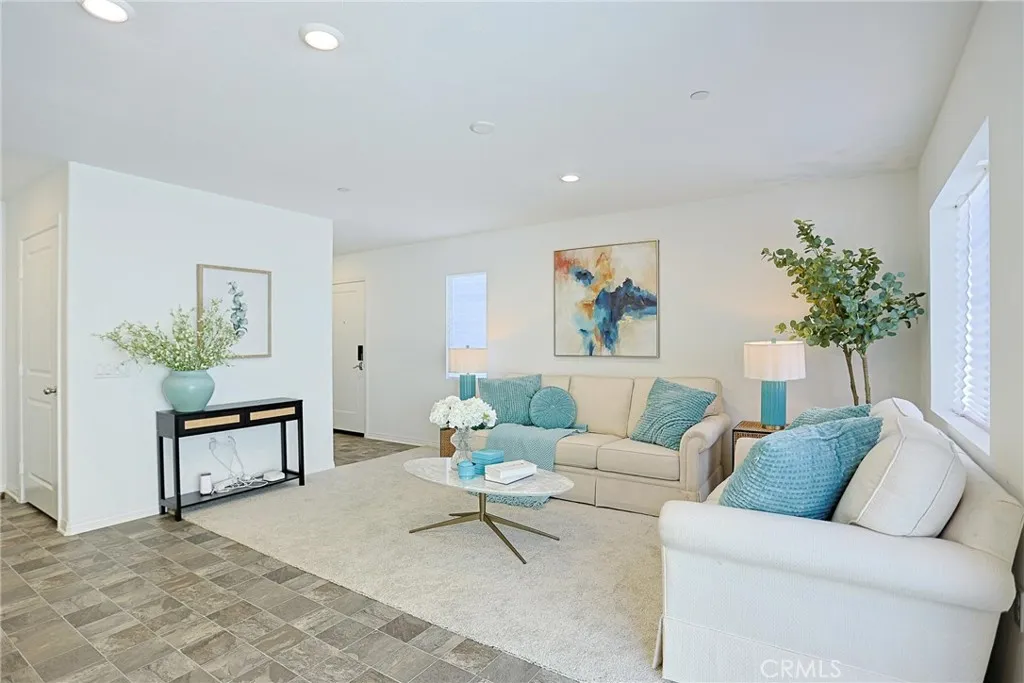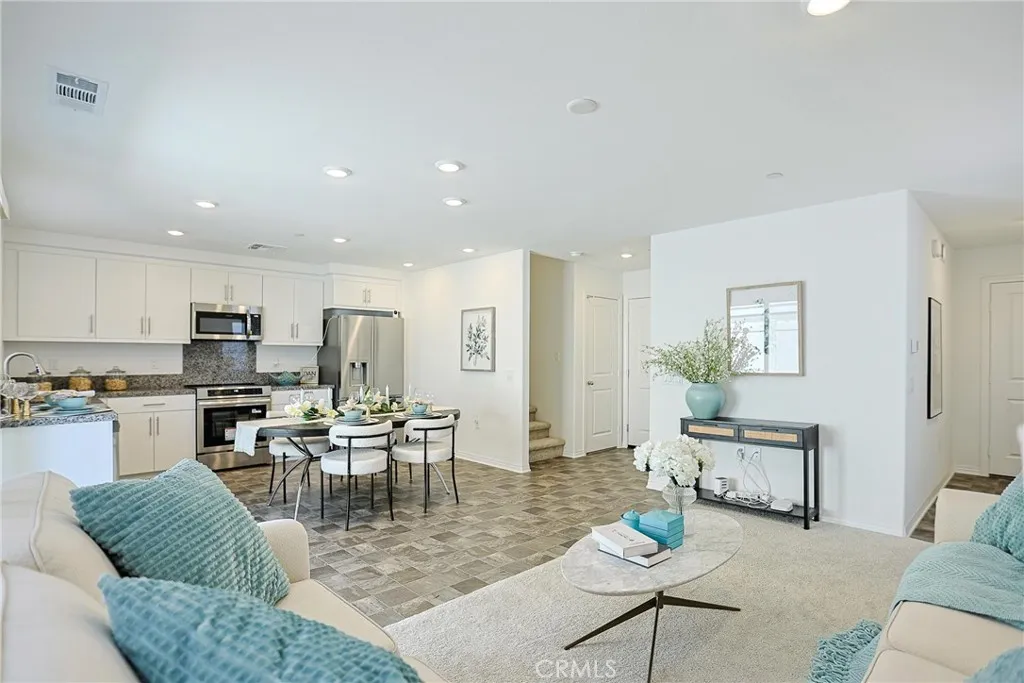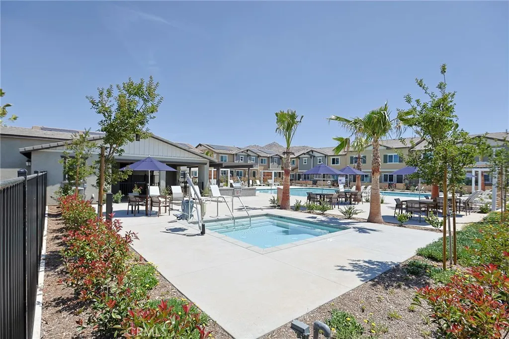 Welcome to 7486 Olive Grove Street. This stunning Residence Four of The Gardens at Highgrove Town Center was built by Lennar in 2025. It is the Largest End-Unit Townhome that is located near a Serene Cul-De-Sac. This Residence offers Natural Lighting, Creating a Bright and Inviting Atmosphere throughout. Residence Four offers 3 Bedrooms, 2.5 Bathrooms, 1,549 Square Feet of Interior Space, Private Patio for Outdoor Relaxation. First Floor shares an Open-Concept Design between the Family Room, Dining area and Kitchen featuring Granite Countertops, White Cabinetry, Stainless Steel Appliances, making Entertaining easy. This Residence combines Modern Style with Everyday Comfort, which include Reinforced Bathroom Walls for Future Grab Bar installation and Wide Enough Doorways for Wheelchair Passage. Two-Car Garage with Direct Access. Upstairs, you'll find a Versatile Loft that can double as an additional Shared Living Space and Home Office. There are Two Secondary Bedrooms including one with a Walk-In Closet, along with a Luxe Owner's Suite with an En-Suite Bathroom and a Large Walk-In Closet. Conveniently located nearby is a Laundry Room that makes home chores simpler. HOA includes Wifi, Resort-Style Swimming Pool and Clubhouse, Tot Lot Playground, BBQ & gathering areas. Within a 10 minute drive are K-12 Schools, UC Riverside, Downtown Riverside, Mission Inn & Dining.