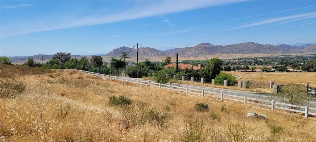 5.21ac with panoramic views of the Lakeview Valley and Mystic Lake!! Zoned RA-1, possibility to do parcel map, Buyer to confirm with County. Zoned for horses and animals. Slightly sloping. Paved roads, electric and phone available. Located in an area of multi million dollar ranch homes. Fenced along the front of the property. The village of Nuevo is close by with shopping services. Newer schools in the area. 10 minutes to 215 freeway.
