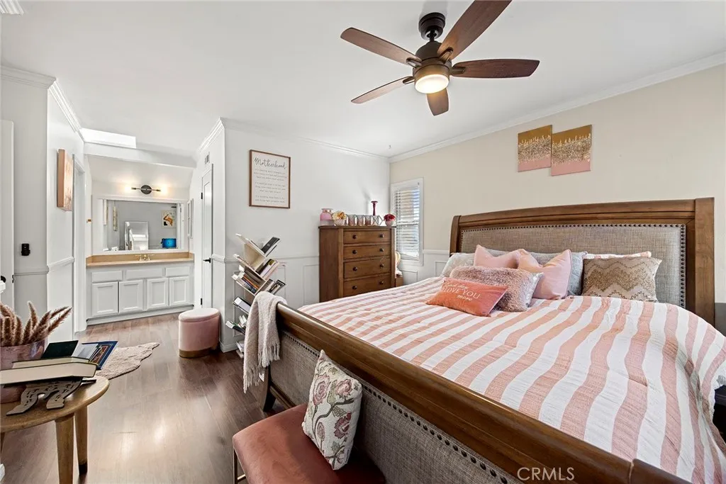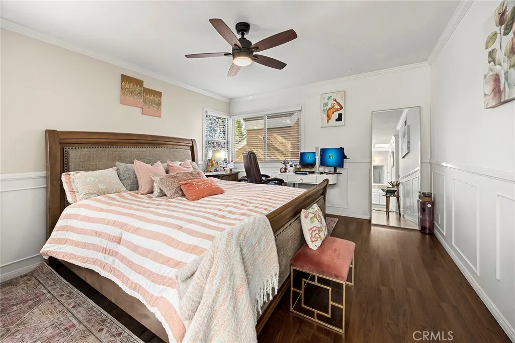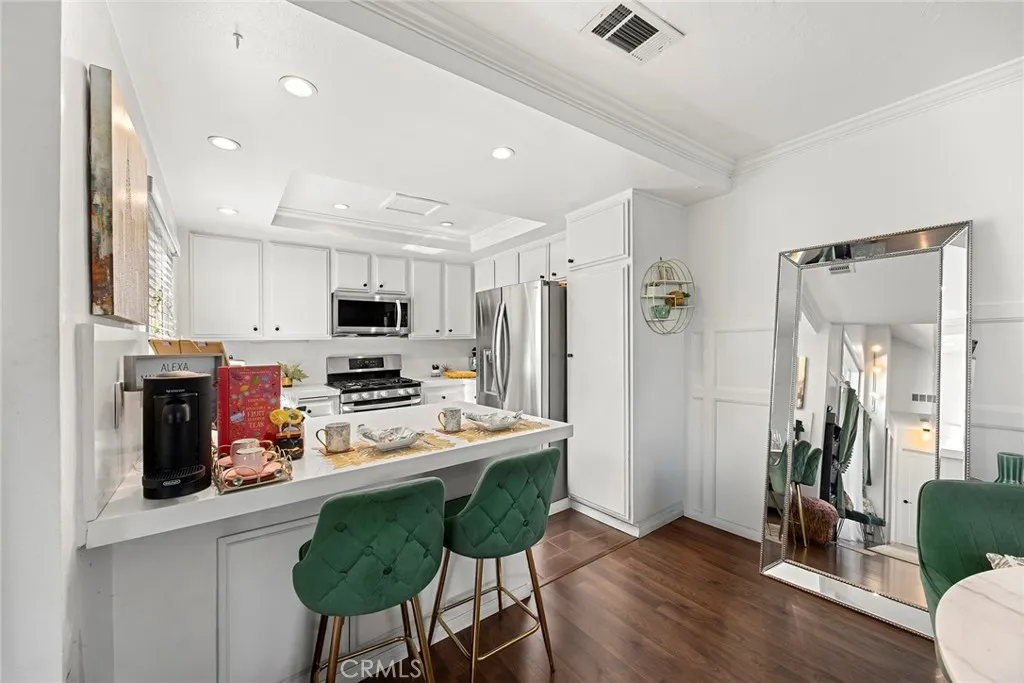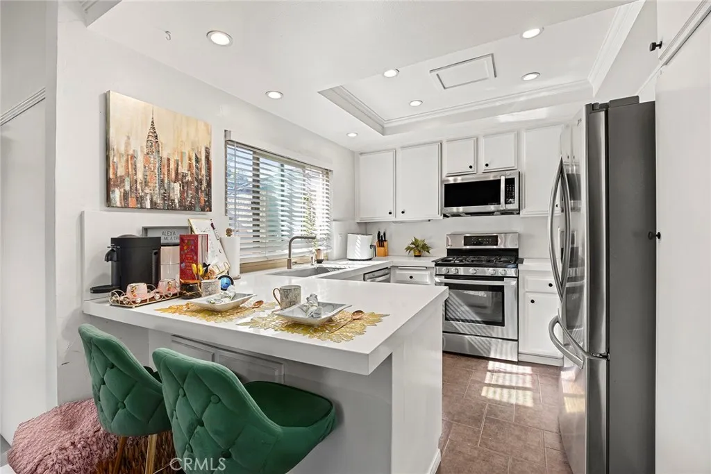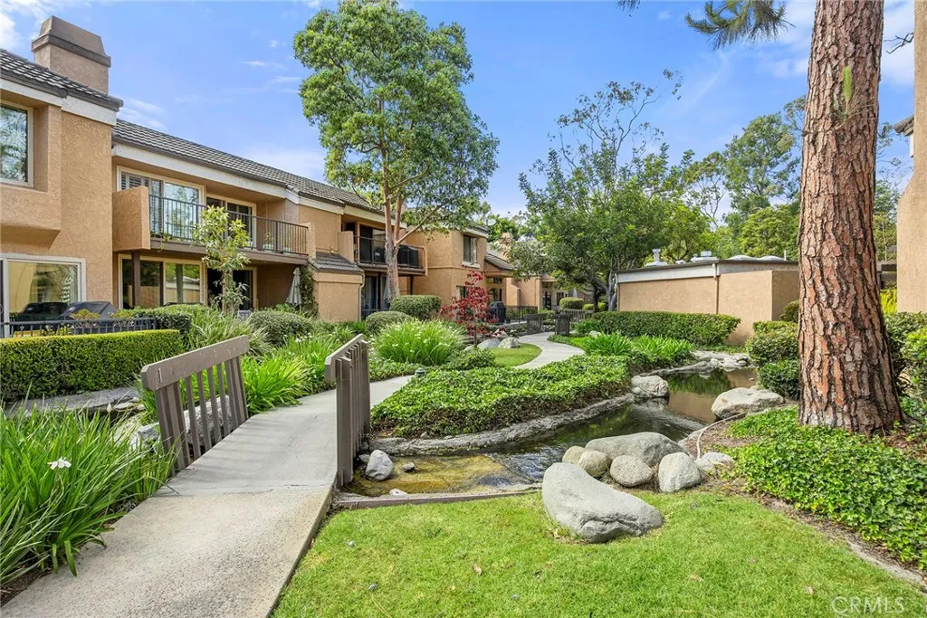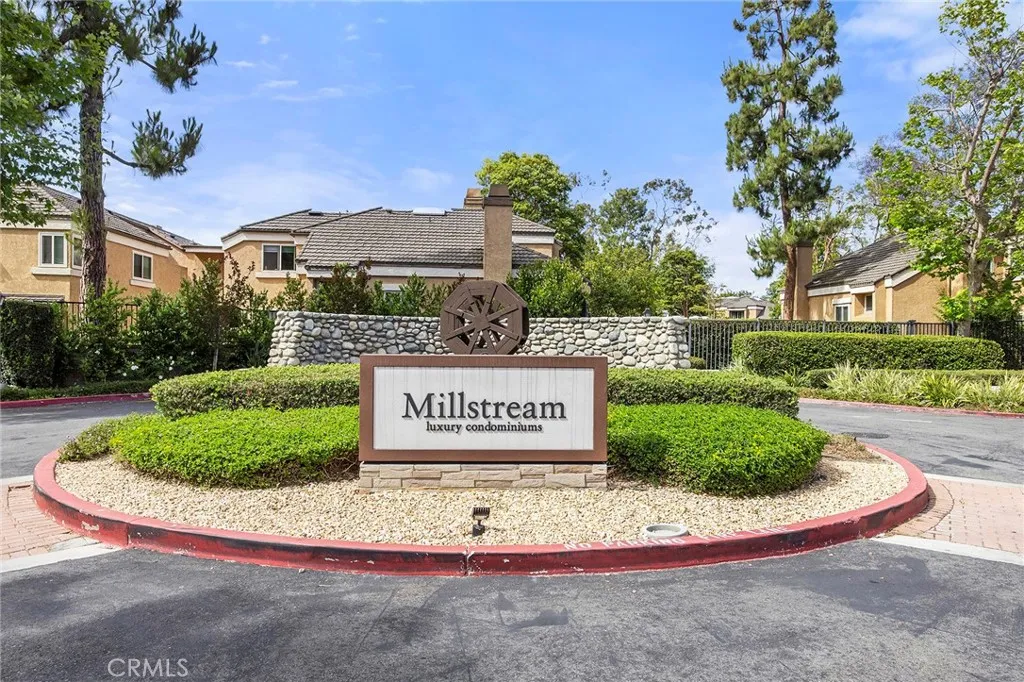 Located in the gated Millstream community, this rare end-unit offers exceptional privacy with only one shared wall and no one above or below. The upgraded kitchen is the centerpiece, featuring quartz countertops, full backsplash, white cabinetry, and LG stainless steel appliances. The light-filled living and dining areas overlook your private patio and are enhanced by soaring ceilings, elegant wainscoting, crown molding, ceiling fans throughout, gorgeous wood laminate flooring, and a NEST thermostat. The 2-bedroom, 1.25-bath layout includes a bright primary suite, flexible second bedroom or office, skylit bath, and in-unit laundry. Storage is abundant with a hallway closet, walk-in closet, built-ins, attic with pull-down ladder, and garage shelving. Enjoy resort-style living with streams, bridges, lush landscaping, pool, spa, and tennis courts, plus ample parking and a prime location within walking distance to shops and restaurants, close to beaches and freeway access. HOA covers water and trashoffering comfort, convenience, and a true sense of community living. A rare opportunity in Millstream with no other units currently on the markettake a look at the 3D tour and schedule your private showing before its gone.