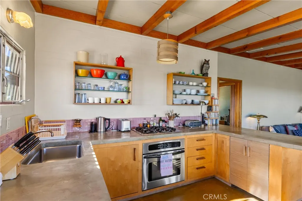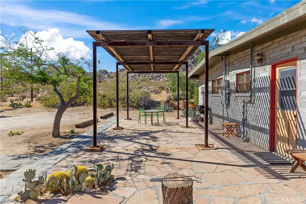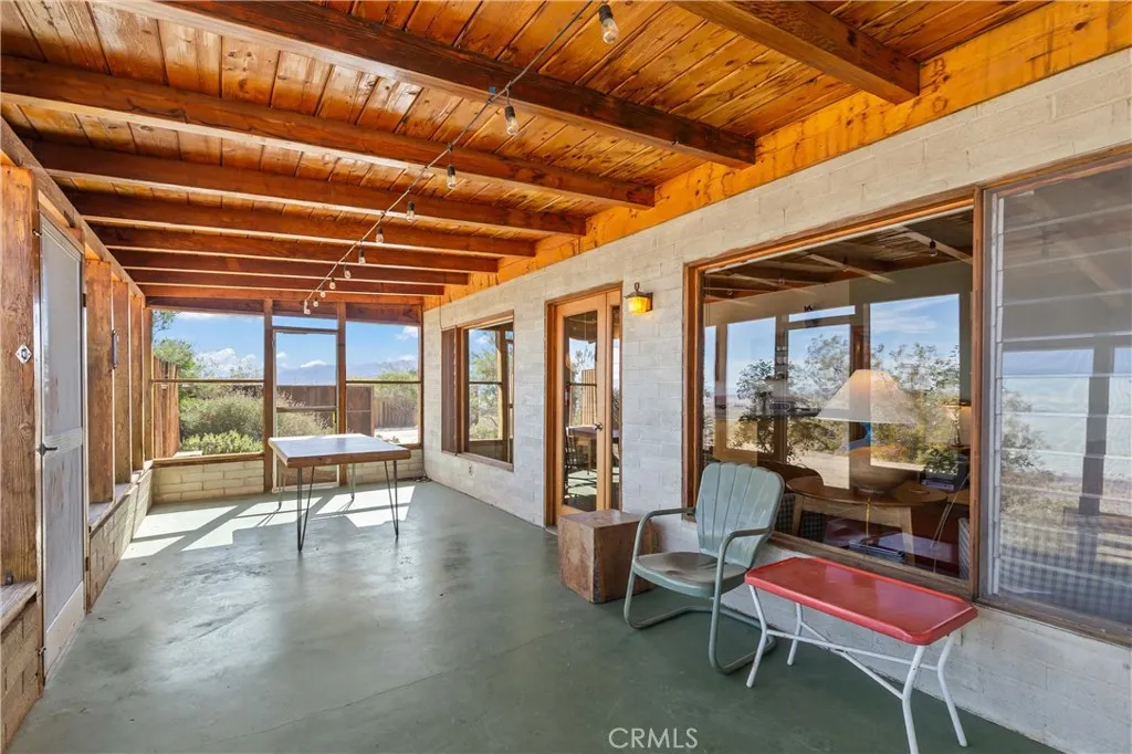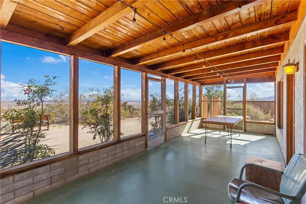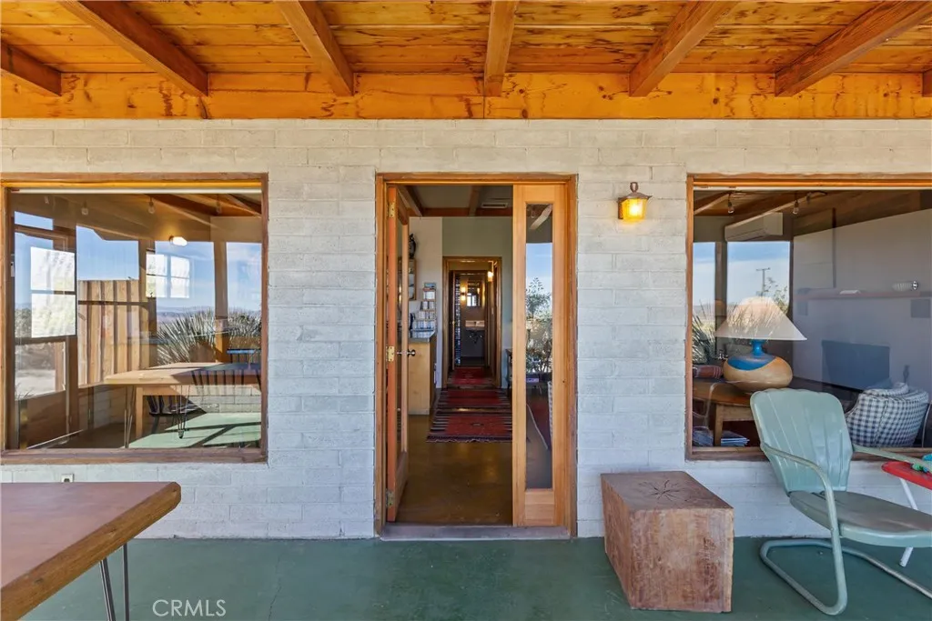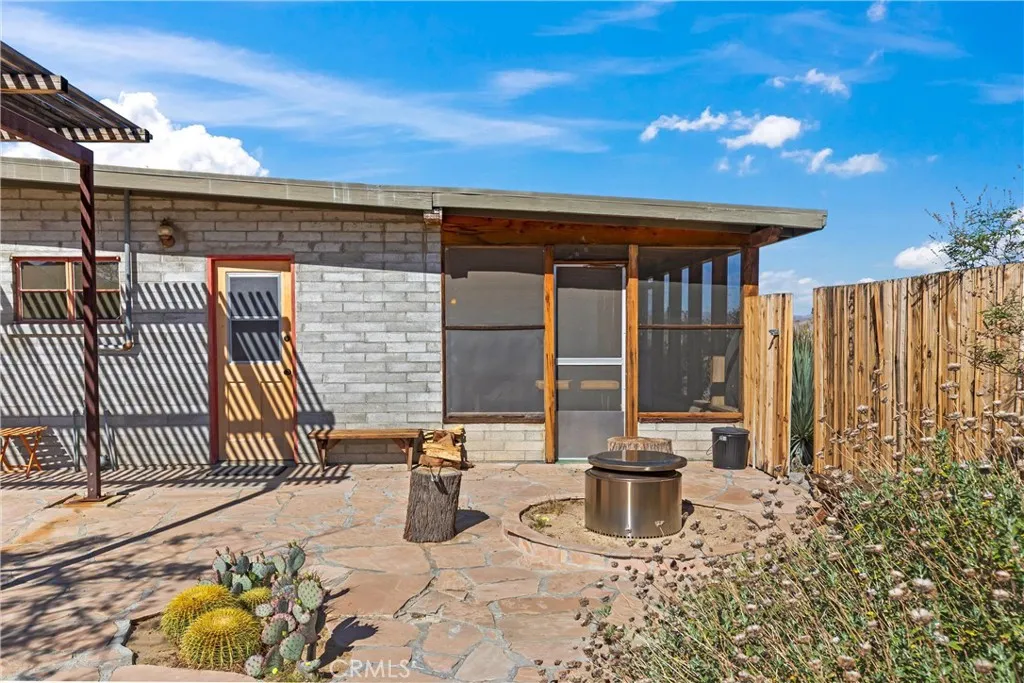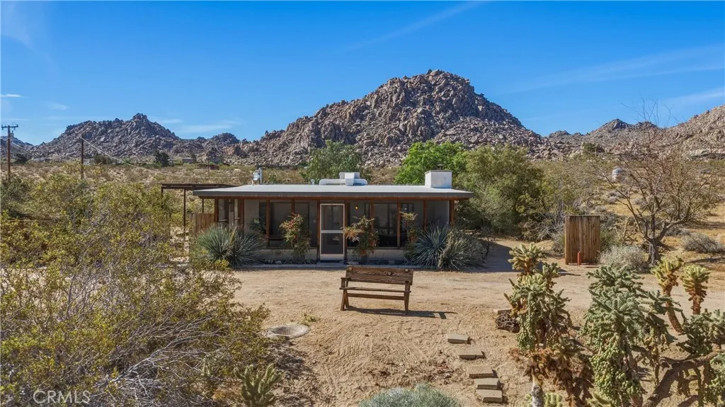 A rare offering in the highly sought-after south Joshua Tree area, this beautifully updated bungalow captures the essence of desert living with style, comfort, and unforgettable views. Set on 5 serene acres in an established and exceptionally quiet neighborhood, the property sits near the park boundary, showcasing the iconic boulder formations of Joshua Tree National Park and sweeping, unobstructed vistas stretching endlessly to the north. This thoughtfully upgraded two-bedroom, one-bath home blends classic charm with modern touches. Inside, a cozy fireplace anchors the living space, creating a warm and inviting atmosphere, while the stylish kitchen offers both functionality and design for everyday living or entertaining. A screened porch extends the living area outdoors, providing a perfect vantage point to take in the breathtaking landscape year-round. The grounds are equally compelling, with curated gardens, multiple seating areas, and a mix of covered and open-air spaces designed to embrace the deserts natural beauty. Ideally located just outside the downtown Joshua Tree area, the home offers easy access while maintaining a sense of privacy and retreat. Whether as a full-time residence, weekend escape, or investment opportunity, this property delivers a quintessential high-desert experience in one of the regions most desirable settings.